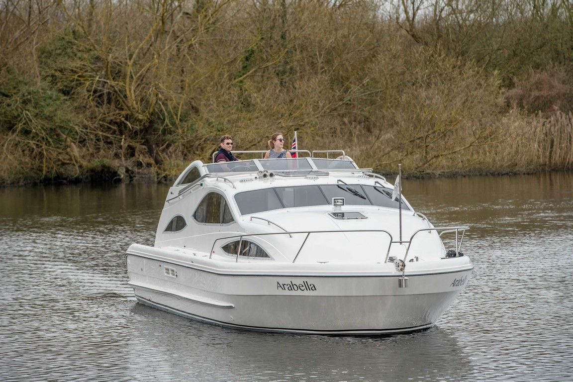 ‘Arabella’, a 35ft privately built dual steer cruiser with accommodation for four offers the highest specification in her class, rivalling that of ‘Cover Girl’ & ‘Moneypenny’. With an air draft of 8ft 3” and width of 12ft she is able to cruise the River Ant, beneath Ludham Bridge and navigate the River Chet, areas restricted for our larger cruisers.
