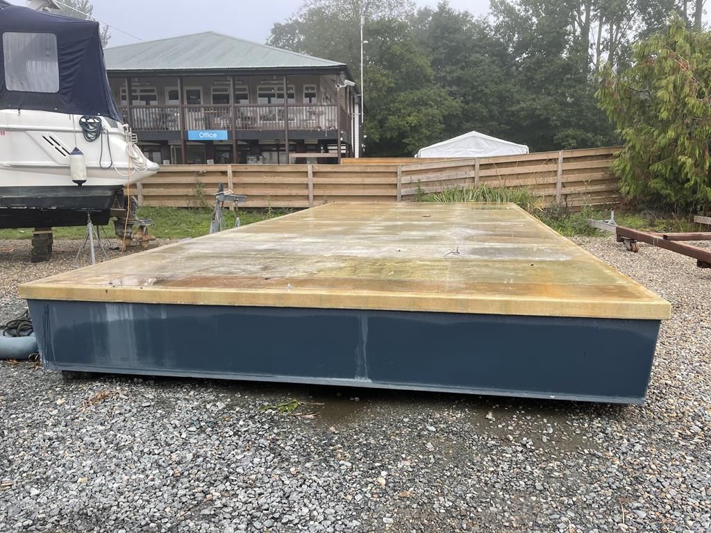 32ft x 14ft GRP float – originally constructed as a houseboat base in 2020 but unused. Would make a great pontoon for a sailing or watersports club. Additional photos added to show a new build in progress on similar float.