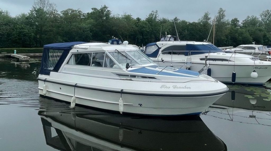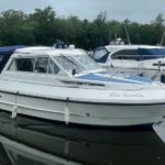 ALPHA 26 – 1996 – Powered by a Lombardini 30hp diesel engine fitted in 2016 . 4 berth accommodation with 1 toilet and shower compartment. Galley with 2 burner gas hob & oven, fridge & sink. Spec including bow thruster, warm air heating, shore power, Garmin gps, new canopy 2020. BSC 06/25. Under current ownership for 13 years . A very practical inland cruiser, ideal for exploring the Inland waterways.