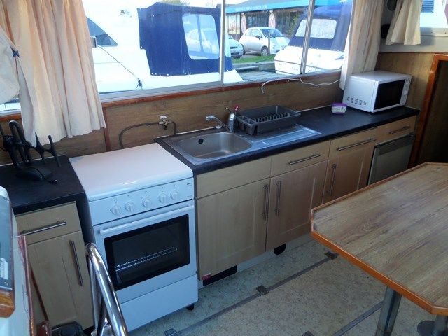 ALPHACRAFT 29 – 1991, 1 x Nanni 43Hp diesel engine, 4 berths in 2 cabins, 2 x toilets & shower, Boat Safety Certificate until: 2016. Shore power, battery charger, hot air heating system, folding windscreens, holding tank, fridge, oven & grill and much more! Popular river cruiser, perfect for a couple/family!