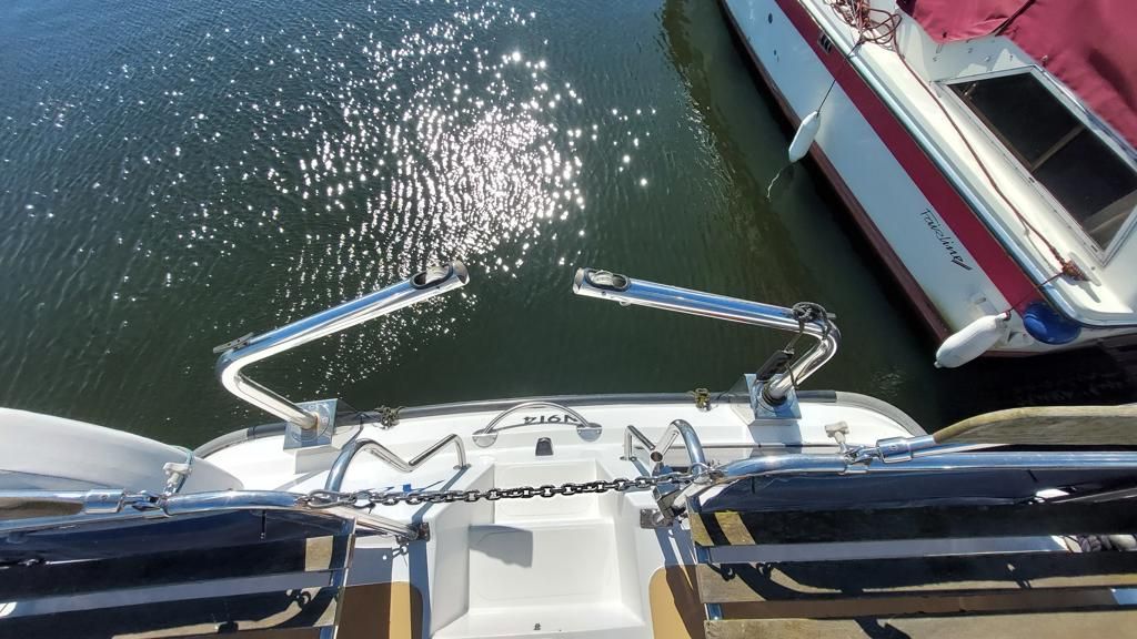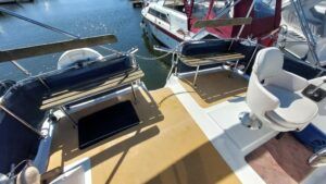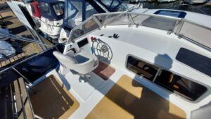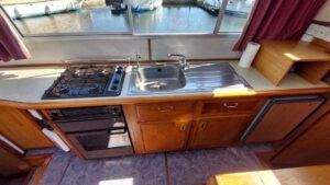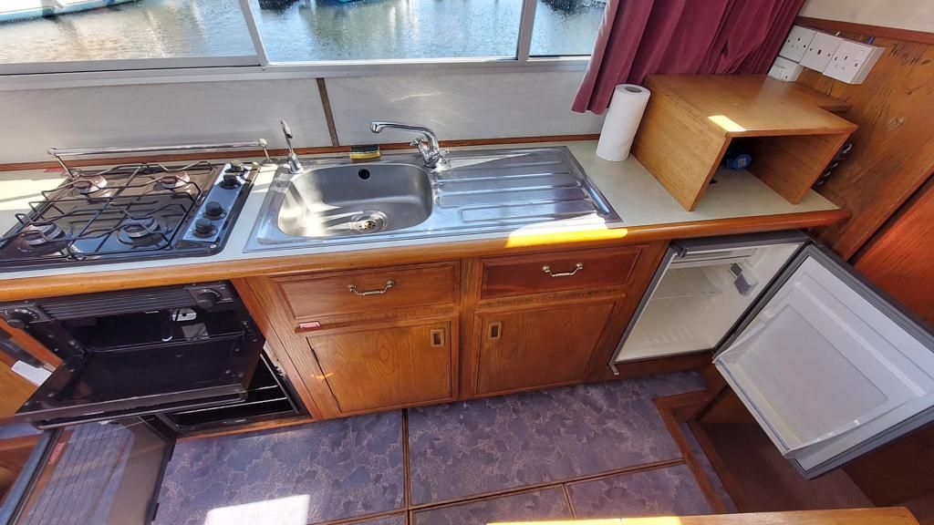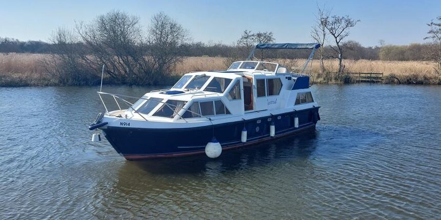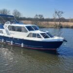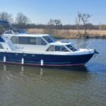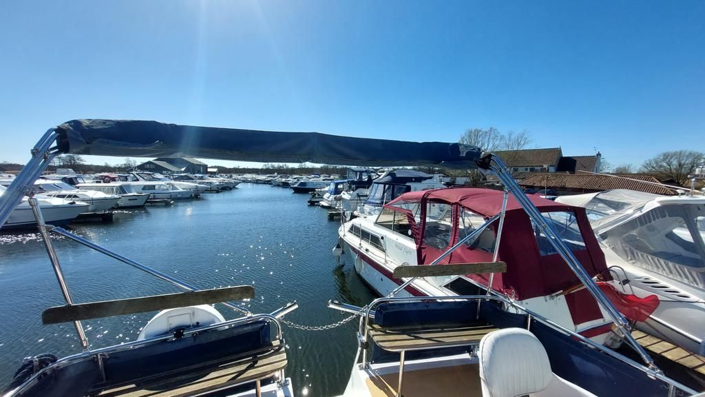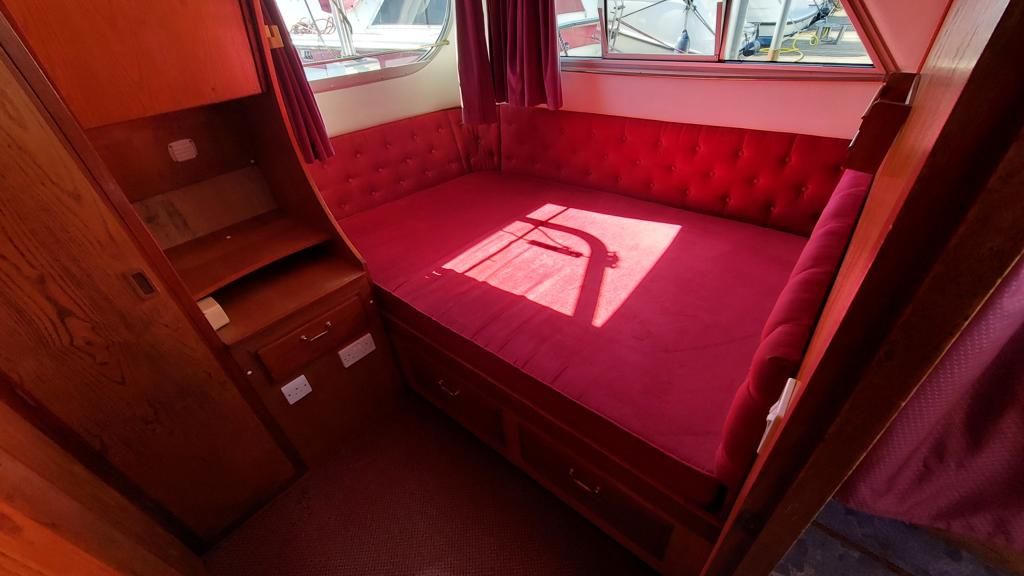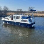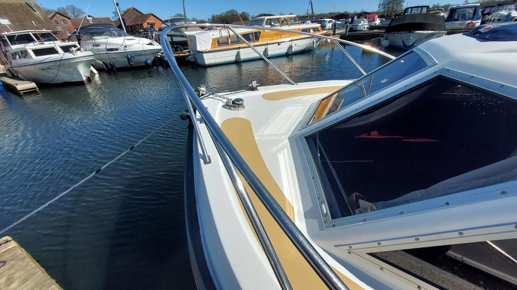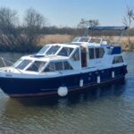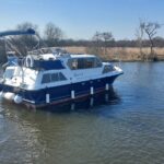 Alpha 29 Dual Steer – 1992 – Single BMC 1.8 ltr 52bhp diesel engine through a shaft. 4 berth accommodation across three cabins with 2 toilet/shower compartments. Specification to include; bow thruster, warm air heating, folding windscreens, bimini cover, electric windlass. “Kestrel” offers a lot of accommodation in a 29ft boat and would make an ideal craft on which to explore the broads. Folding windscreens give her access under most Broads bridges.