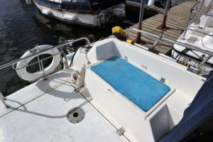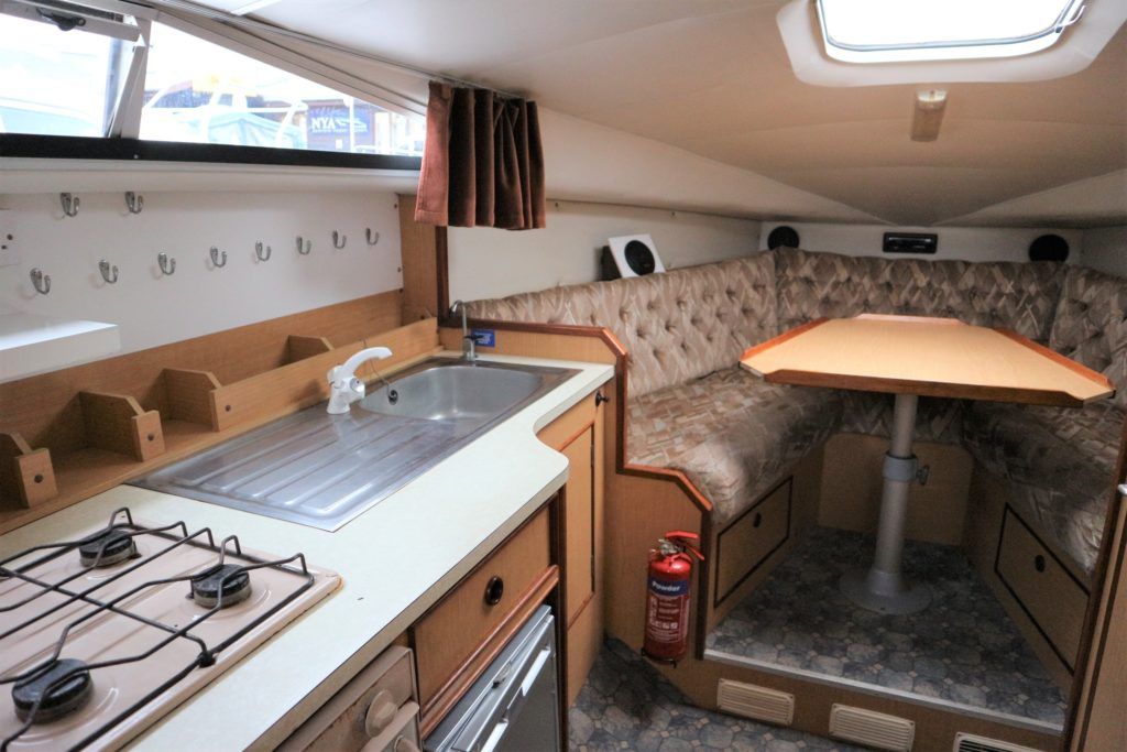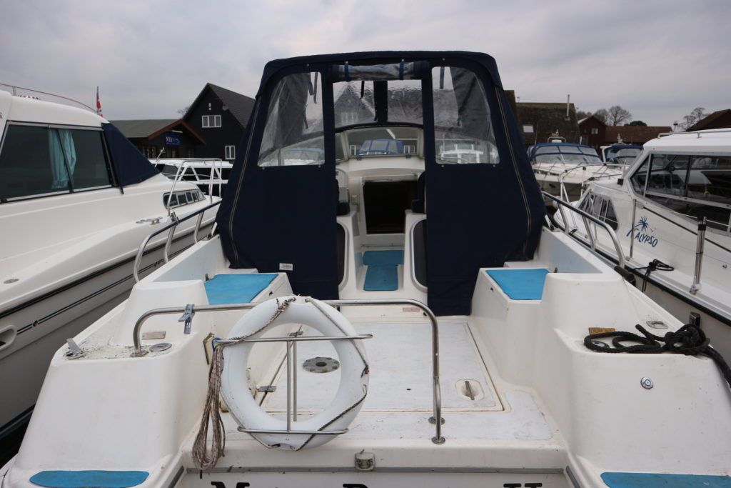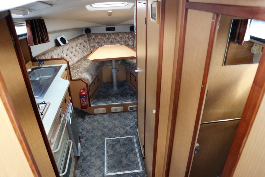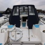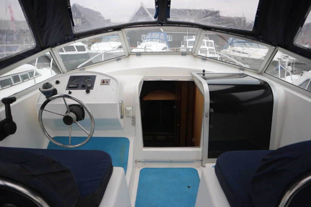 ALPHA 29 SPORTSBRIDGE – 1997 – Powered by 1 x 29hp Nanni diesel engine. 4 berth accommodation in two fixed double cabins with 1 x toilet/shower compartment. Galley with four burner hob, oven & grill, fridge. Spec including Propex warm air heating, shore power, battery charger, inverter. BSC 04/23. Engine serviced and hull antifouled in 2018. A spacious aft cockpit cruiser with the benefit of two separate double cabins, fully folding screens and arch creating a low air draft.