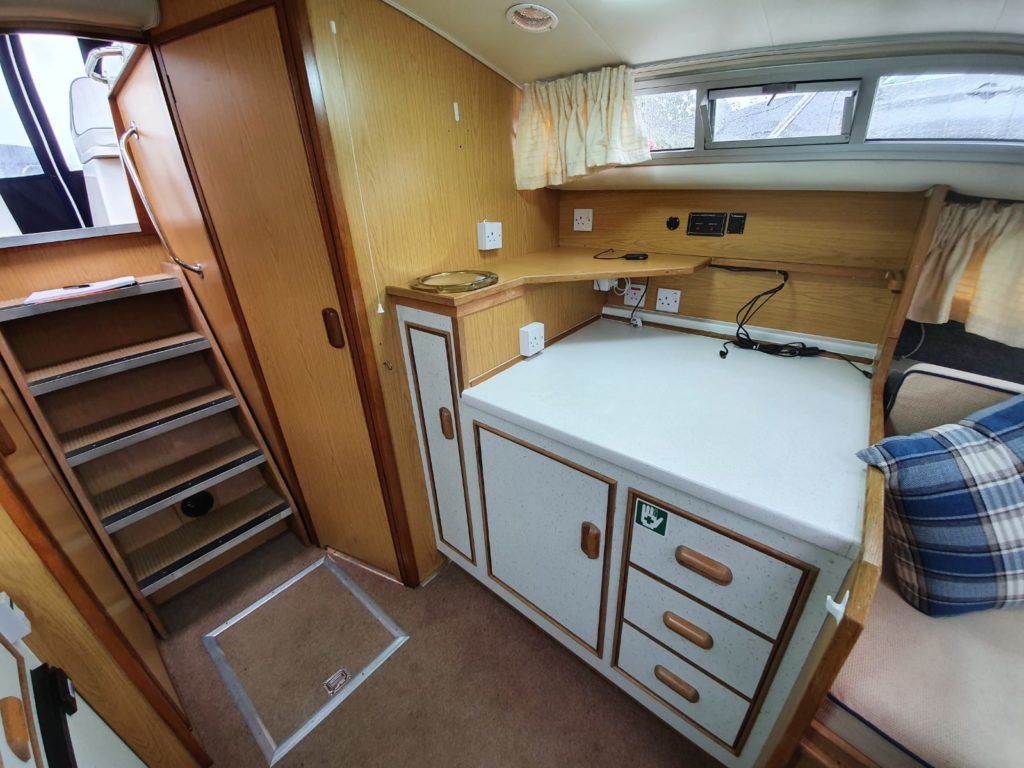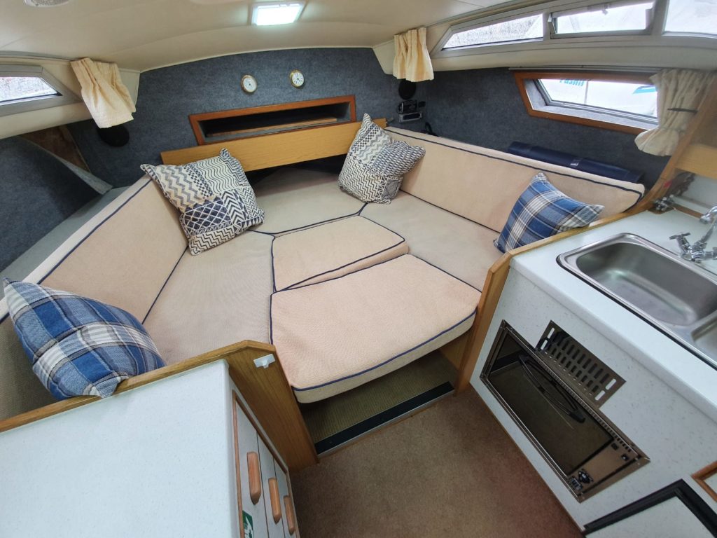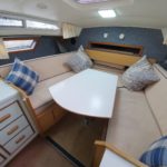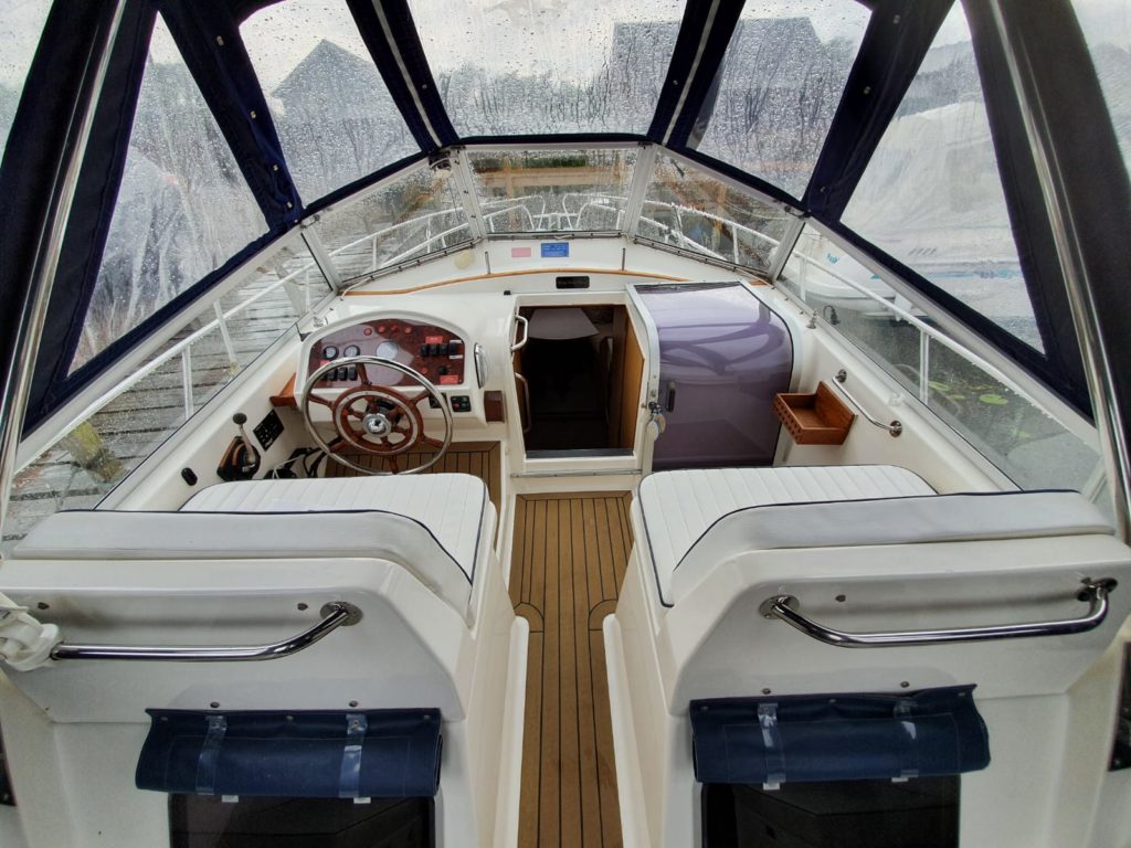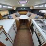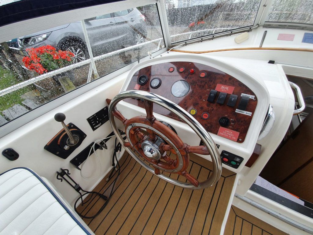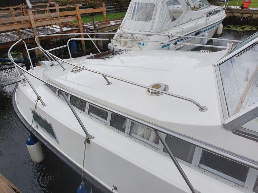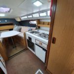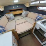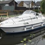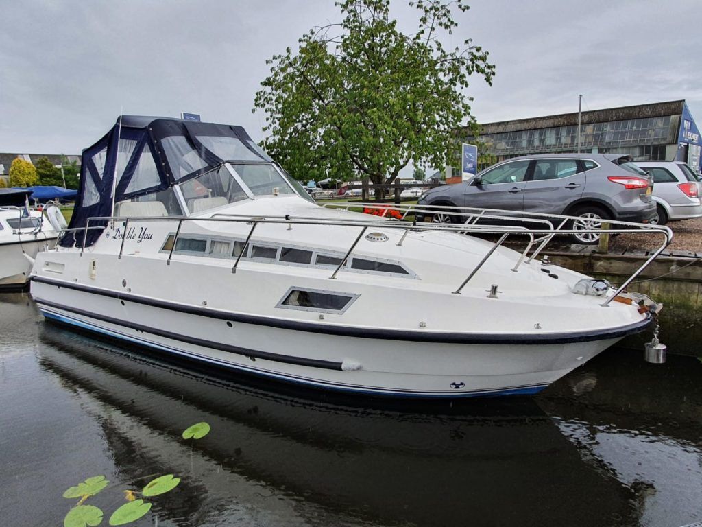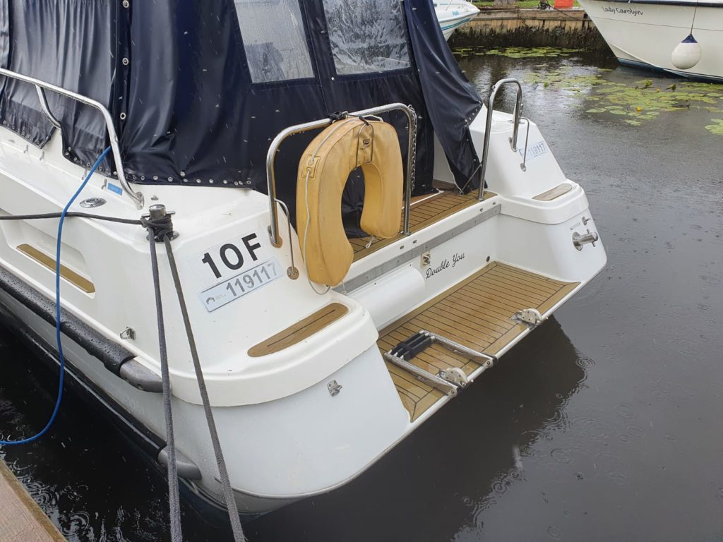 ALPHA 29 – 2000 – Powered by a single Isuzu 4L41 42hp diesel through a hydraulic shaft drive. 4 berth accommodation with electric flush toilet and shower. Specification to include; Holding tank, electric windlass with helm and deck controls, Max Power bowthruster, warm air heating, shore power supply with 240v sockets and battery charger. Folding canopy and screens for a much reduced air draft. Sythetic teak laid cockpit and bathing platform. A well presented and well specified river cruiser. If you are looking for a boat to explore the Norfolk Broads then look no further, this Alpha 29 will tick all the boxes!