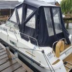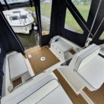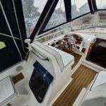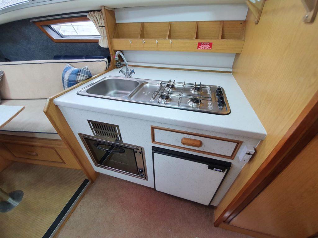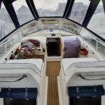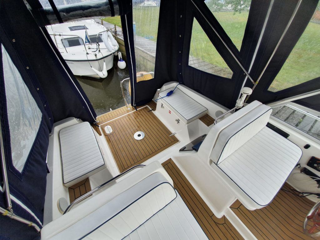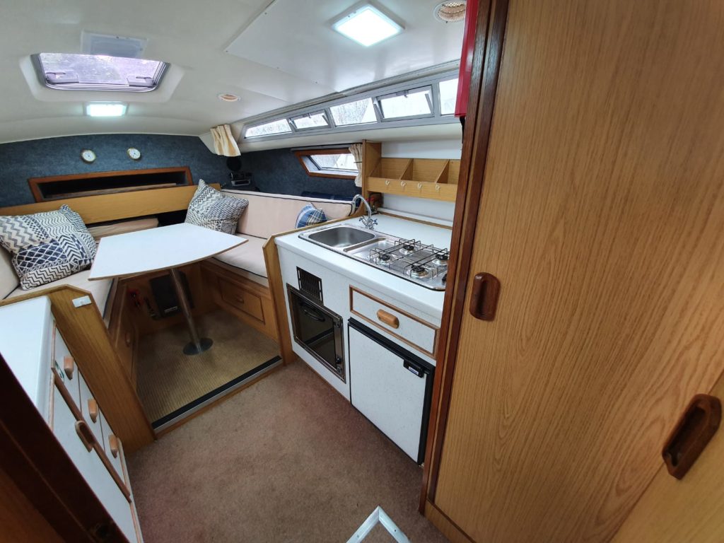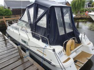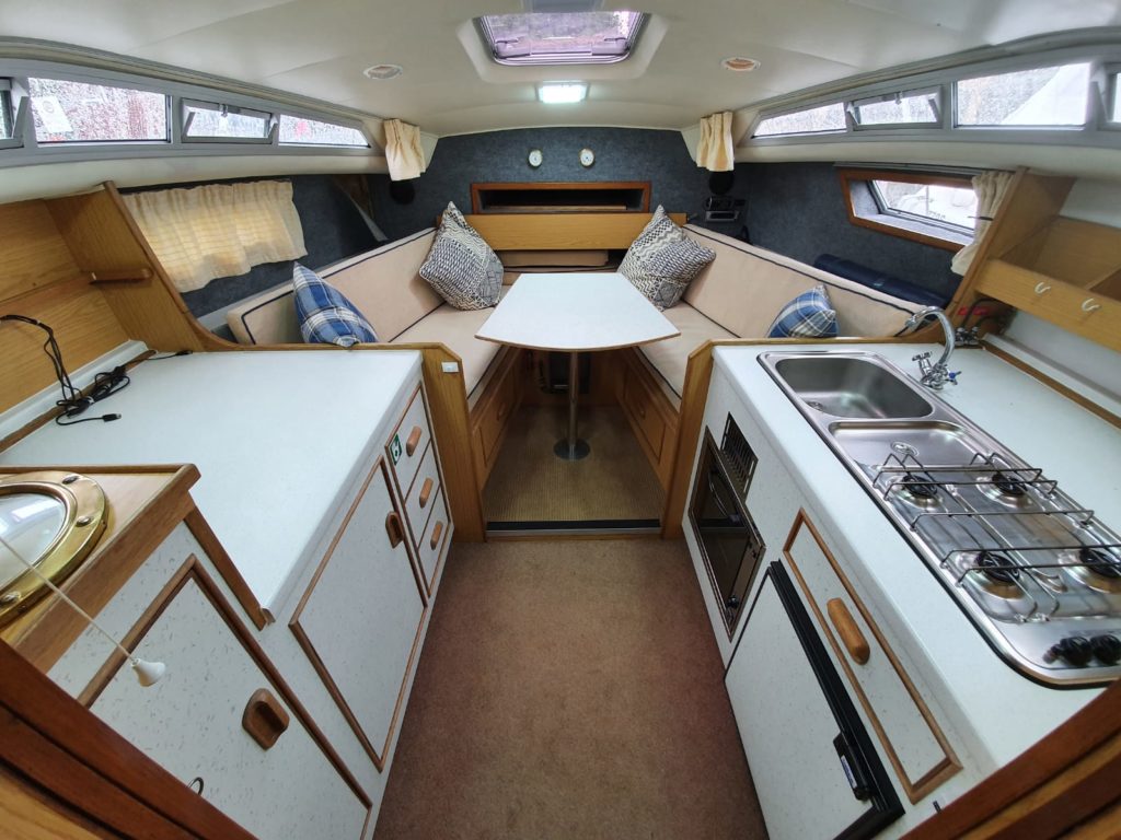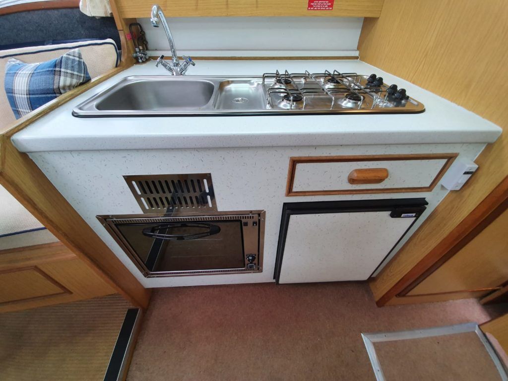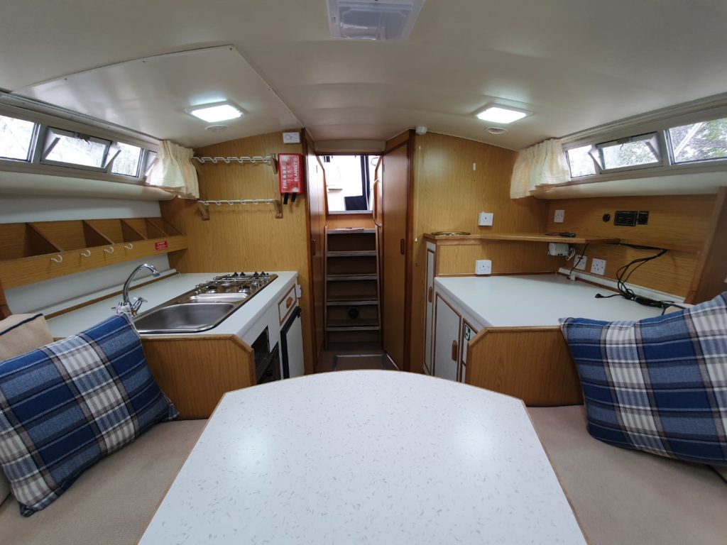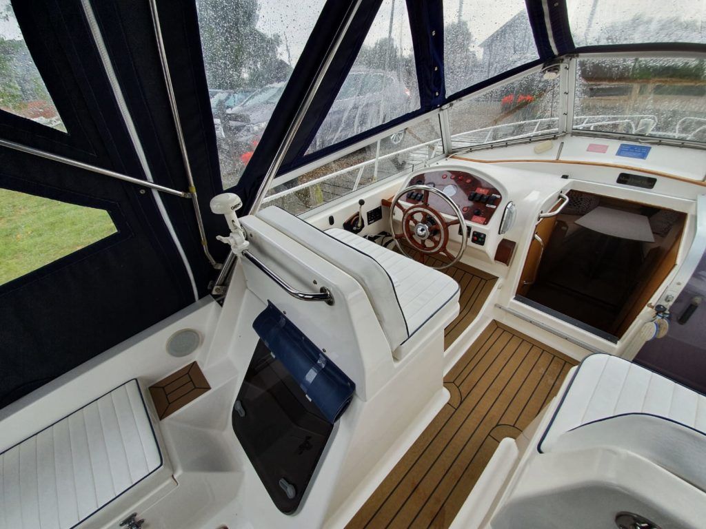 ALPHA 29 – 2000 – Powered by a single Isuzu 4L41 42hp diesel through a hydraulic shaft drive. 4 berth accommodation with electric flush toilet and shower. Specification to include; Holding tank, electric windlass with helm and deck controls, Max Power bowthruster, warm air heating, shore power supply with 240v sockets and battery charger. Folding canopy and screens for a much reduced air draft. Sythetic teak laid cockpit and bathing platform. A well presented and well specified river cruiser. If you are looking for a boat to explore the Norfolk Broads then look no further, this Alpha 29 will tick all the boxes!