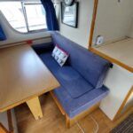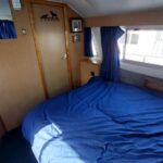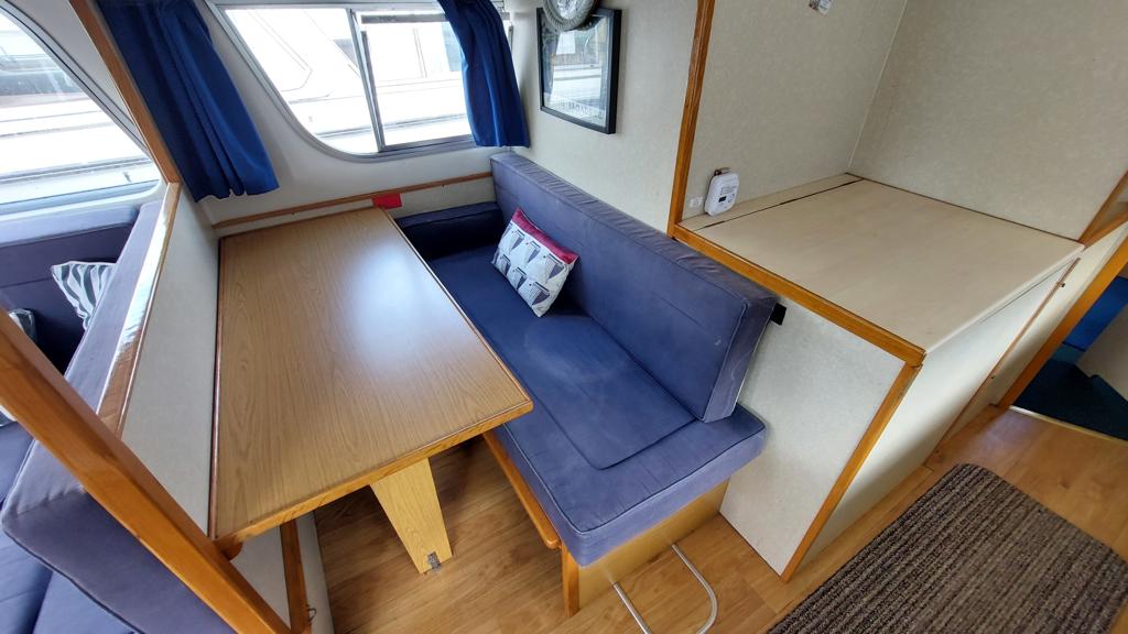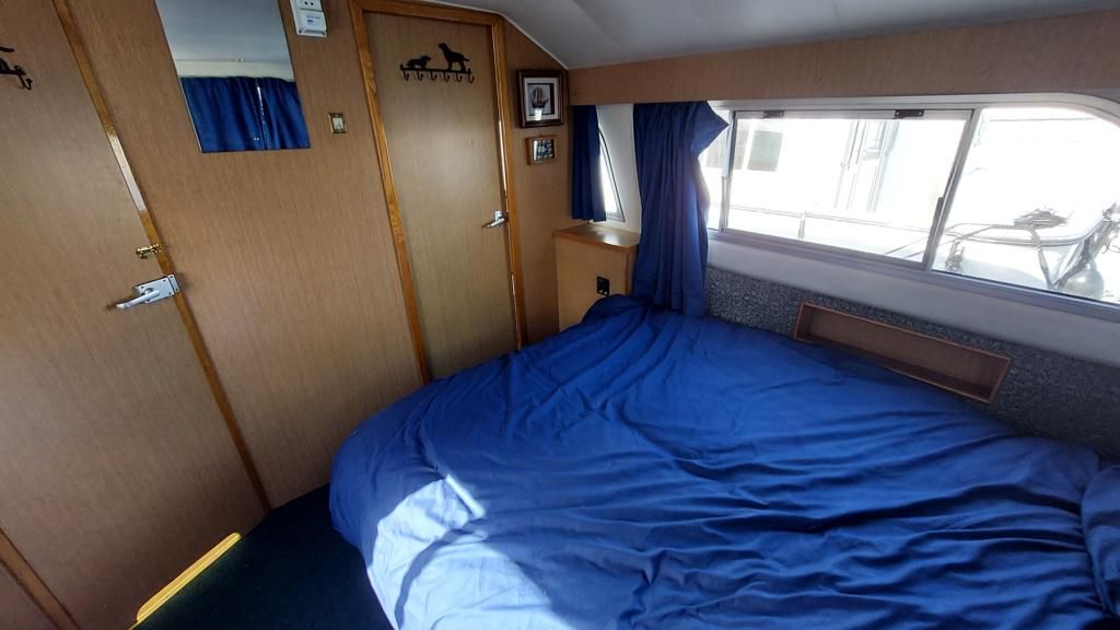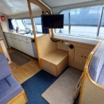 Alpha 32 – 1982 – Single BMC 1.5 diesel engine through a shaft. 4 berth accommodation with a single en-suite toilet and shower compartment and large open plan saloon. Specification includes inverter, battery charger, warm air heating, shore power, rare split sliding roof, fore and aft well canopies. “Yolo” offers a large amount of living space and a bridge friendly air-draft. BSS Expiry July 2028. A comfortable cruising boat with liveaboard potential.
