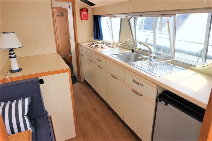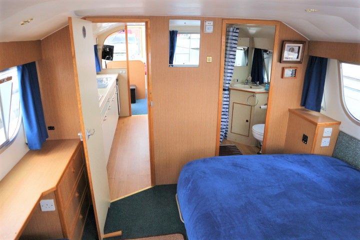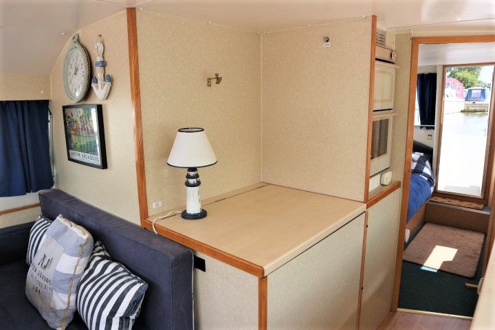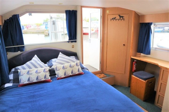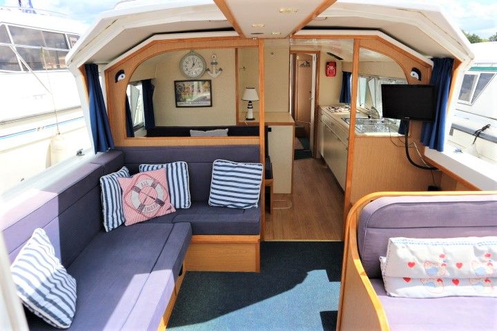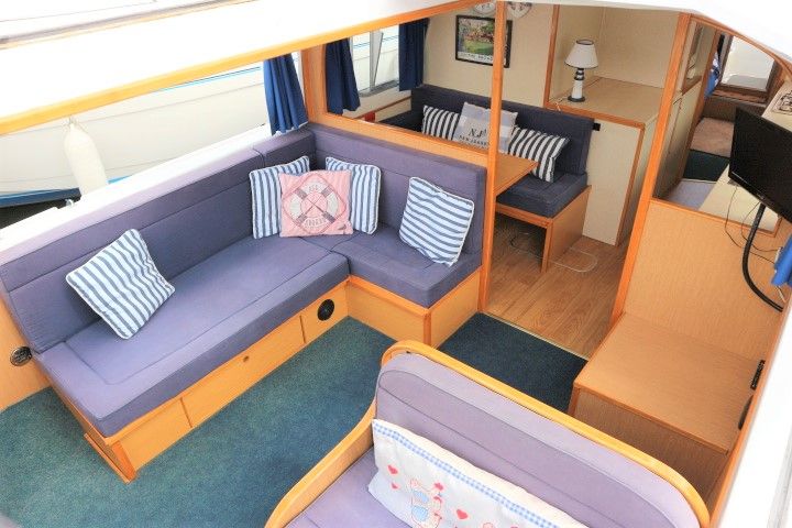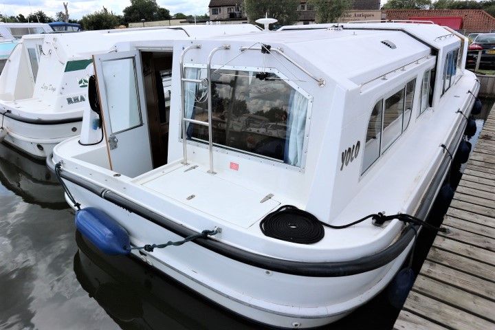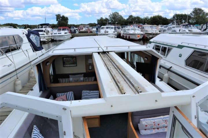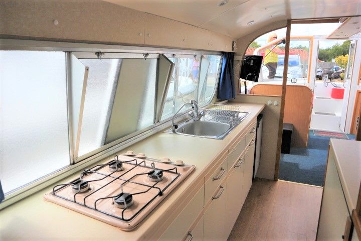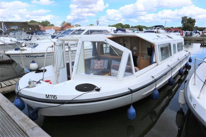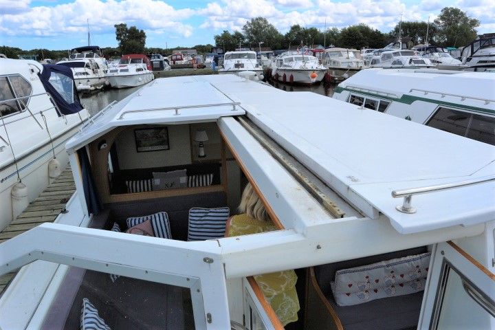 ALPHA 32 FORWARD DRIVE – 1982, Single BMC 1.5 diesel engine. 4/6 berth accommodation with 1 x ensuite toilet & shower, large galley with fridge, 4 burner hob and seperate eye level oven. Split sliding wheelhouse roof over Saloon, shore power, warm air heating, battery charger, inverter, BSC 03/2020. A very spacious river cruiser with a rare layout. Low air draft, allowing passage through most Broadland bridges.