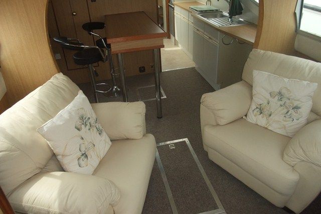 ALPHA 35 MKII – Built 1993 with a Lister Petter diesel enigne, 2 berth accommodation, seatoilet to holding tank, shower, oven and hob, electric fridge and microwave all new, new Eberspacher and Webasto warm air heating, inverter, immersion heater, new upholstery, carpets, lino curtains and lights throughout, BSC expires 2014.