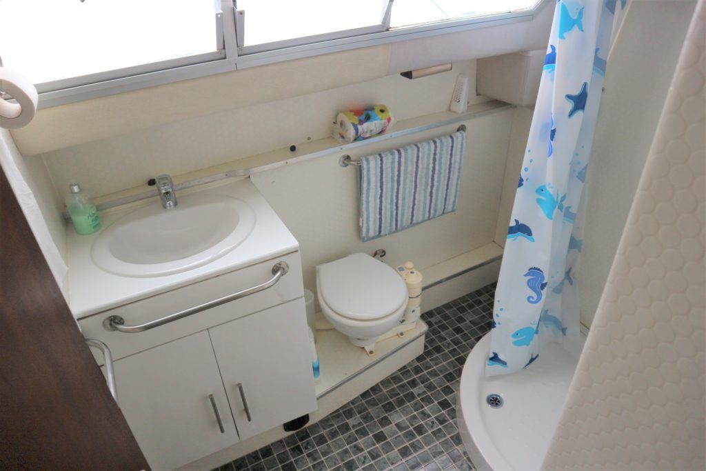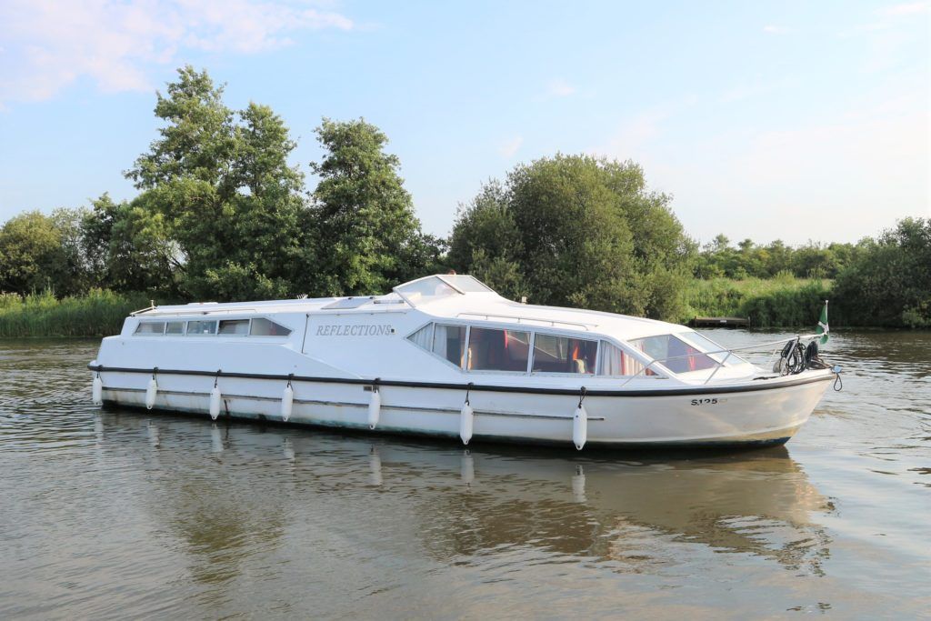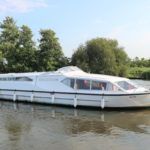 ALPHA 42 LOWLINER – 1990 – Single Mitsubishi diesel engine. 5 berth accommodation over cabin and saloon/dining area with 1 x toilet/shower compartment. Spec including bow thruster, generator, inverter, shore power, battery charger, warm air heating, immersion heater, manual windlass, BSC 07/22. A spacious river cruiser offering comfortable accommodation as a live aboard or for extended cruising. Low air draft allowing passage beneath all Broadland bridges.