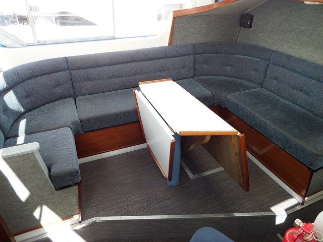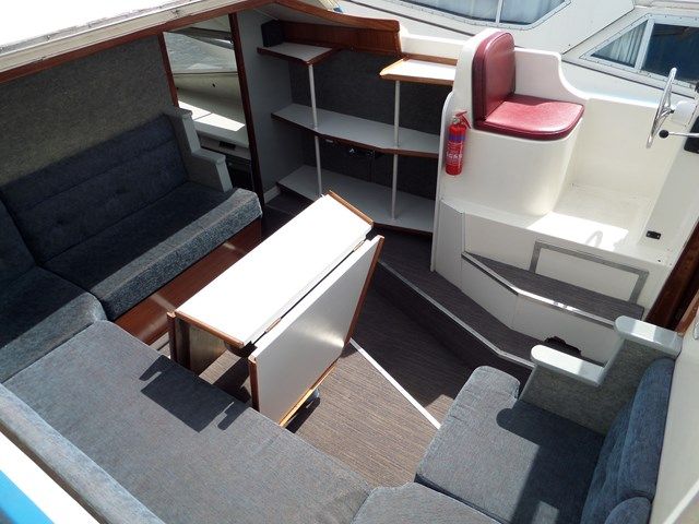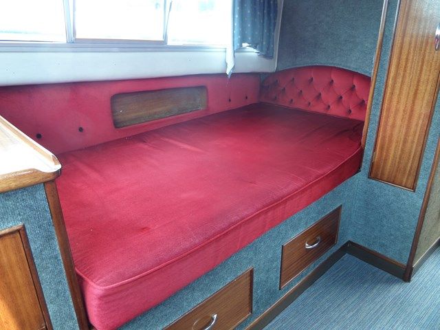 ALPHACRAFT 42 – 1990, 1 x BMC 1.5 36hp diesel engine, 8 berths in 4 cabins, 2 x electric toilets & showers, 1 x full size & 1 x sitz baths, electric sliding roof, folding screens, inverter, full size cooker, holding tank, calorifier, hydronic heating system (radiators). A large family cruiser with plenty of space and accommodation.