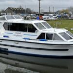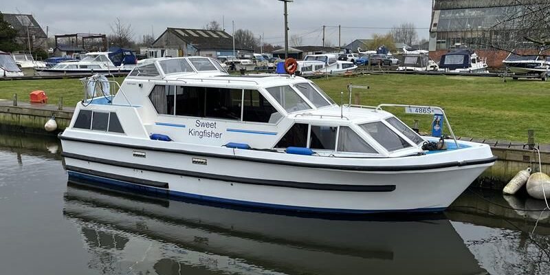 Alpha Craft 29 Dual Steer – 1990 – Powered by a Nanni 42hp diesel engine. 4 berth accommodation with two en-suite cabins (one with sit bath). New fitted galley in 2023 including new cooker, worktops, units and sink. Fitted with Warm air heating, shore power, calorifier, window covers, teak and holly effect flooring to saloon/galley, folding windscreens for increased access on the inland waterways. Fully prepped in 2023. An incredible amount of family accommodation all within 29ft. NYA Stock – Sold with 3 month engine & gearbox warranty.