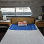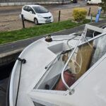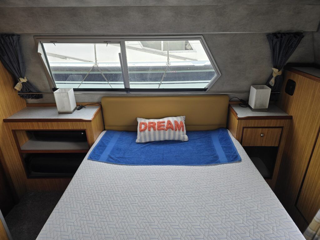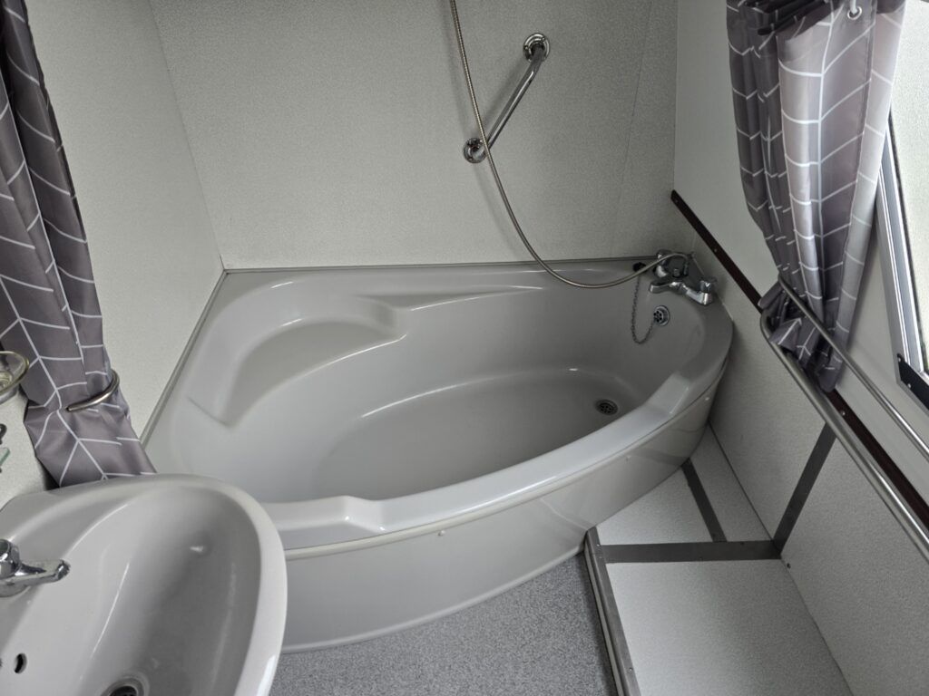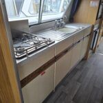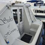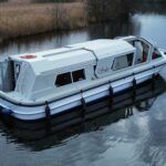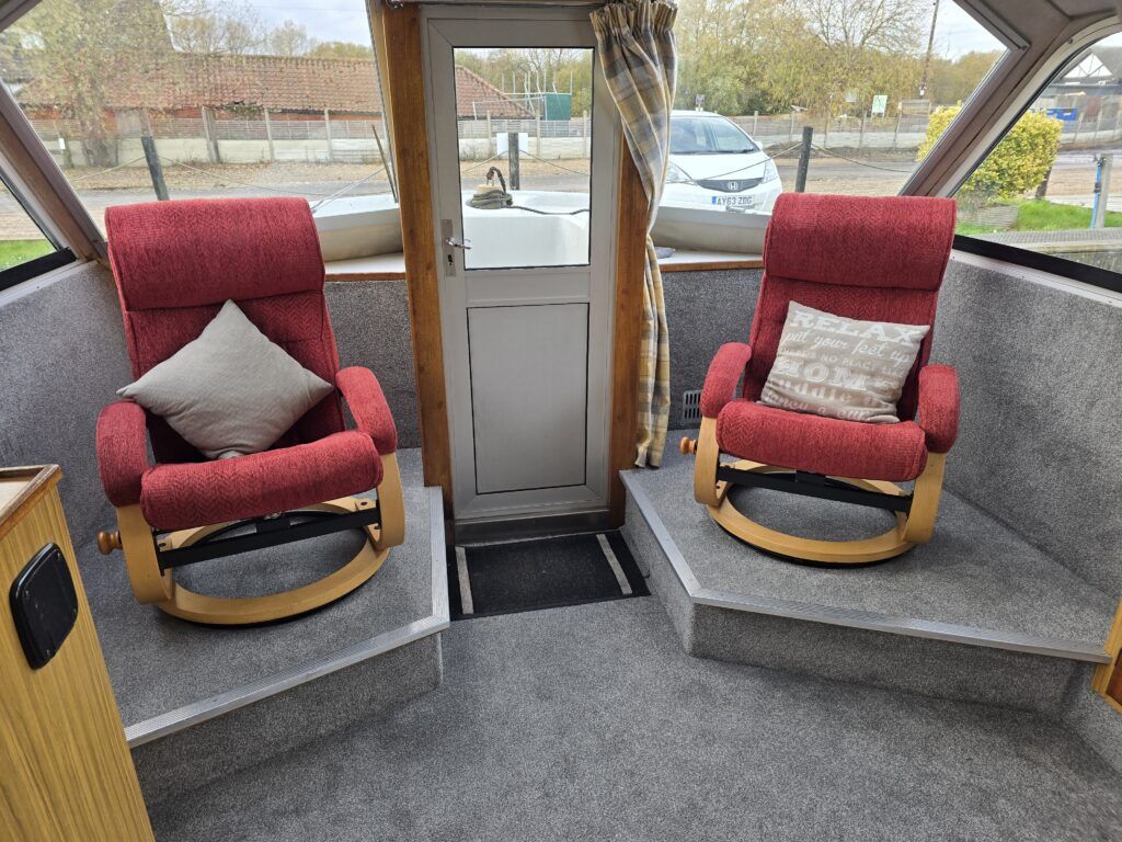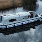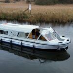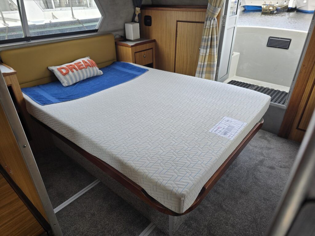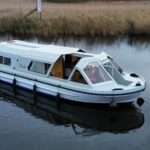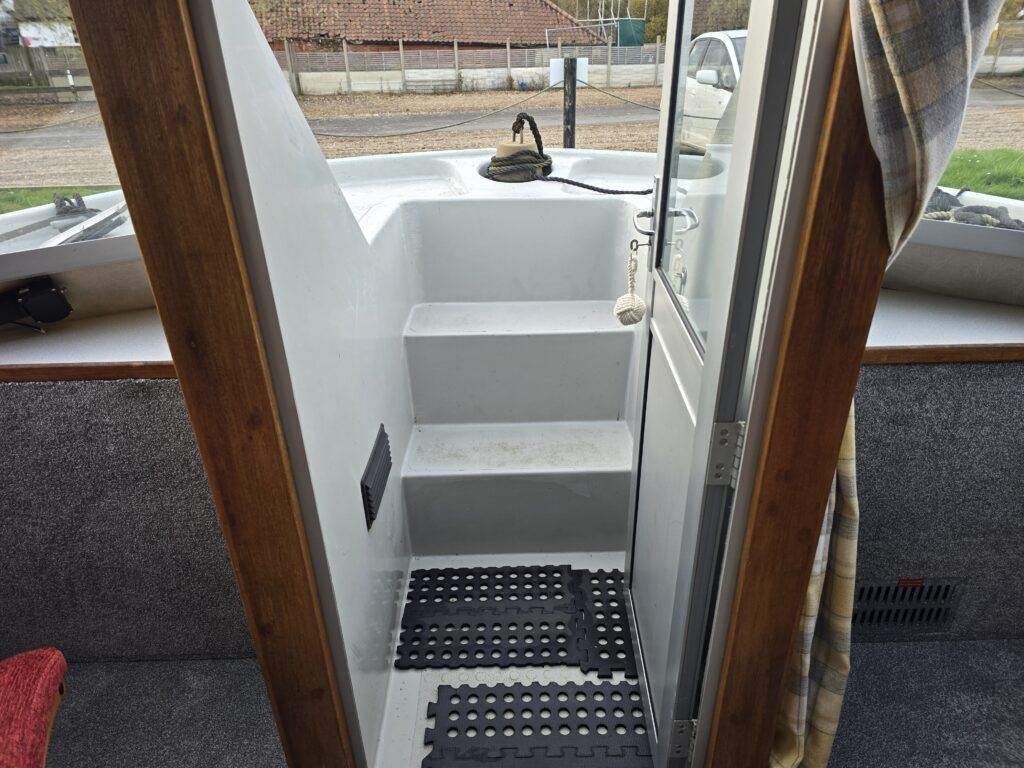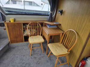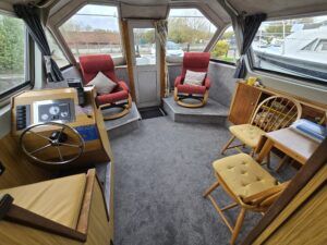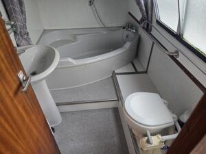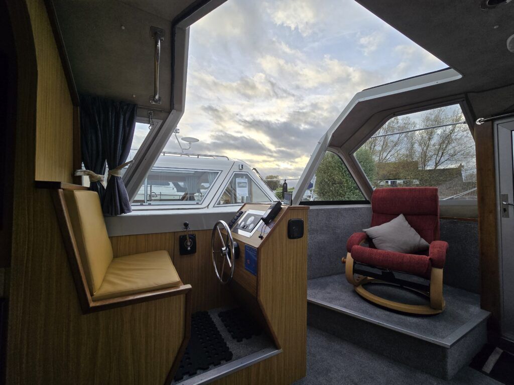 Alphacraft 34 – 1994 – Powered by a Nanni N4.38 38hp diesel engine through a shaft drive. A highly desirable two-berth layout, featuring a spacious island double aft cabin with an en-suite bathroom, including a toilet and a shower/bath. Specification includes: inverter, immersion heater, battery charger, warm air heating, and a full galley with a new cooker. Fitted with three new batteries and antifouled in 2025. “Suki” offers generous space for a couple wishing to explore the inland waterways in comfort, and benefits from a Nanni diesel engine with just 318 hours.
