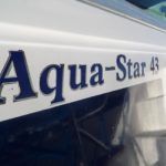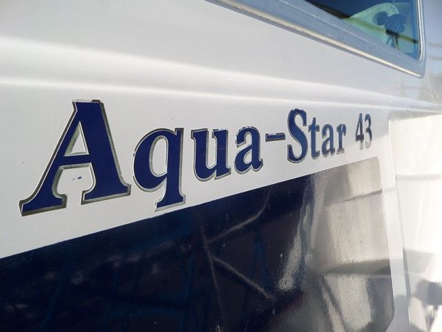 AQUA-STAR 43 – 1997, 2 x Caterpillar 350Hp diesel engines, 6 berths in 2 cabins, 2 x toilets & showers. Spec inc: generator, inverter, hot air heating, folding radar mast, windlass, hot water heating system, holding tank, shore power, battery charger and much more. The A-S 43 have a brilliant reputation for their sea keeping & superb build quality & finish throughout.