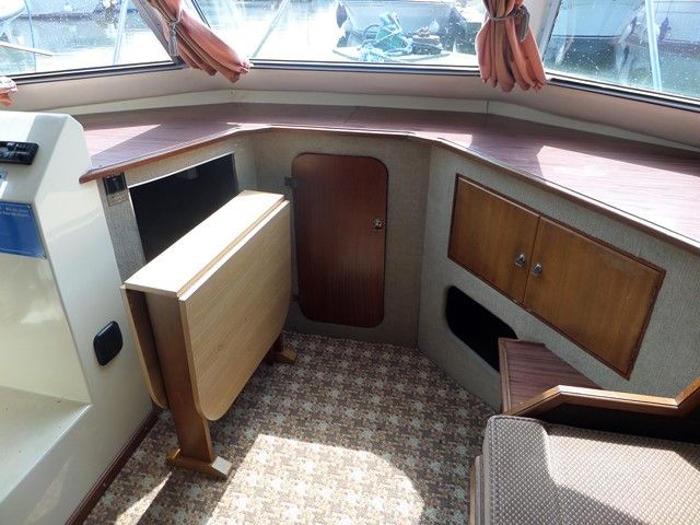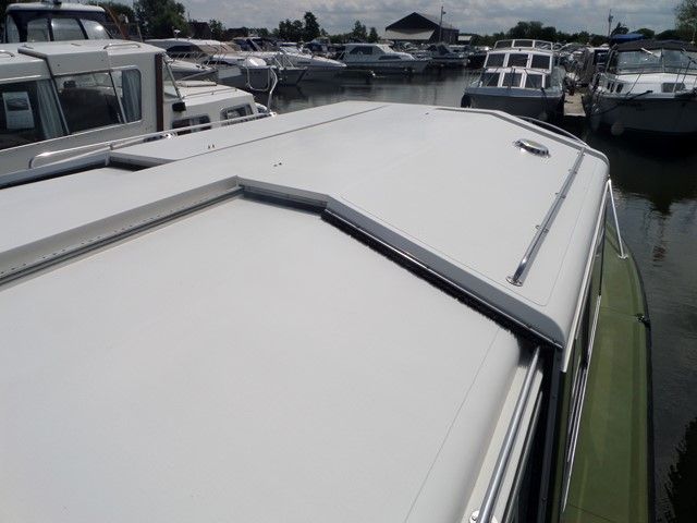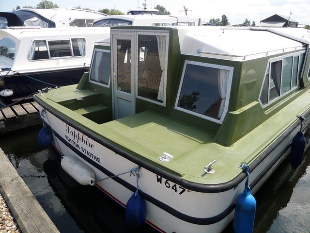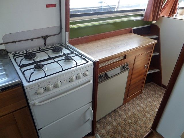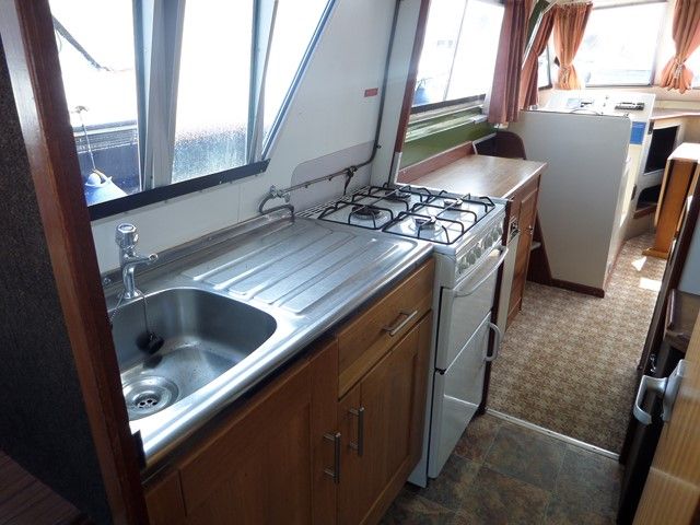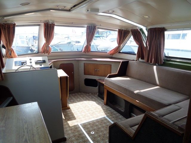 AQUAFIBRE 28 – 1991, 1 x Nanni 4.110HE 30Hp diesel engine, 4 berths in 2 cabins, 1 x toilet & shower, Boat Safety Certificate until: 2017. Spec including: gas hot air heating system, split sliding roof, aft well canopy, holding tank, 4 x gas ring hob/oven/grill, fridge and more. A very popular river cruiser, offering a low air draft and spacious accommodation.