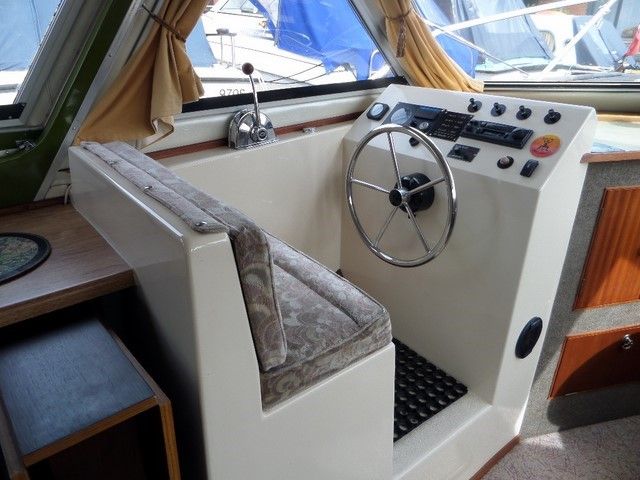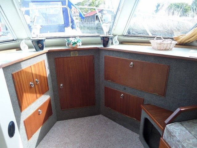AQUAFIBRE 28’6″ OPAL – 1992 with a single Nanni 4.110HE diesel. 4 berths, pumpout toilet/ shower, galley. Battery charger, warm air heating, shore power, electric anchor winch. Split sliding wheelhouse roof, BSC expires 2017. Ideal craft for cruising the inland waterways.