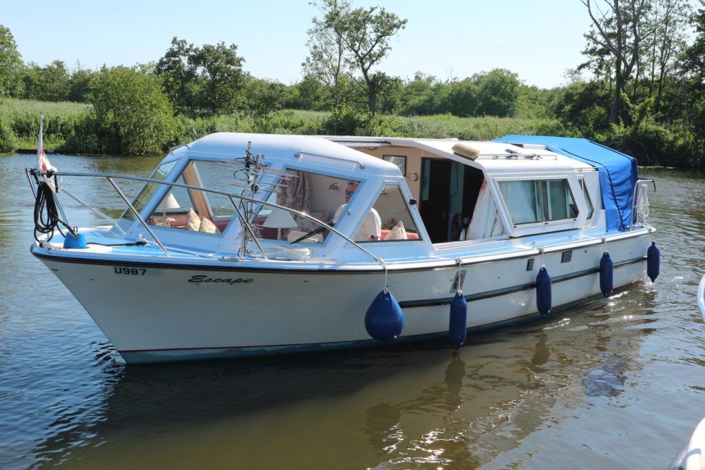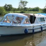 AQUAFIBRE 28 OPAL – 1989 – Powered by a Nanni 4.110HE (35hp) diesel engine through shaft. 4 berth accommodation with 1 x toilet/shower compartment. Galley with full cooker, fridge and sink. Spec including battery charger, inverter, shore power, propex warm air heating, reversing camera, rear/aft well cover, full tailored winter cover, split sliding roof, BSC 04/23. A popular river cruiser design with a spacious and comfortable layout. Highly maintained by her owners & well presented.