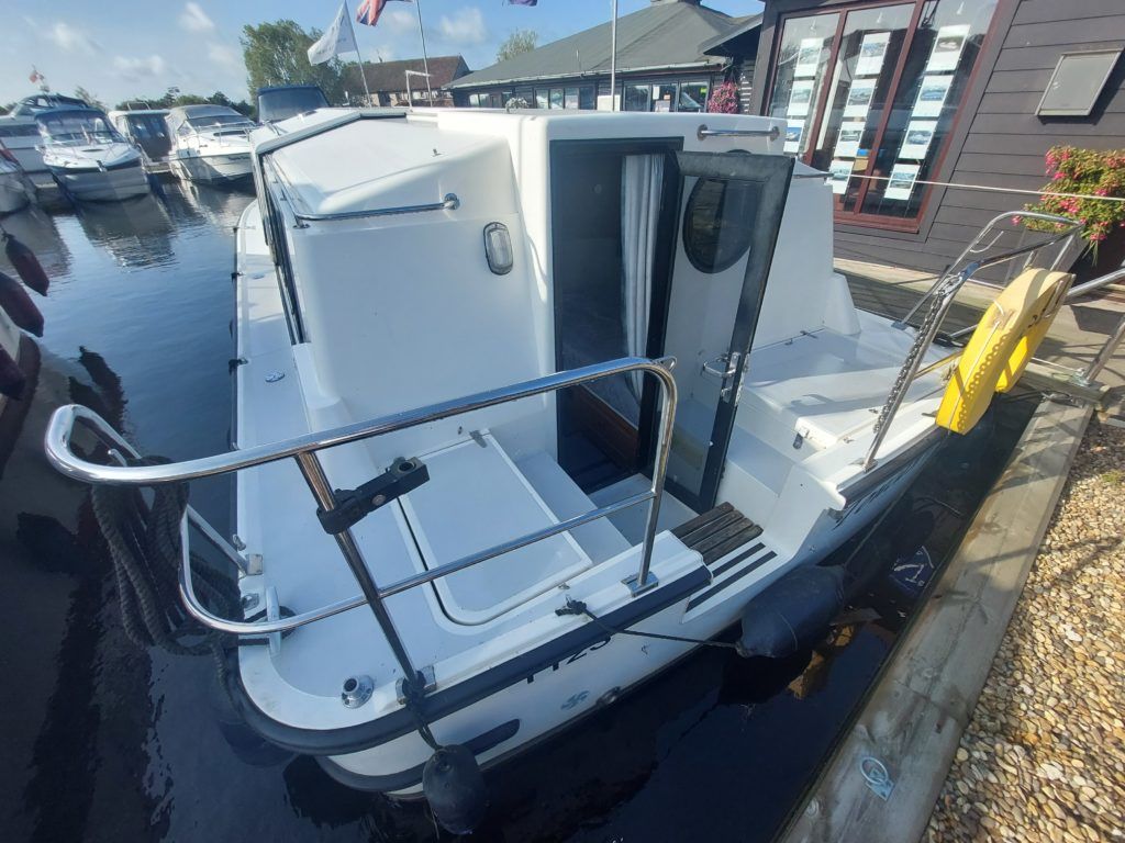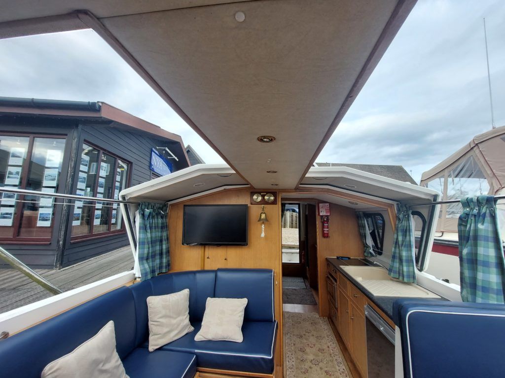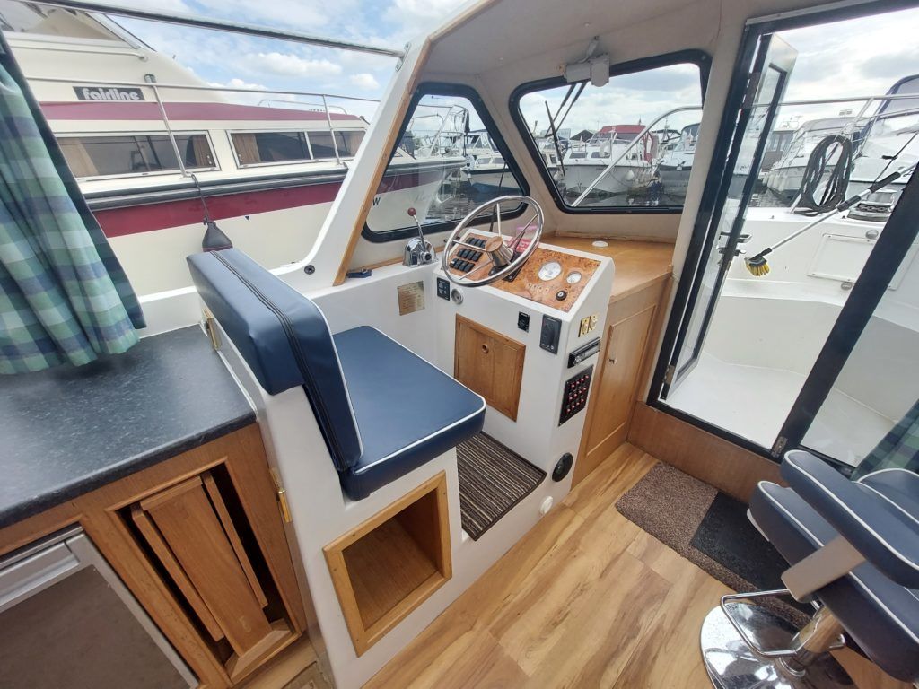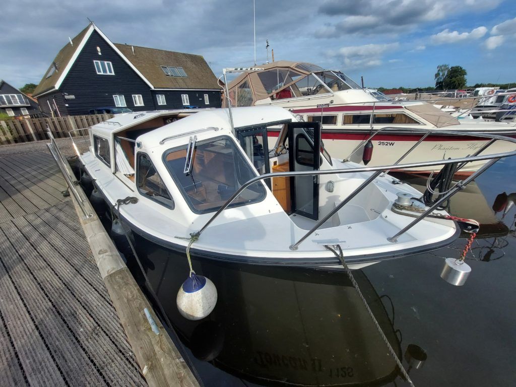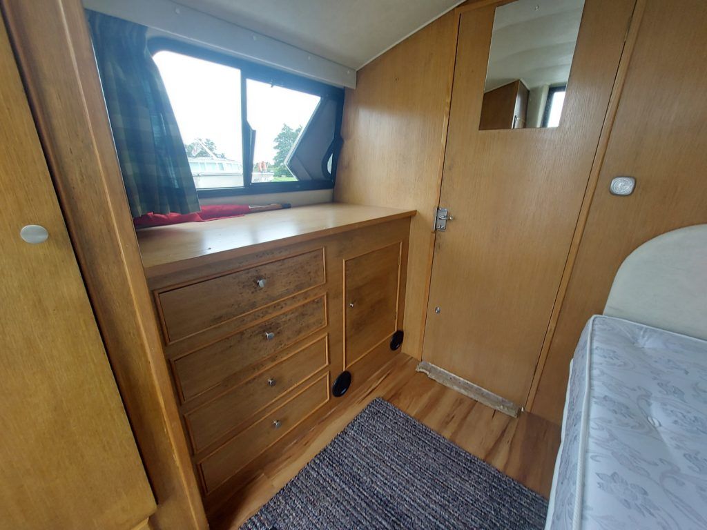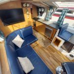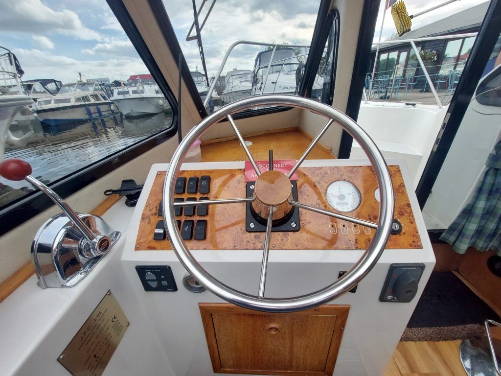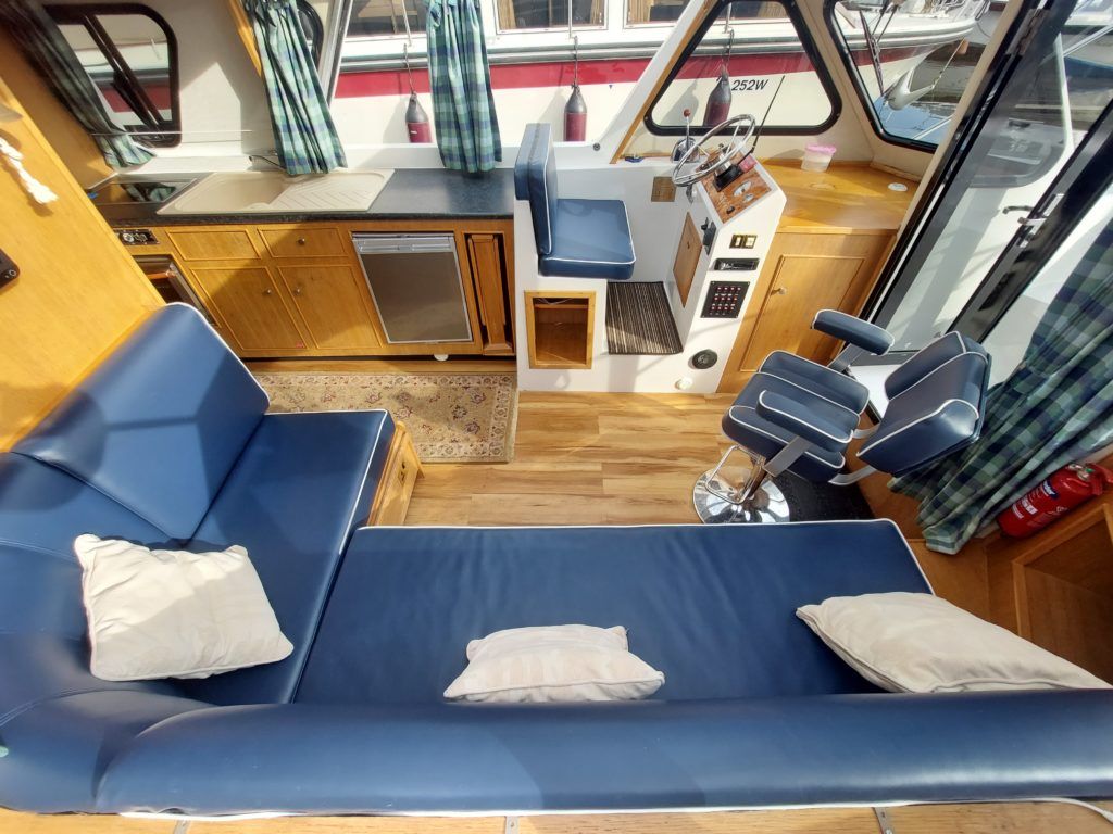 Aquafibre 28 Opal – 2009 – Single Nanni 4.38HE 38hp diesel engine through a shaft. 4 berth accommodation with a single electric toilet/shower compartment. Specification to include; bow and stern thrusters, electric anchor windlass, warm air heating, inverter, split sliding roof, full galley. “Toucan” is a well equipped version of these popular river cruisers, ideal for exploring the Broads. BSC 04/2025