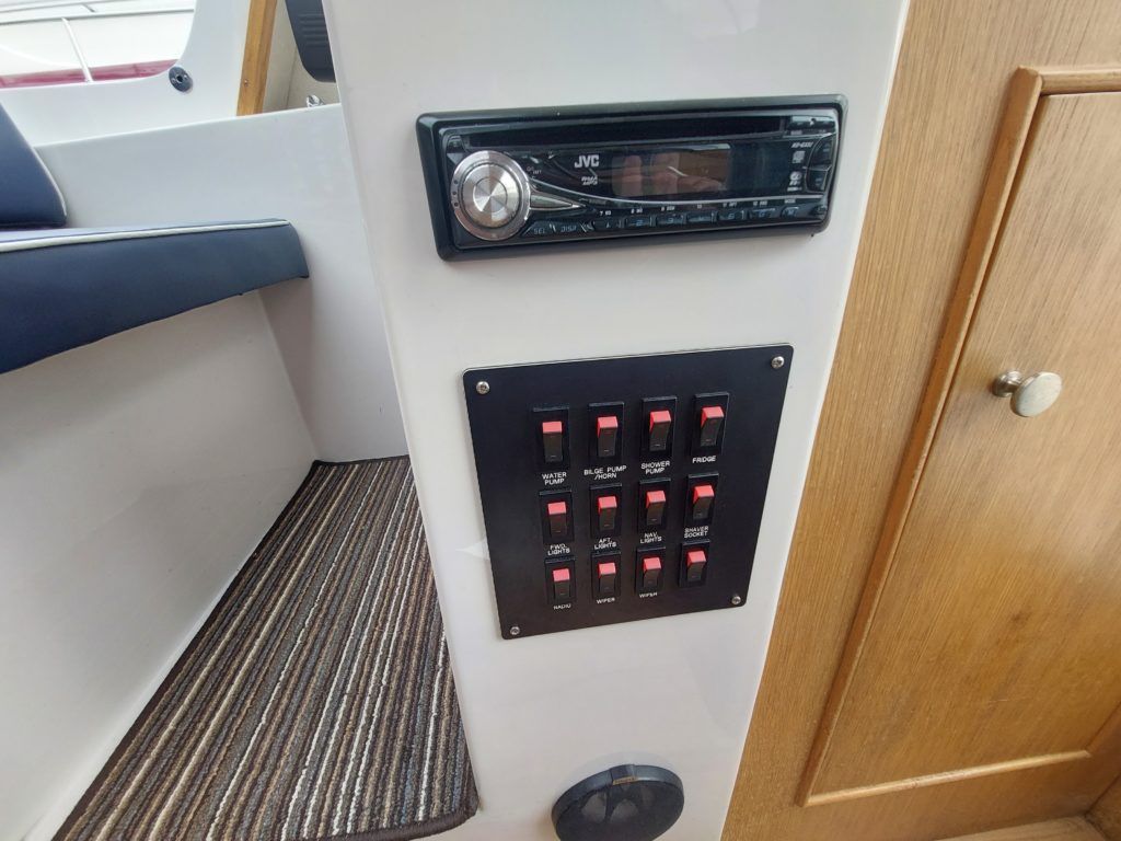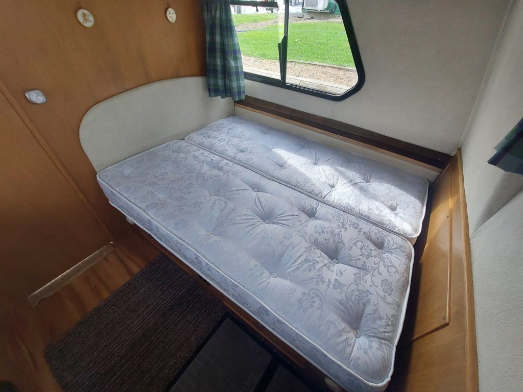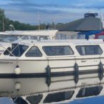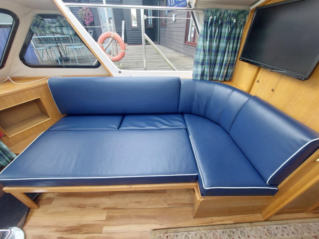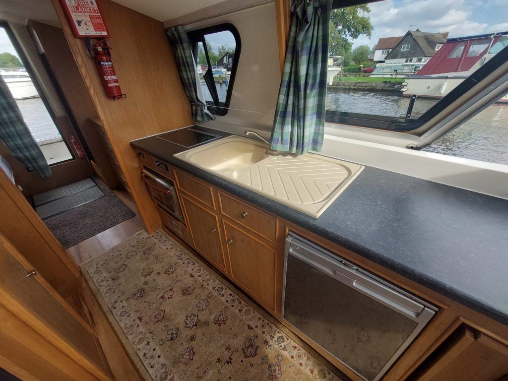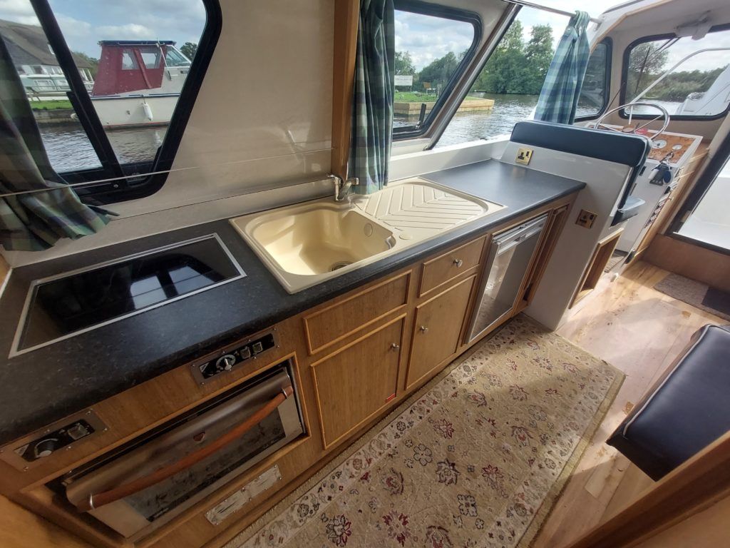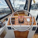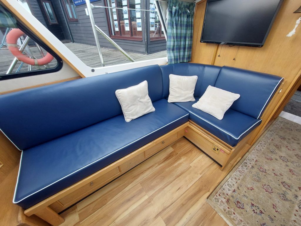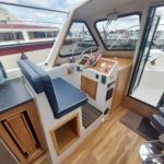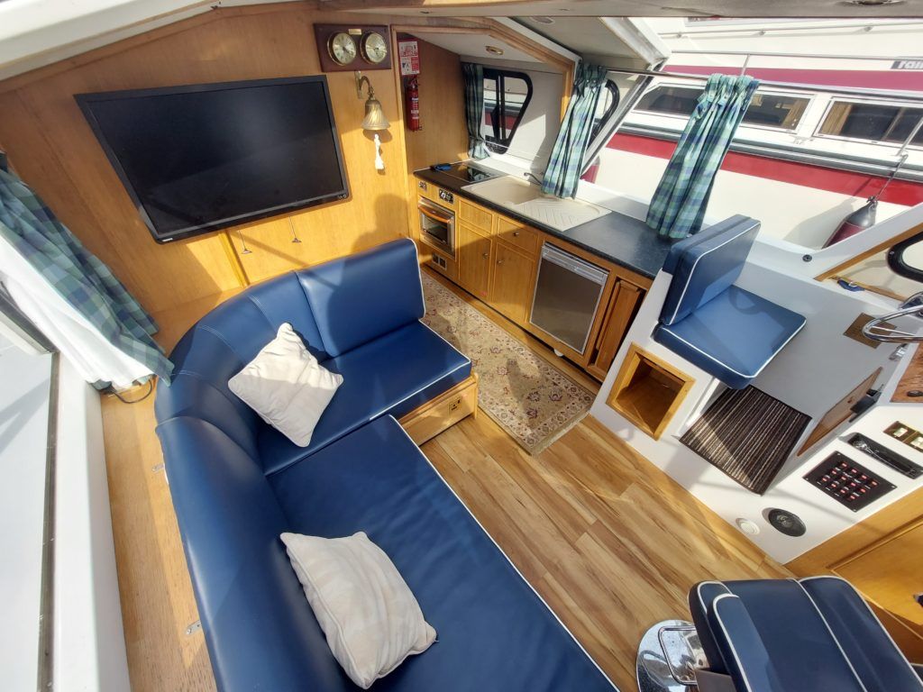 Aquafibre 28 Opal – 2009 – Single Nanni 4.38HE 38hp diesel engine through a shaft. 4 berth accommodation with a single electric toilet/shower compartment. Specification to include; bow and stern thrusters, electric anchor windlass, warm air heating, inverter, split sliding roof, full galley. “Toucan” is a well equipped version of these popular river cruisers, ideal for exploring the Broads. BSC 04/2025