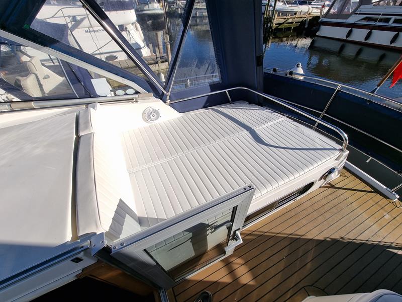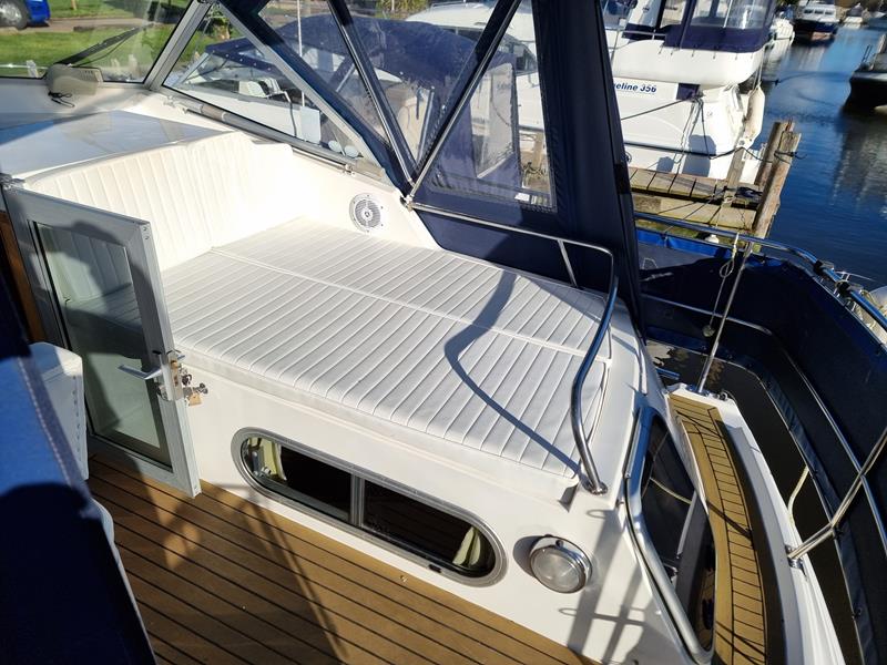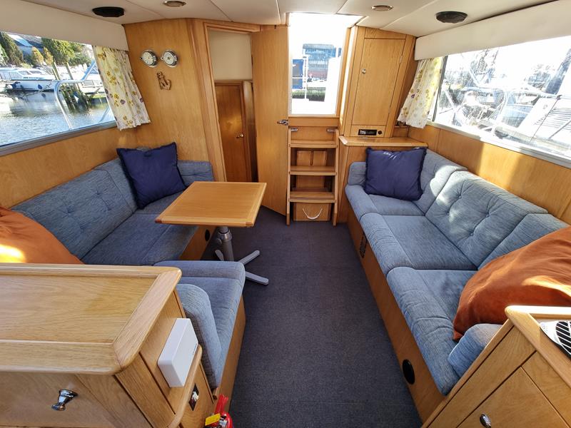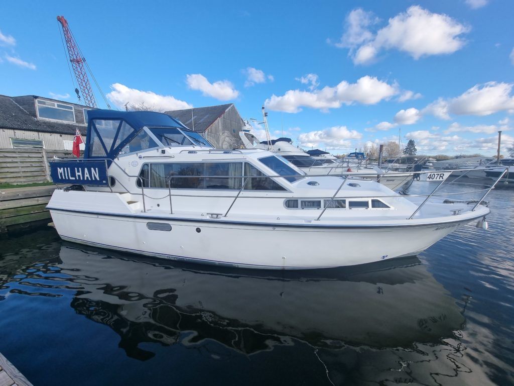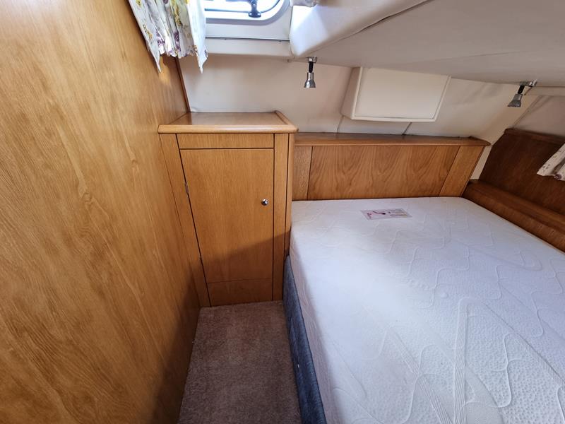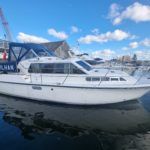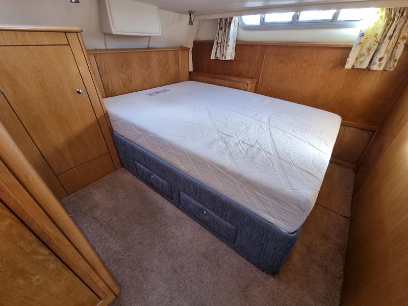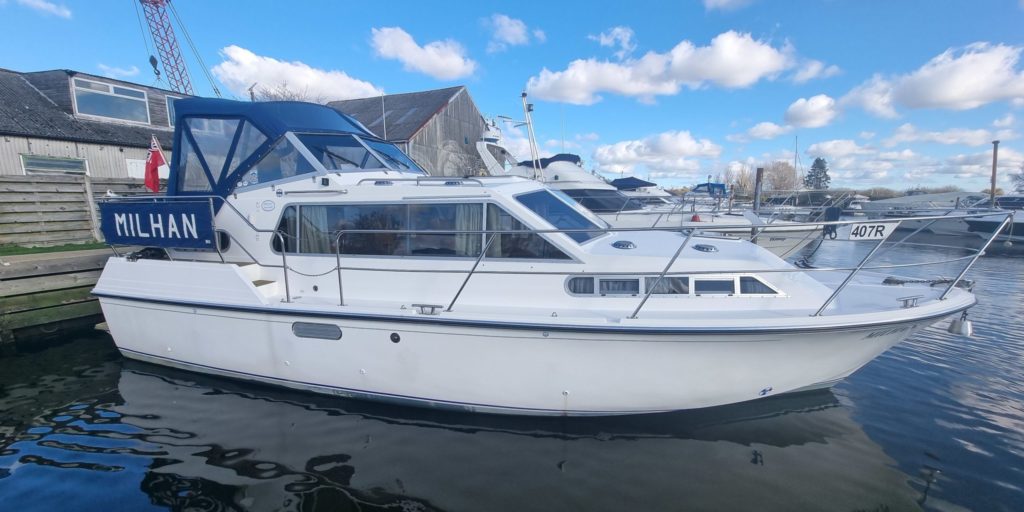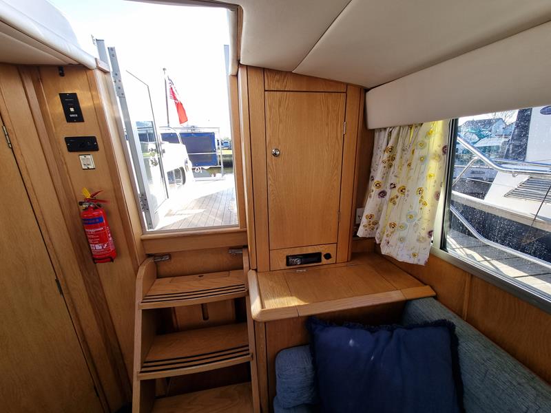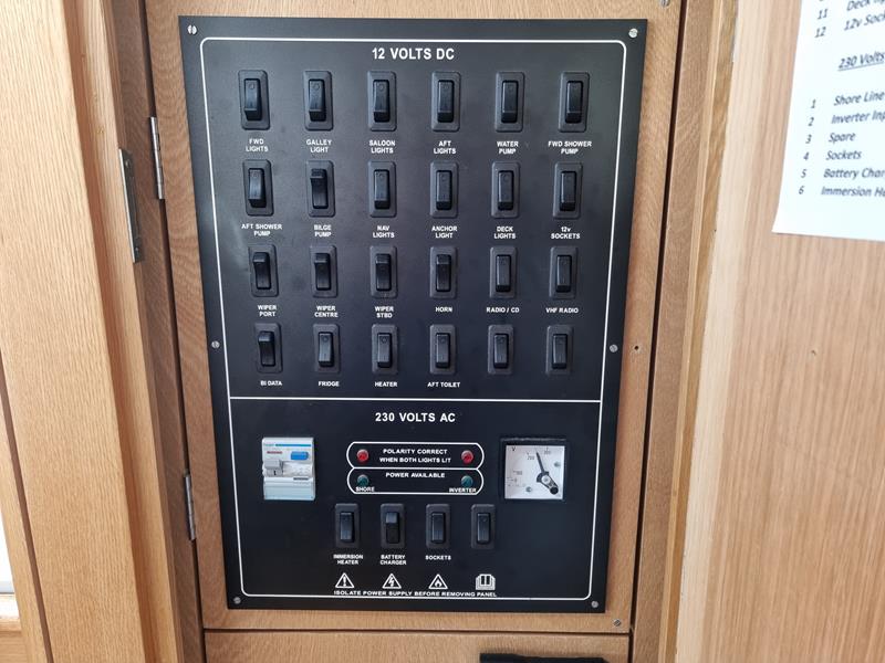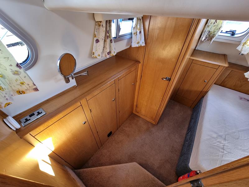 AQUAFIBRE 32 – 2005 (Commissioned 2007) – 1 x Nanni 4.200HE (43hp). 6 berth accommodation over two cabins and saloon with 2 x toilet/shower compartments. Specification including bow thruster, electric windlass, warm air heating, shore power, battery charger, immersion heater,  inverter, speed & depth log, synthetic teak decking to upper sundeck. BSC 03/24. The most recent Aquafibre 32 to be moulded and fitted out in oak to a high standard by her original owner. Presented in lovely condition. Viewing recommended.