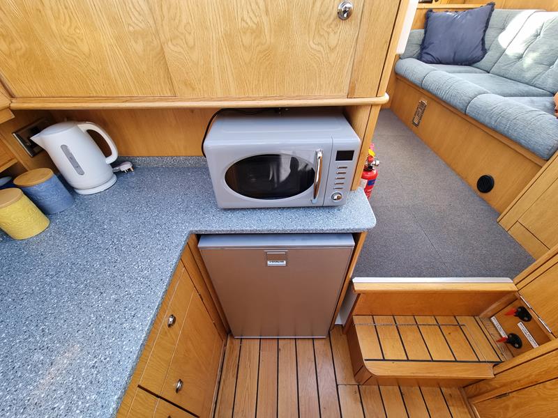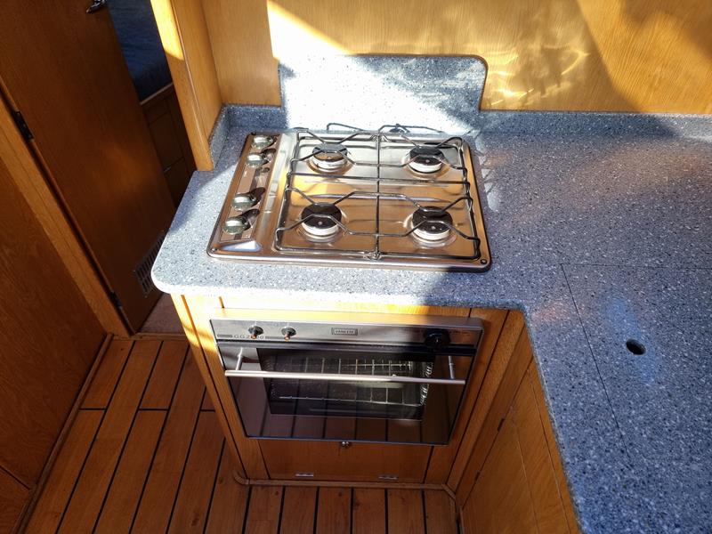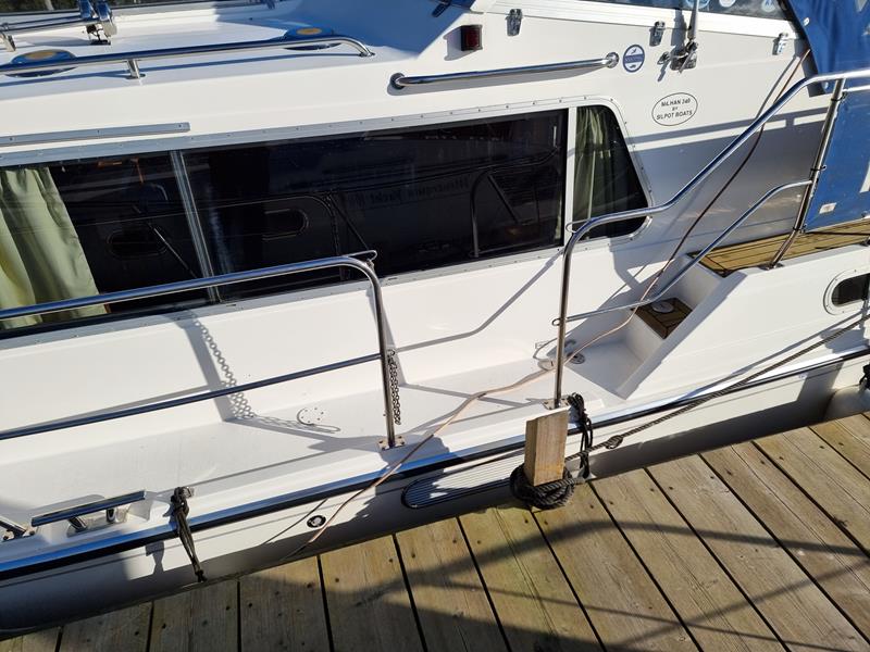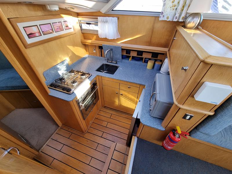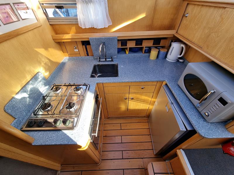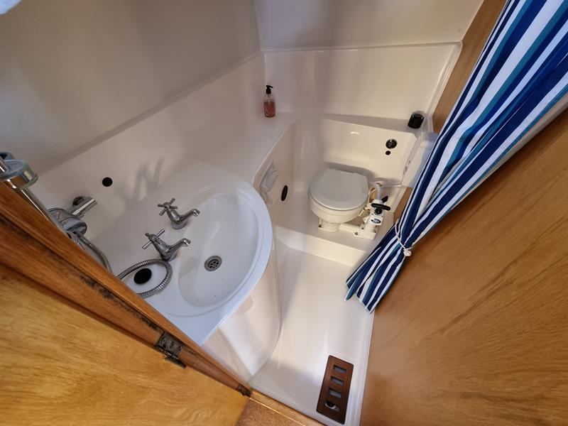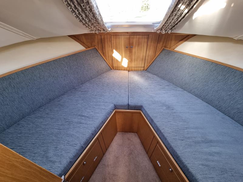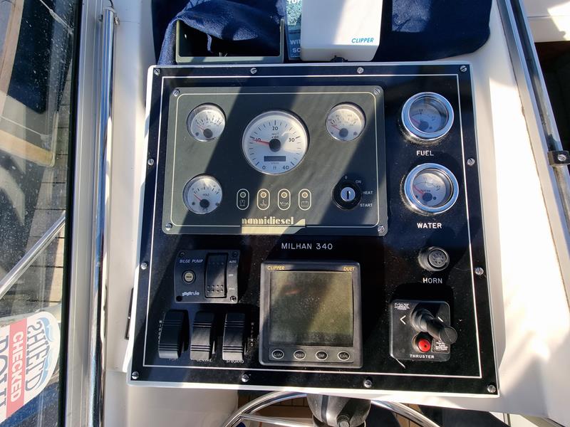 • Milhan was moulded by Aquafibre in August 2005 and transported to Goodchild Marine where the moulding was then fitted out by her previous owner.  The layout of the standard Aquafibre 32 was followed with the exception of the aft cabin where the space was better used incorporating a walk around double berth. She was fitted out using oak faced veneers and solid Oak trim. Milhan was completed and launched in May 2007.