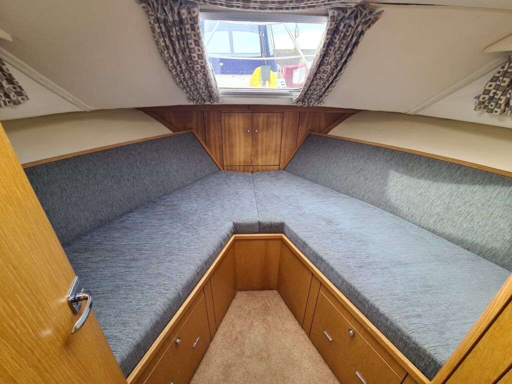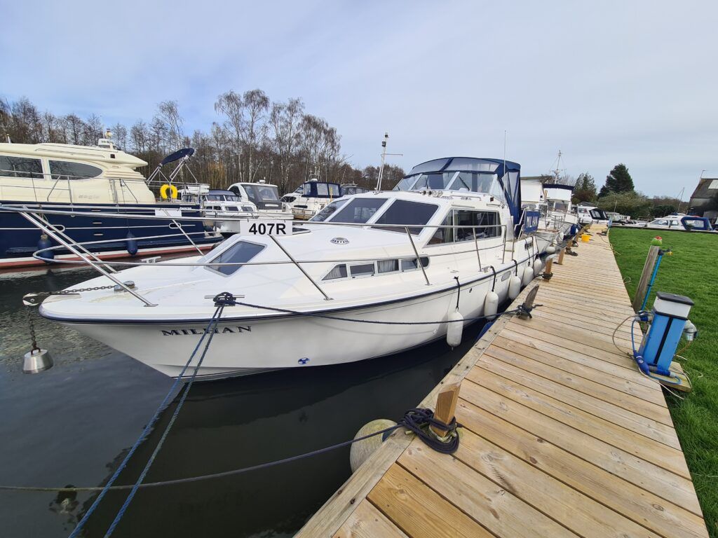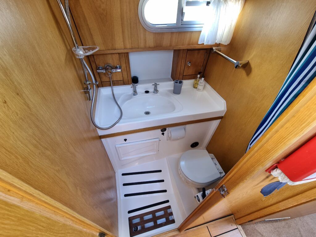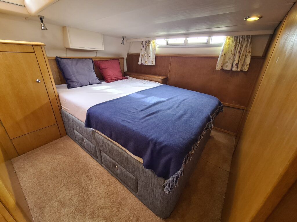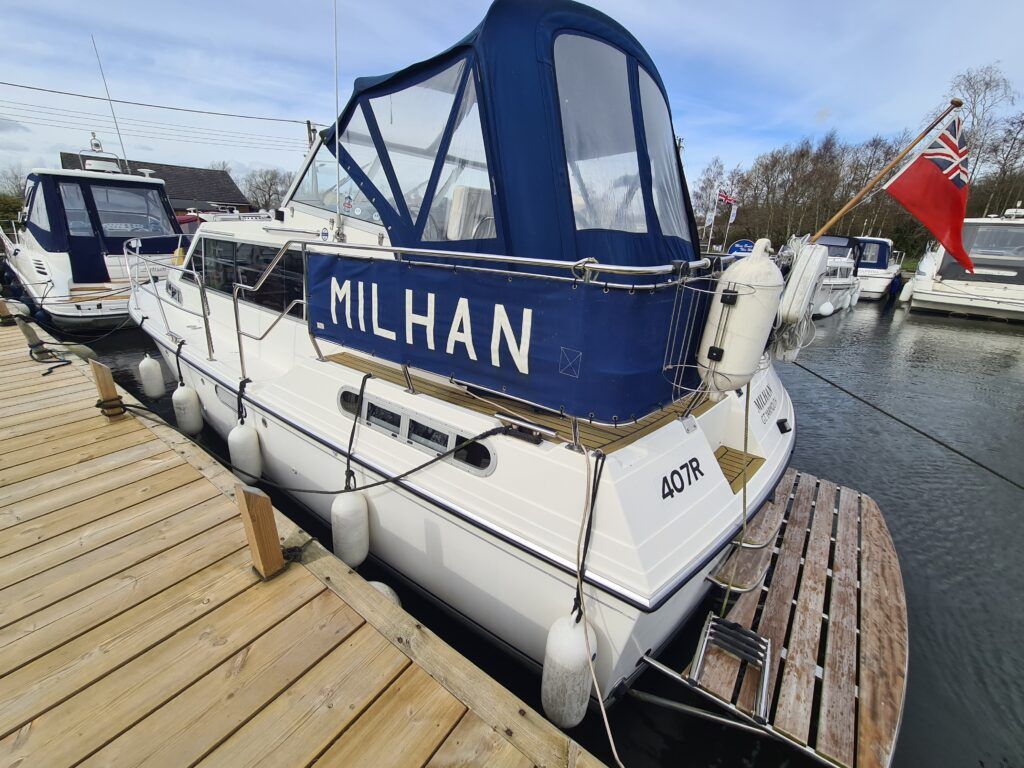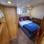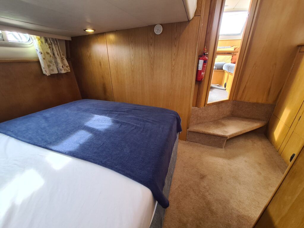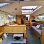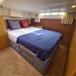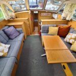 Aquafibre 32 – 2005 (Commissioned 2007) – 1 x Nanni 4.200HE (43hp). 6 berth accommodation over two cabins and saloon with 2 x toilet/shower compartments. Specification including bow thruster, windlass, warm air heating, shore power, battery charger, immersion heater, inverter, speed & depth log, synthetic teak decking to upper sundeck. The most recent Aquafibre 32 to be moulded and fitted out in oak to a high standard by her original owner. Presented in lovely condition. Viewing recommended.