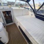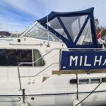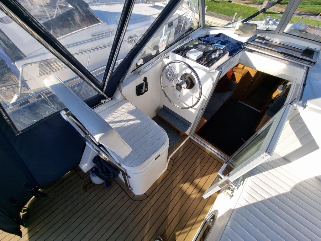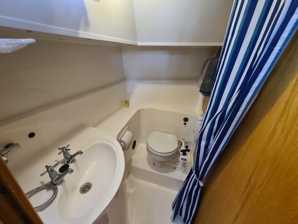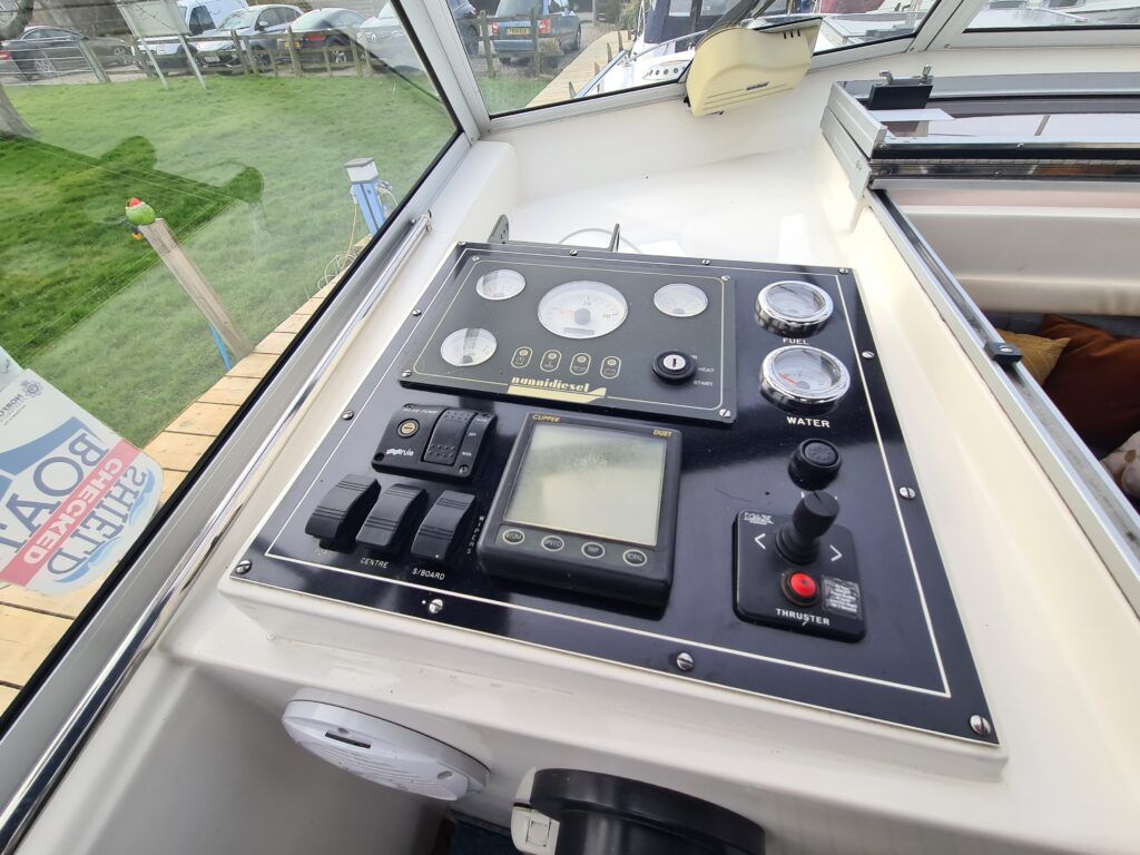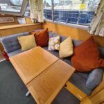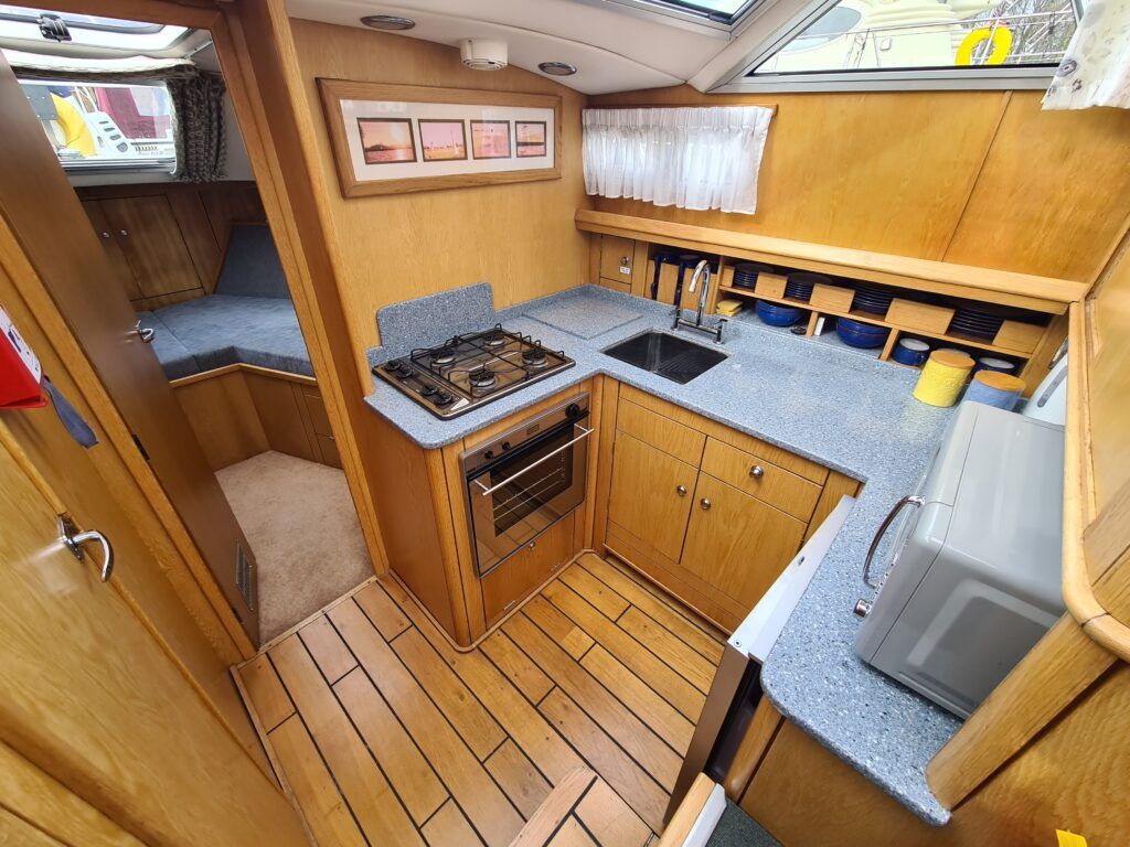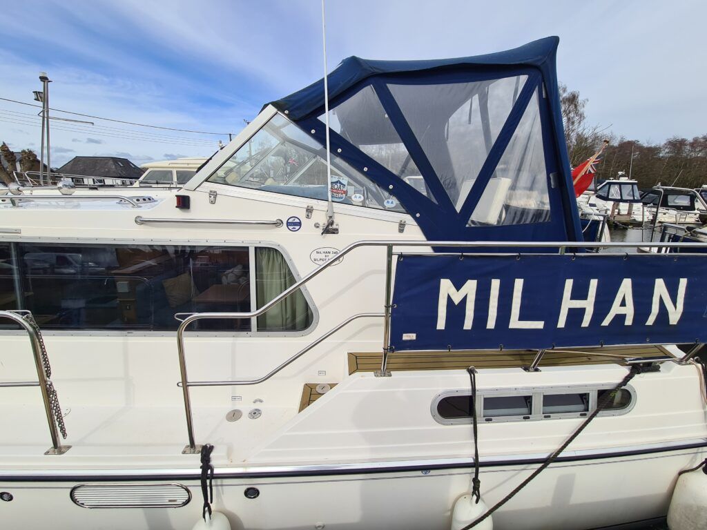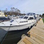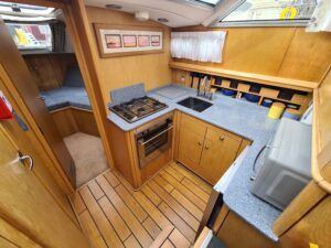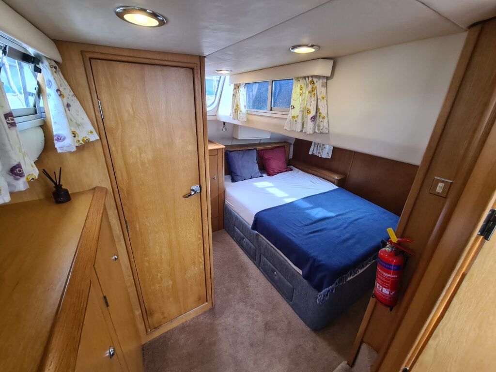 Aquafibre 32 – 2005 (Commissioned 2007) – 1 x Nanni 4.200HE (43hp). 6 berth accommodation over two cabins and saloon with 2 x toilet/shower compartments. Specification including bow thruster, windlass, warm air heating, shore power, battery charger, immersion heater, inverter, speed & depth log, synthetic teak decking to upper sundeck. The most recent Aquafibre 32 to be moulded and fitted out in oak to a high standard by her original owner. Presented in lovely condition. Viewing recommended.