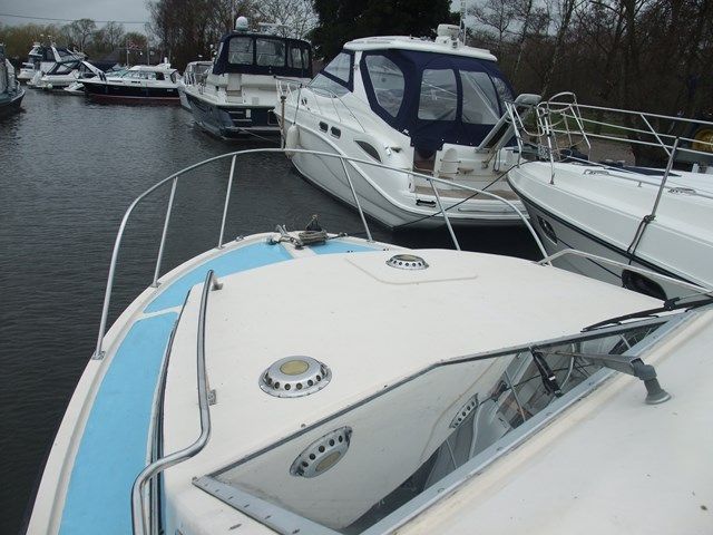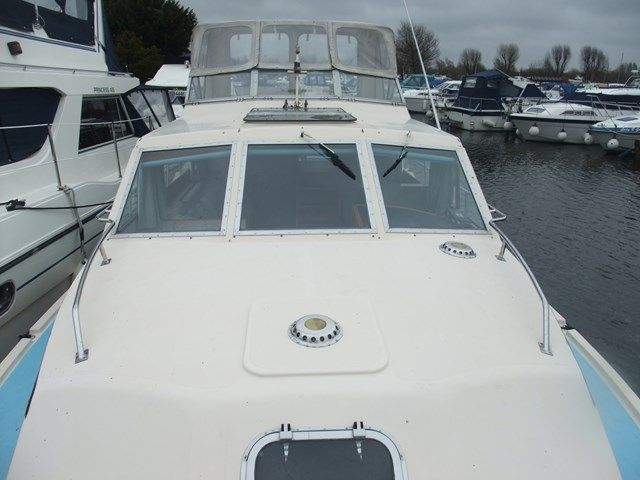 AQUAFIBRE 32 GRP – Circa 1987 1 x B.M.C. 1.5 Diesel Engine. 4 berths, two toilets with shower, full size cooker, new three way fridge, Webasto heating, battery charger. Boat Safety Certificate 2015. This boat is ideal for inland cruising. Ample room for cruising with the family and the dual helm position makes handling a dream