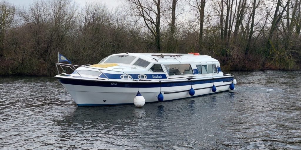 Aquafibre 35 Diamond – 1993 – Single Nanni N4.50 50hp diesel engine through a shaft. 4 berth accommodation with 2 toilet/shower compartments. Specification to include; bow-thruster, warm air heating, 240v Shore power & inverter, split sliding roof, full galley. “Gardenia” is a nice example of these very popular motor cruisers. With a very low air-draft, she is perfect for extended holidays on the Broads or any other inland waterways. New engine fitted 2011. BSC January 2027
