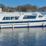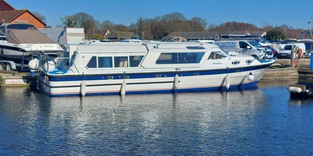 Aquafibre 35 Diamond – 1996 – Single Perkins MC42 diesel engine through a shaft. 4 berth accommodation with 2 toilet/shower compartments. Specification to include; bow-thruster, warm air heating, battery charger, inverter, chart plotter, speed and depth log, “Little Gem” is well specified and very tidy example of these popular motor cruisers. Fitted out by Brooms of Brundall, she would make a great boat on which to spend time on the water. Comes with an NYA three month warranty on engine and gearbox. More pictures to follow.
