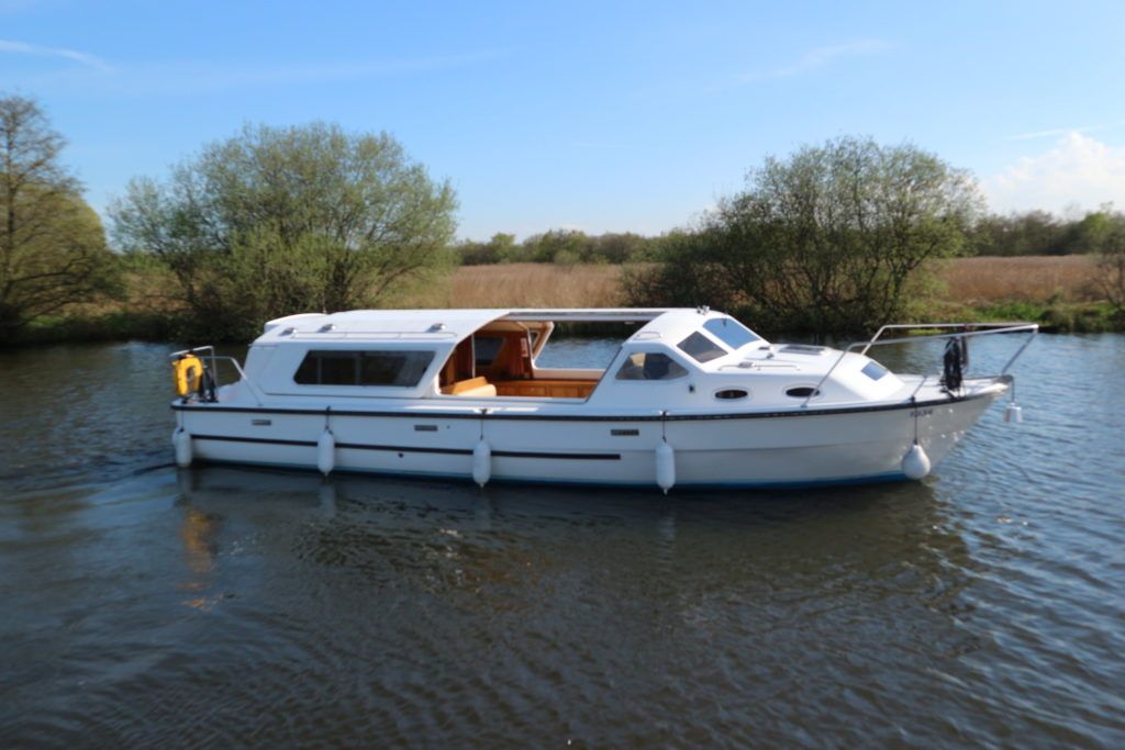 AQUAFIBRE 35 DIAMOND – 2009 – Nanni N4.60 60hp diesel engine. 4 berth accommodation, split sliding canopy, bowthruster , BSC April 2025, warm air heating , waeco fridge, thetford caprice cooker, immersion heater, shower, electric winch, a late example of these popular spacious cruisers with good specification and light interior, large open plan saloon and galley area ideal for cruising in comfort.