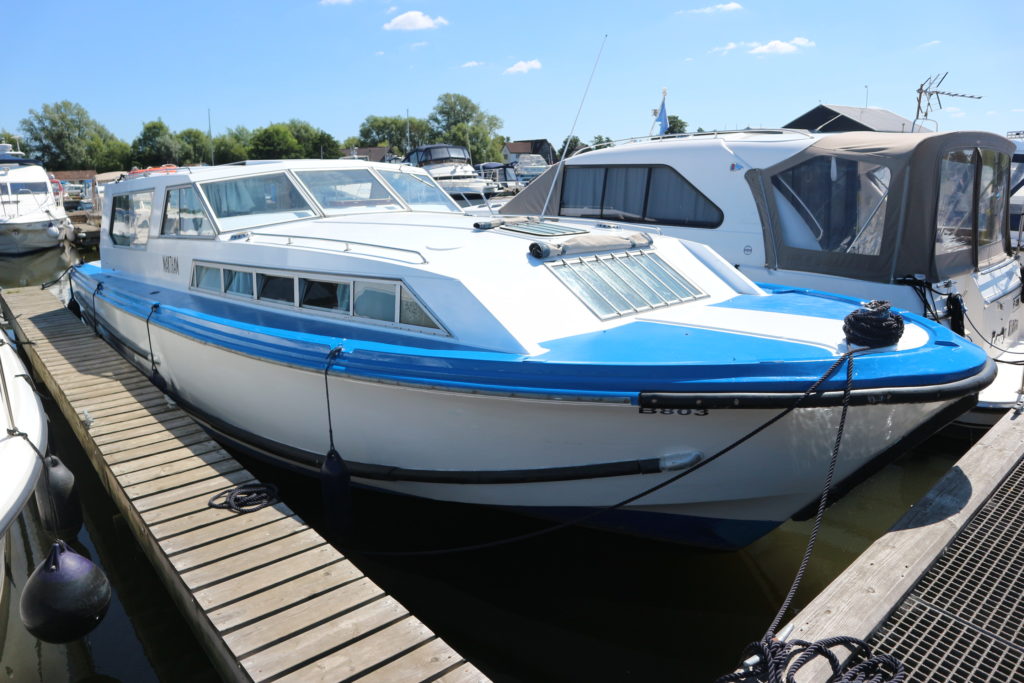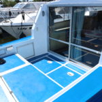 AQUAFIBRE 37 SEDAN – Circa 1984 – 1 x Nanni 4.190HE 42hp Diesel Engine. 6 berth accommodation in 2 cabins and saloon with 2 x toilet/shower compartments (1 en-suite). New bow thruster fitted 11/18, warm air heating, sliding sunroof over saloon, teak & holly flooring to saloon, engine service 11/18, BSC 07/23. Benefiting from recent refurbishment including new galley, this spacious Sedan offers comfortable internal living and a large cockpit ideal for fishing or relaxing.