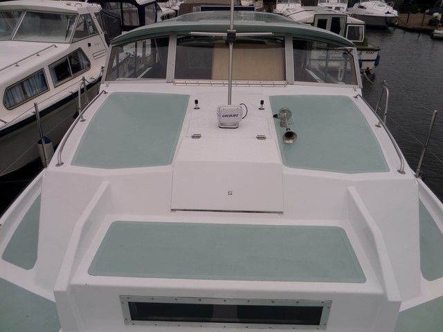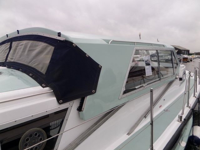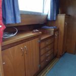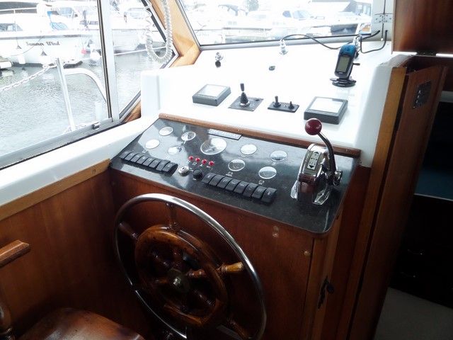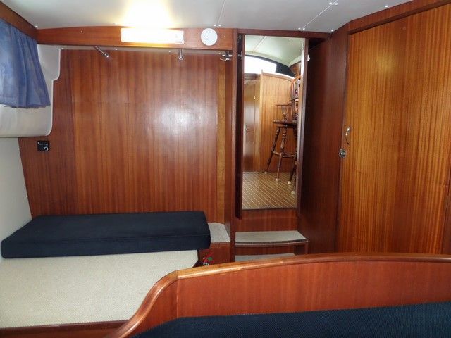AQUAFIBRE 38 CENTRE COCKPIT – 1986, 1 x Beta 43Hp diesel engine (new 2011), 6 berths in 2 cabins, 2 x toilets & 1 x shower, Boat Safety Certificate until: 2018. Spec inc: holding tanks, inverter, battery charger, shore power, hot air heating system, bow thruster, electric slide back canopy, teak & holly flooring throughout and much more. She has had a large amount of money, time and care spent on her, you won’t find another like it!