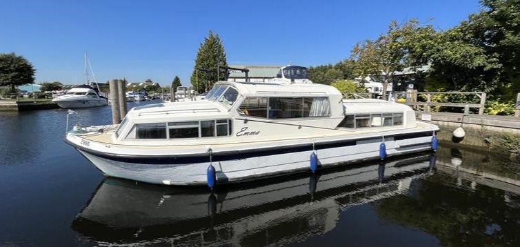 Aquafibre 38 Entrepreneur – 1987 – Powered by a Nanni N4.50 diesel engine (New 2020) – 6 berth accommodation with two toilets and showers. Specification to include; warm air heating, battery charger, 240v shore power, inverter, holding tank, full sliding wheelhouse with folding windscreens, fully equipped galley and more!  A spacious family cruiser with an economical diesel engine and a low air draft, allowing passage through the lower bridges. An ideal liveaboard option with a large island double berth and a warm inviting interior.