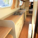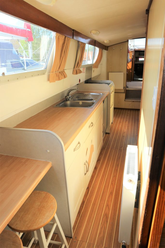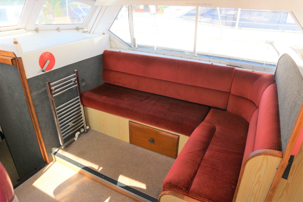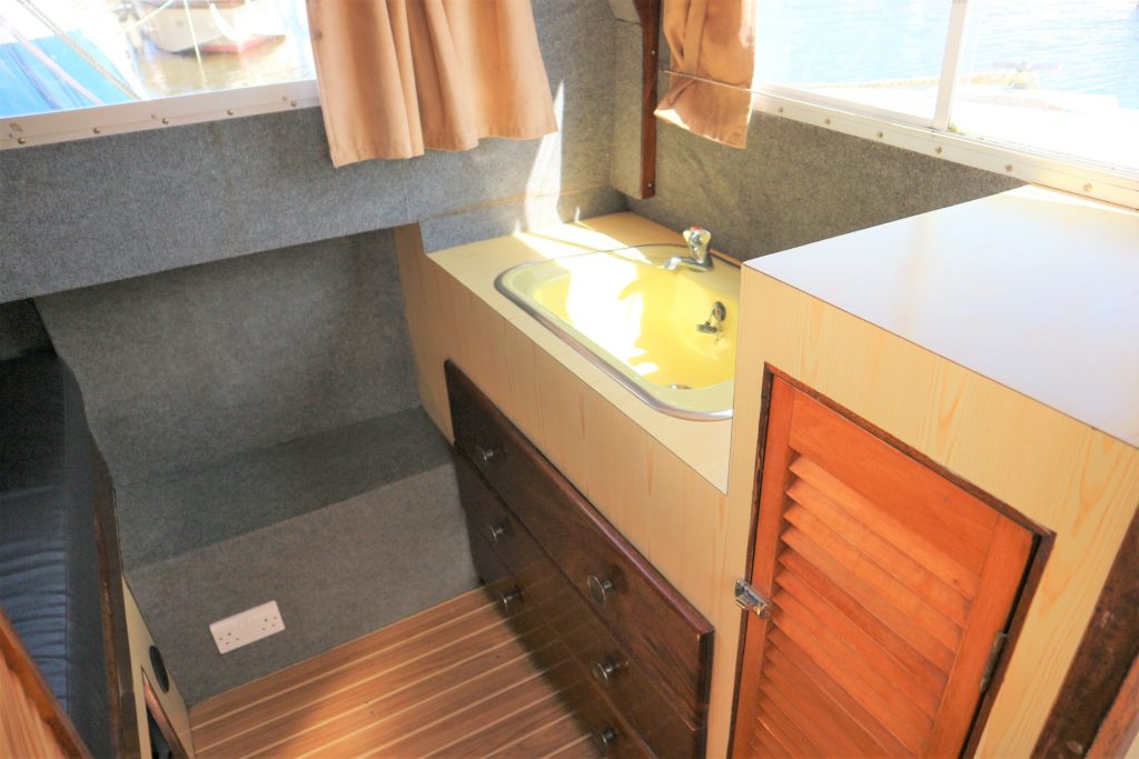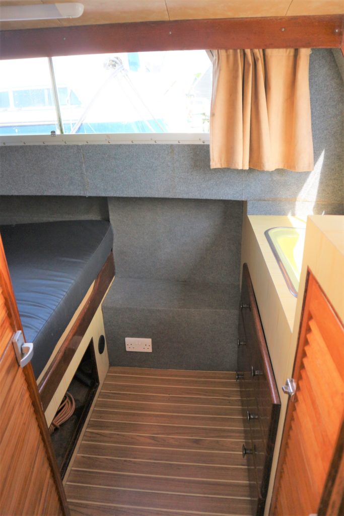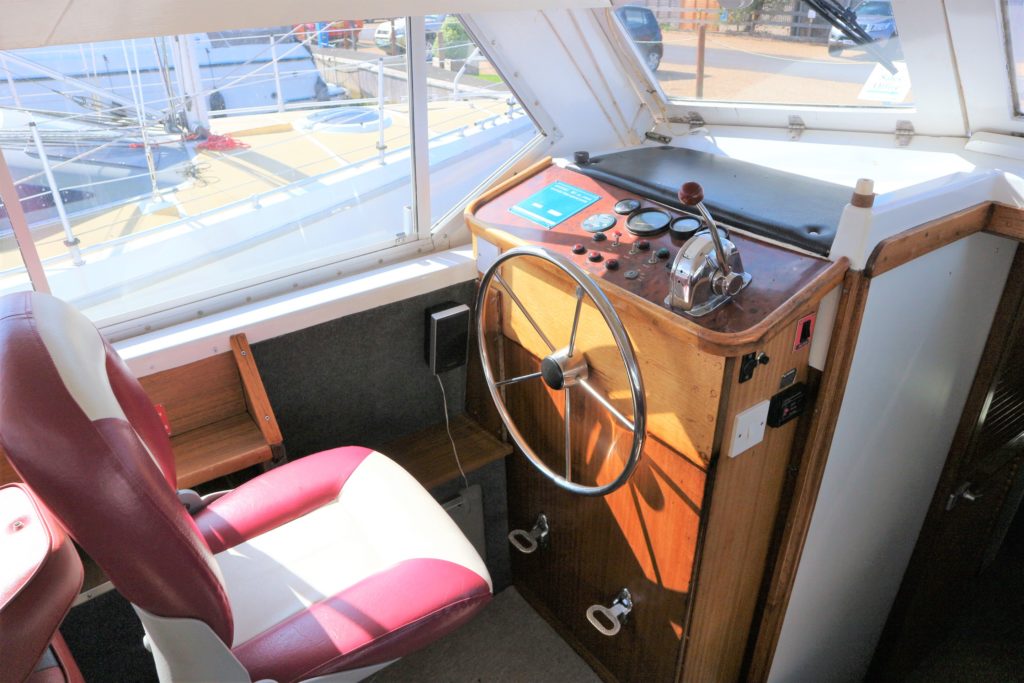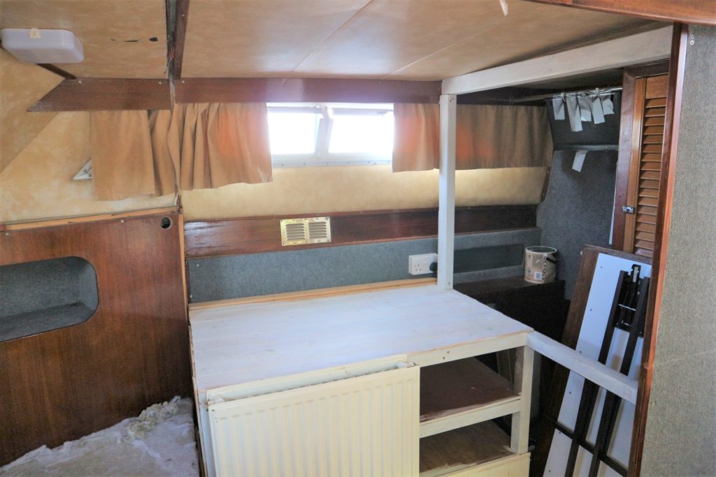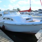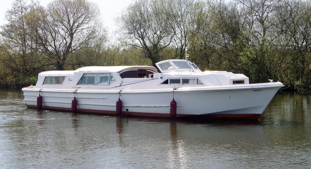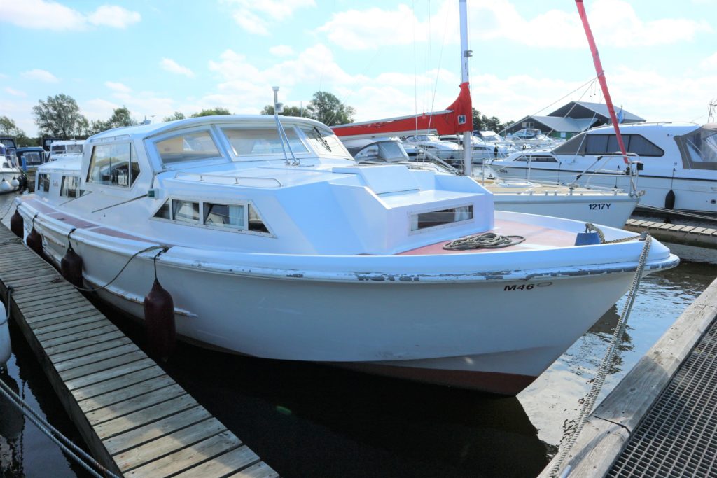 AQUAFIBRE 42 – Built circa 1979 – 1 x Nanni 4220 50Hp diesel engine. 6 berths in 3 cabins, 2 toilet/shower compartments. Advertised as a project boat with spec including Bow thruster (not currently working), shore power, battery charger, inverter, immersion heater, winch operated sliding canopy. BSC 05/22. A spacious Broads cruiser with the benefit of 3 separate cabins and a large galley. A Project Boat, in need of some cosmetic attention and internal re-fitting.