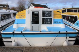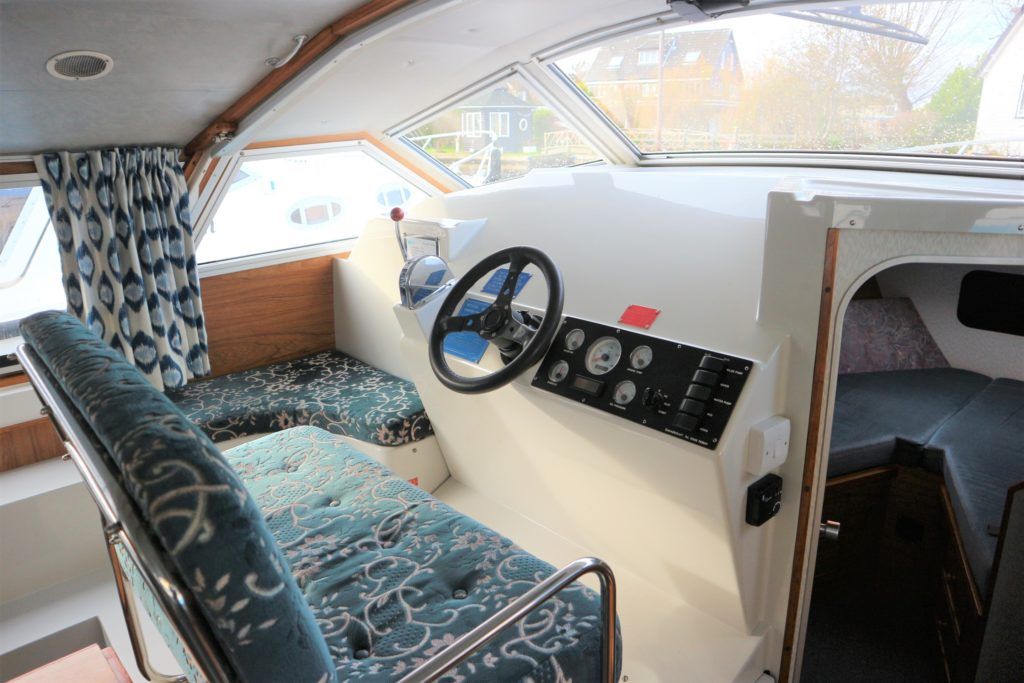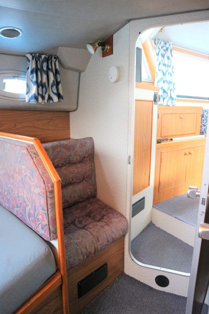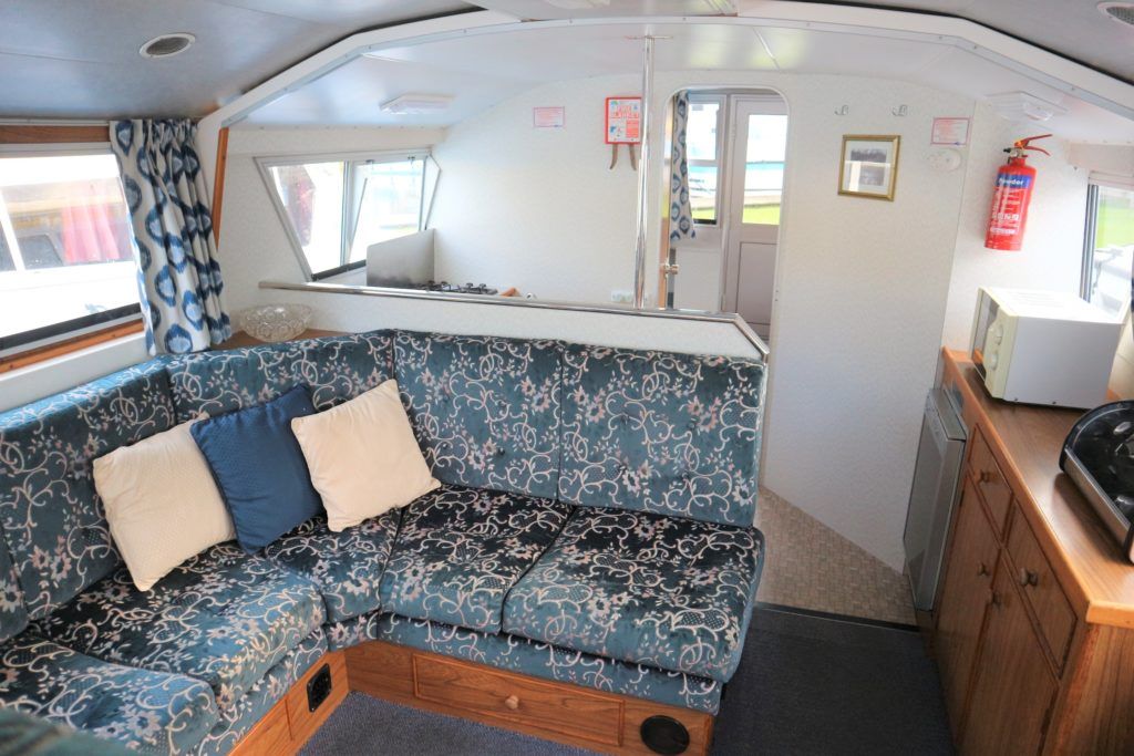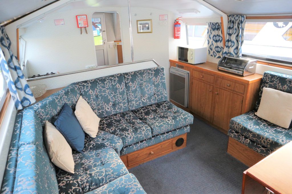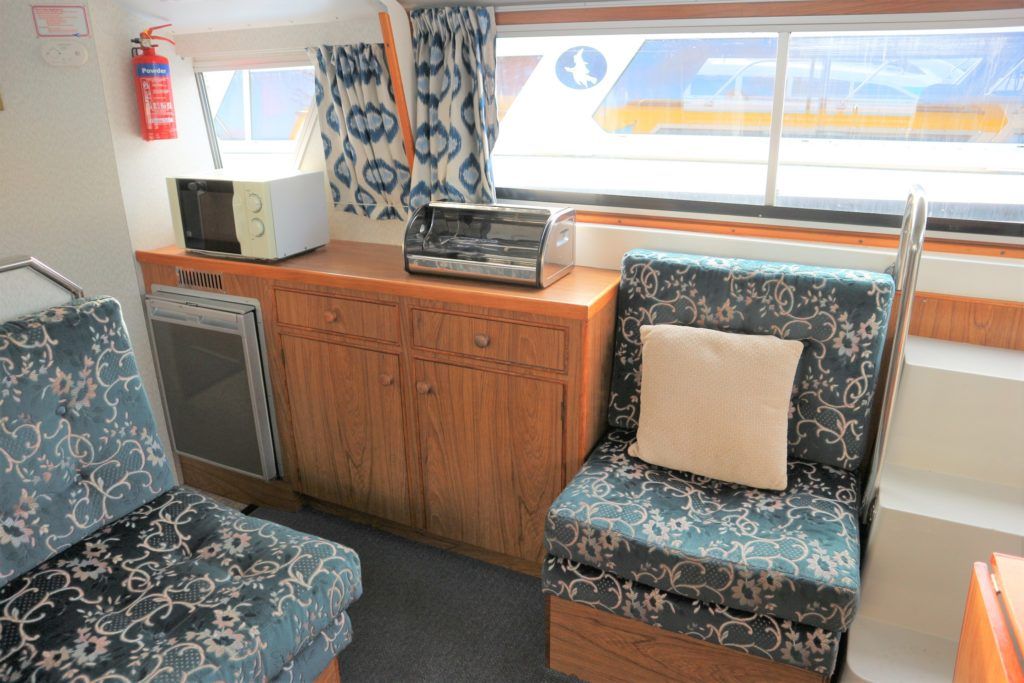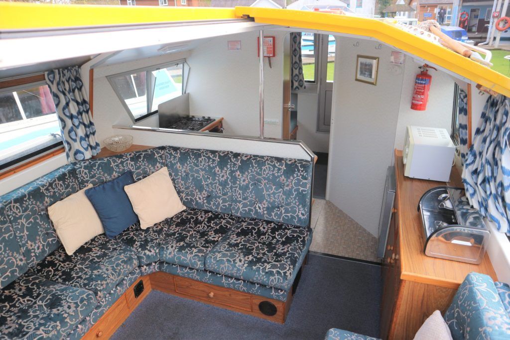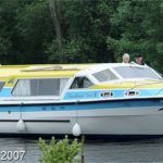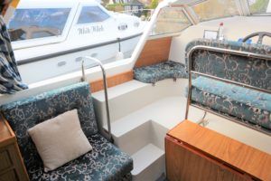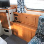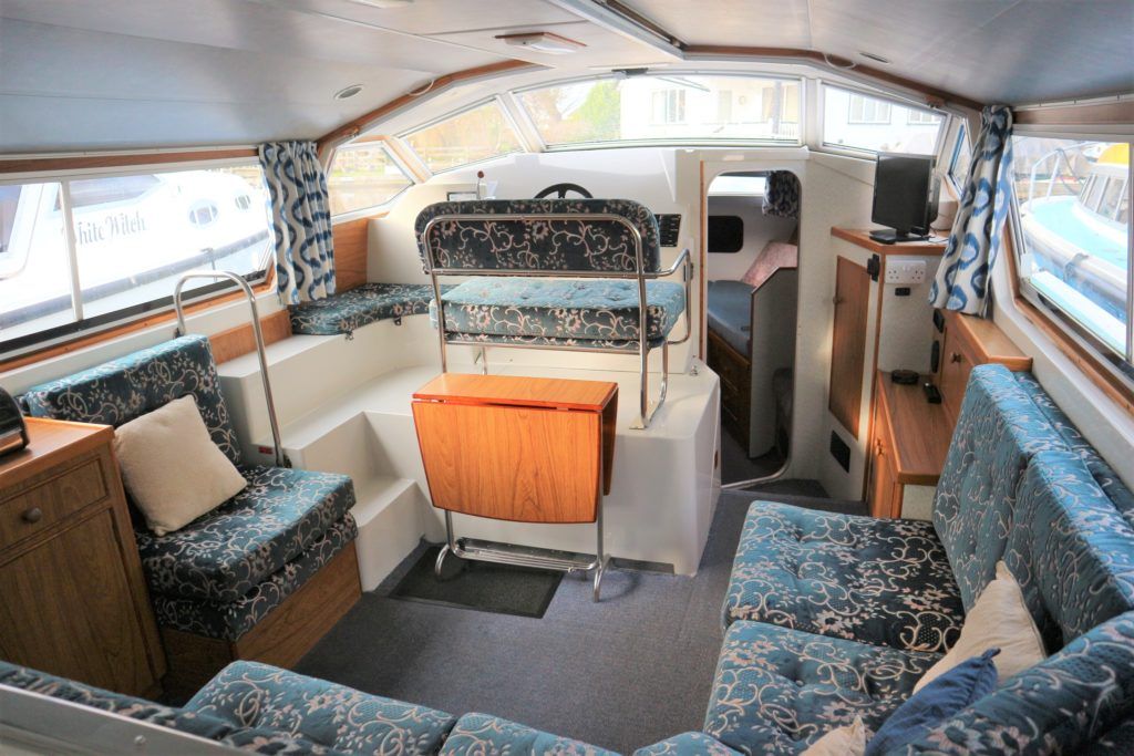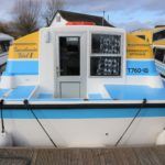 AQUAFIBRE DIAMOND 35 – 1993 – Powered by a Nanni N4.50 50hp diesel engine. Built by Brister Craft. 4 berth accommodation over 2 en-suite cabins both with toilet & shower. Galley with 4 burner hob, oven, grill, fridge & microwave. Specification including warm air heating, inverter, split sliding roofs over saloon. A spacious and comfortable family layout offering a great social saloon space & benefiting from a low air draft. A great opportunity to acquire a well cared for ex hire cruiser.