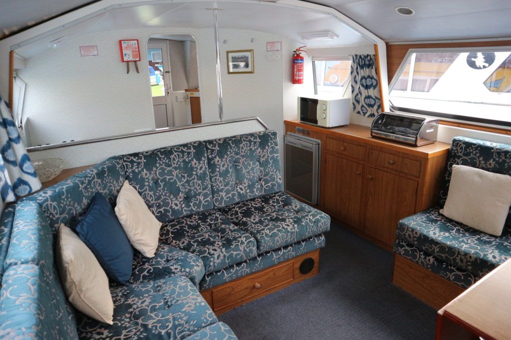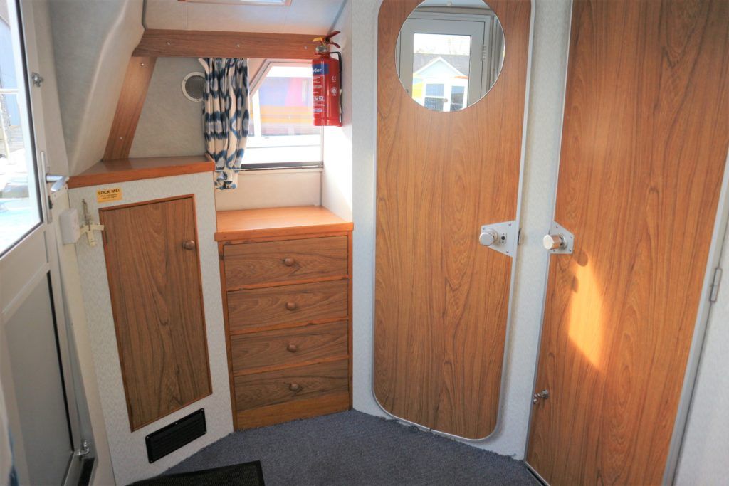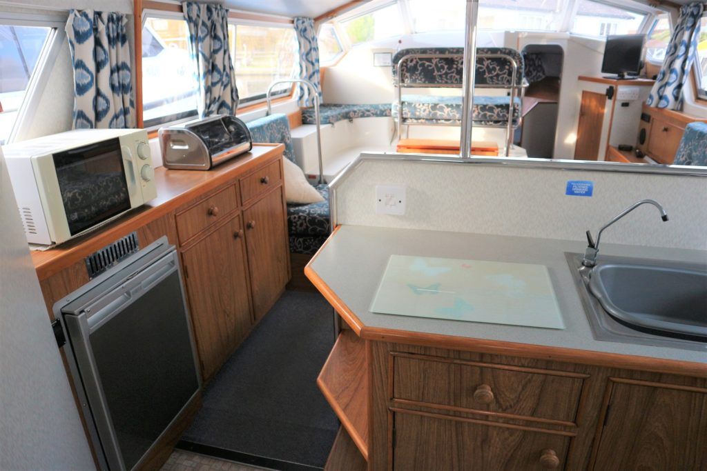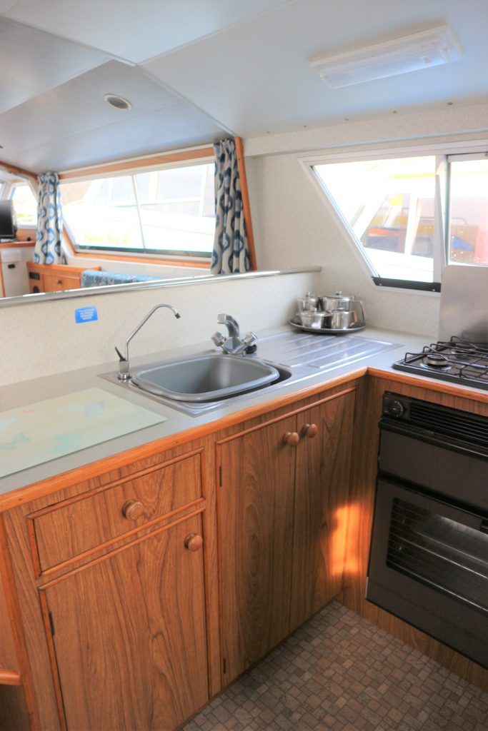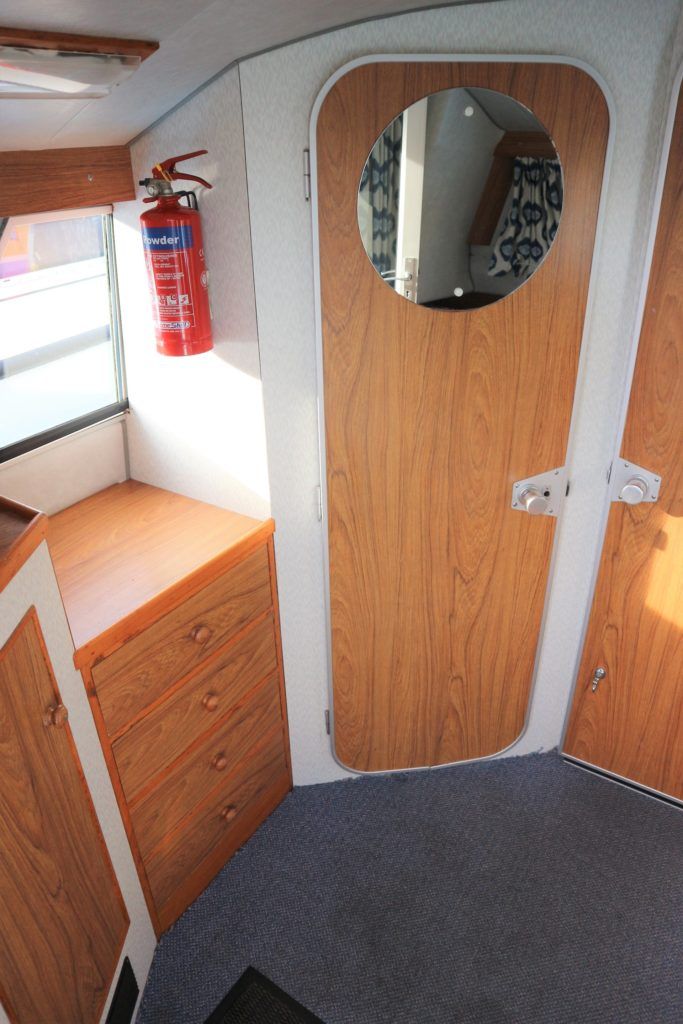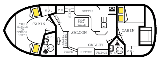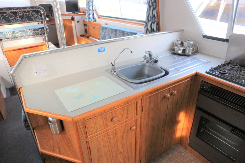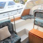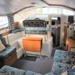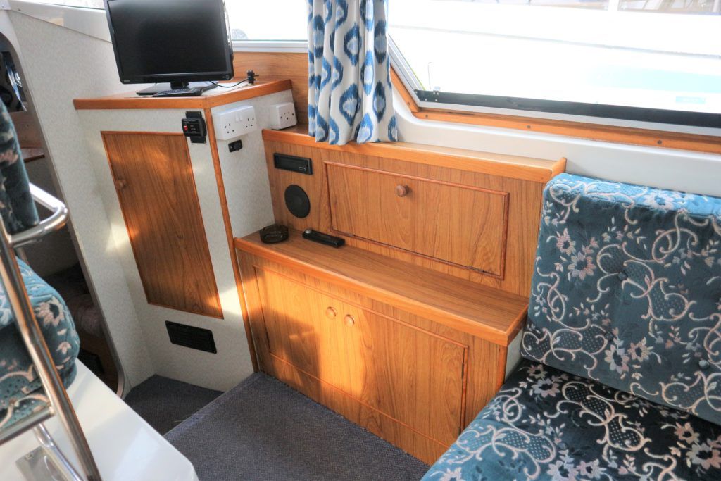 AQUAFIBRE DIAMOND 35 – 1993 – Powered by a Nanni N4.50 50hp diesel engine. Built by Brister Craft. 4 berth accommodation over 2 en-suite cabins both with toilet & shower. Galley with 4 burner hob, oven, grill, fridge & microwave. Specification including warm air heating, inverter, split sliding roofs over saloon. A spacious and comfortable family layout offering a great social saloon space & benefiting from a low air draft. A great opportunity to acquire a well cared for ex hire cruiser.