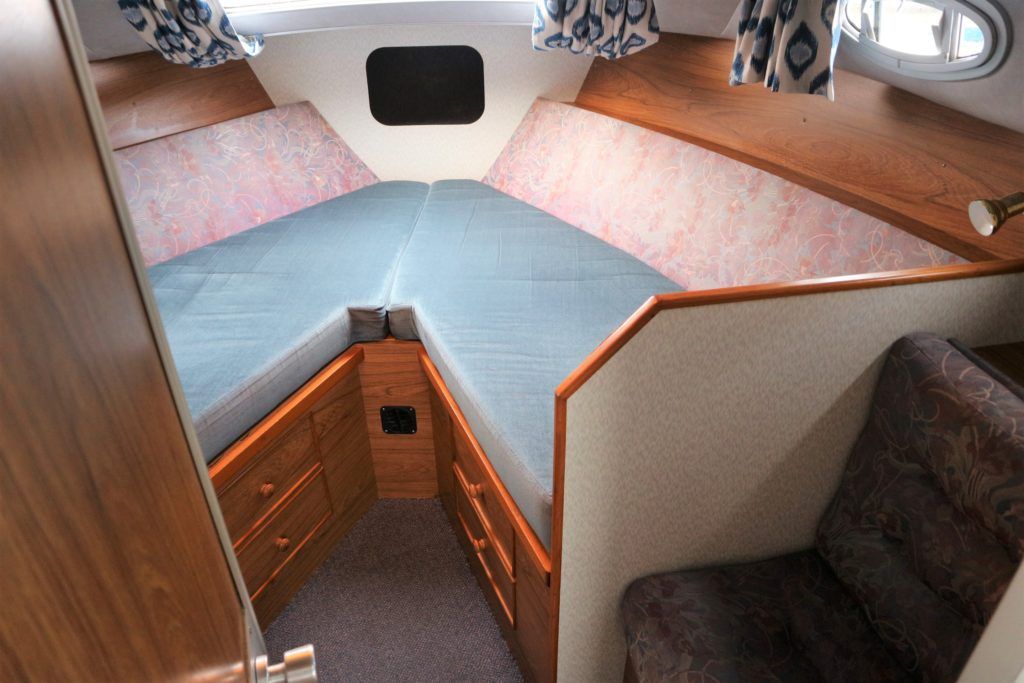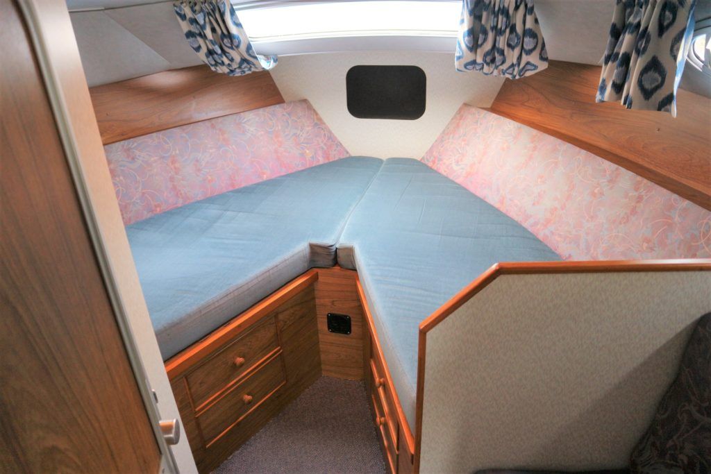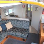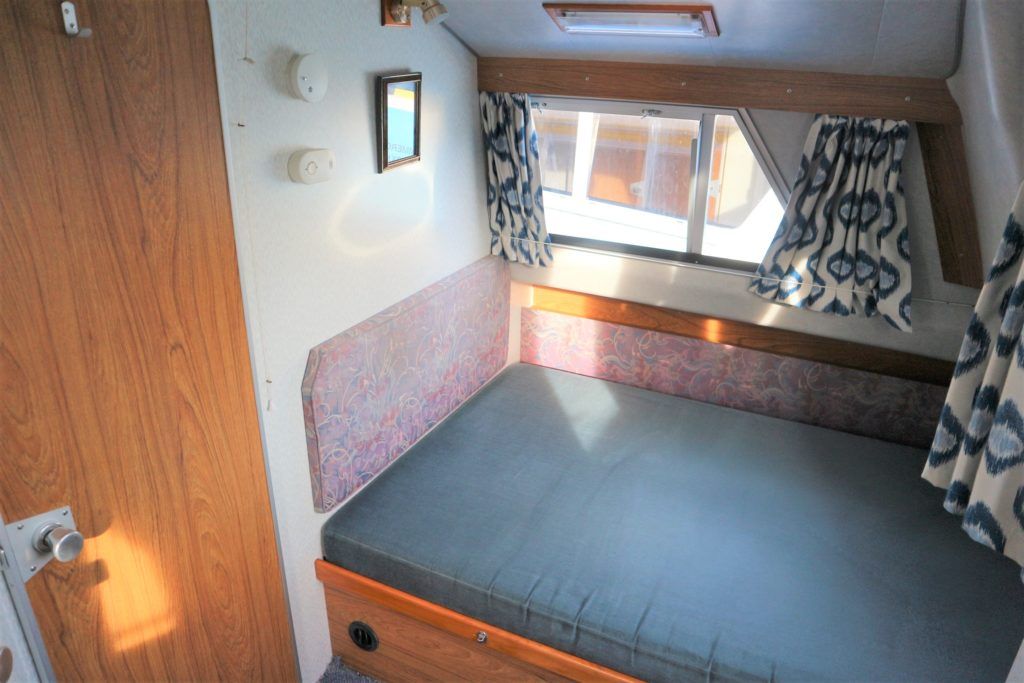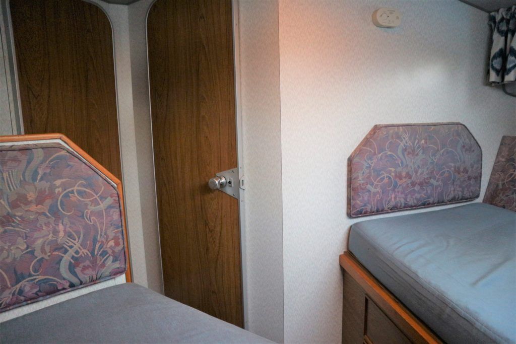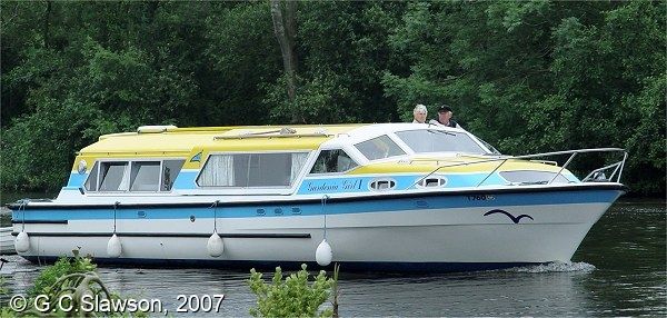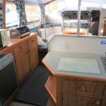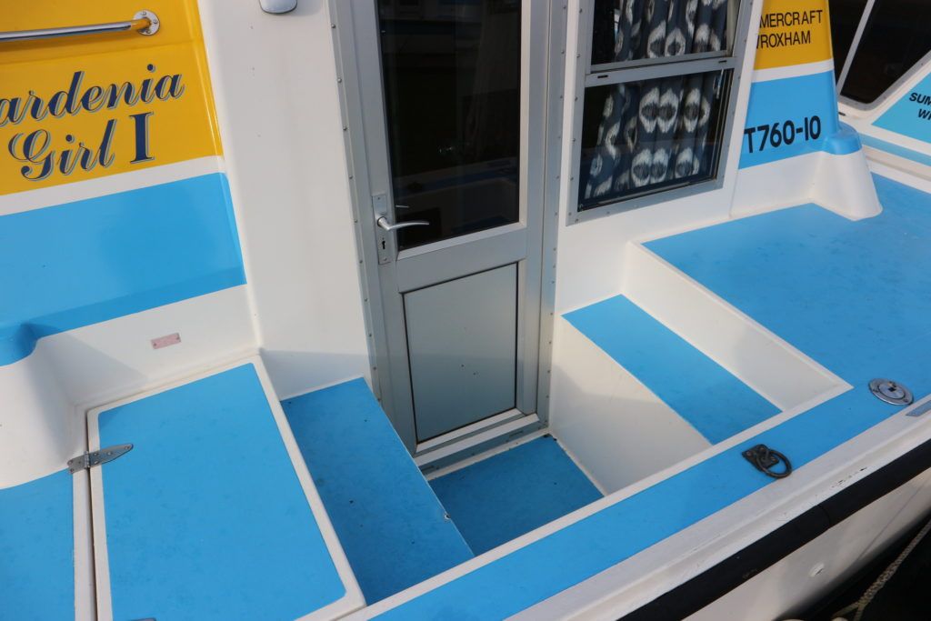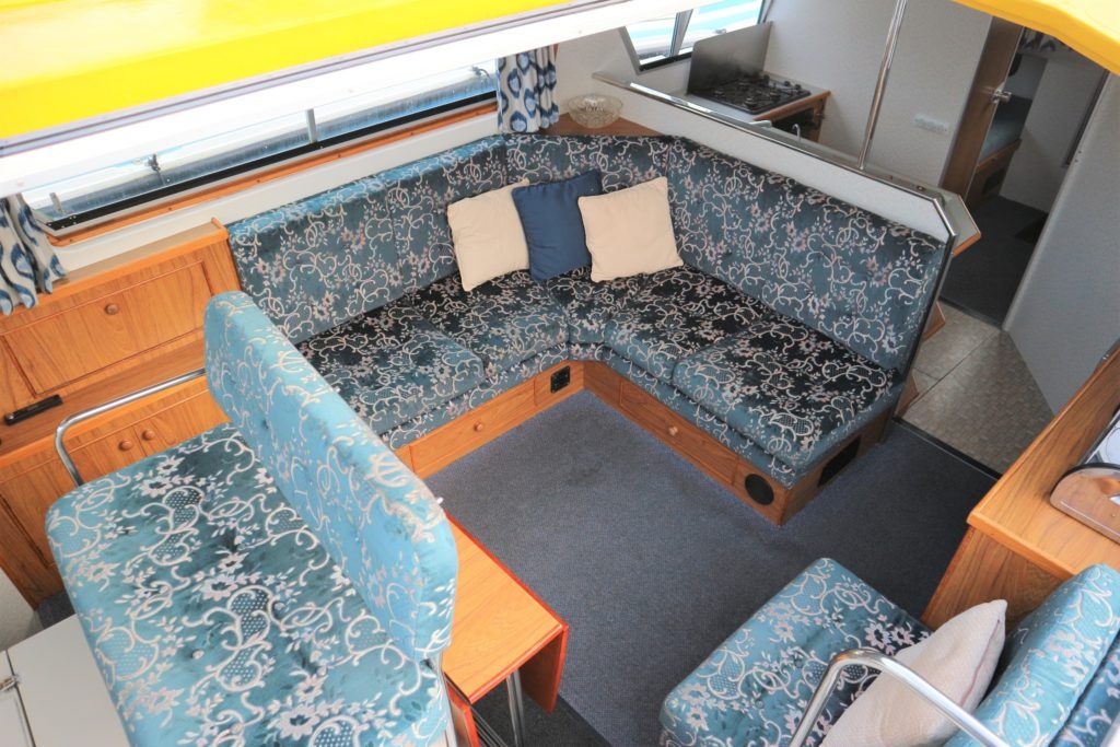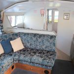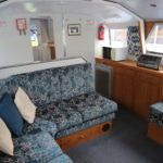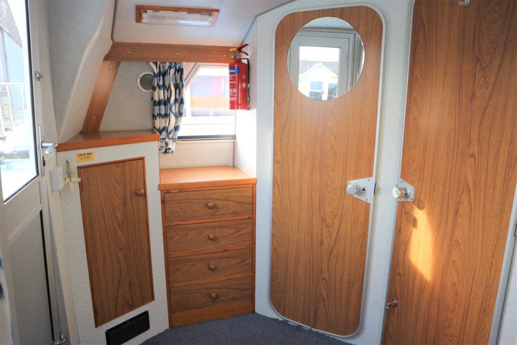 AQUAFIBRE DIAMOND 35 – 1993 – Powered by a Nanni N4.50 50hp diesel engine. Built by Brister Craft. 4 berth accommodation over 2 en-suite cabins both with toilet & shower. Galley with 4 burner hob, oven, grill, fridge & microwave. Specification including warm air heating, inverter, split sliding roofs over saloon. A spacious and comfortable family layout offering a great social saloon space & benefiting from a low air draft. A great opportunity to acquire a well cared for ex hire cruiser.