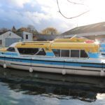 AQUAFIBRE DIAMOND 35 – 1994 – Powered by a Nanni 4.190HE 43hp diesel engine. Built by Brister Craft. 4 berth accommodation over 2 en-suite cabins both with toilet & shower. Galley with 4 burner hob, oven, grill, fridge & microwave. Specification including warm air heating, inverter, split sliding roofs over saloon. A spacious and comfortable family layout offering a great social saloon space & benefiting from a low air draft.