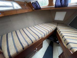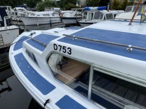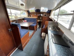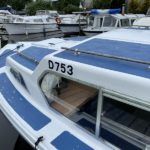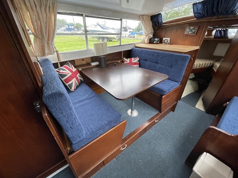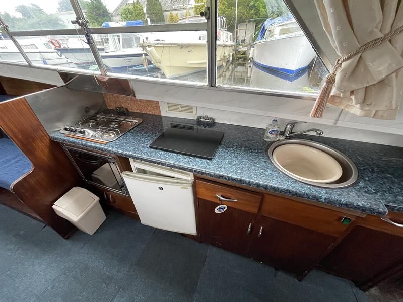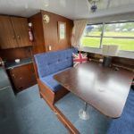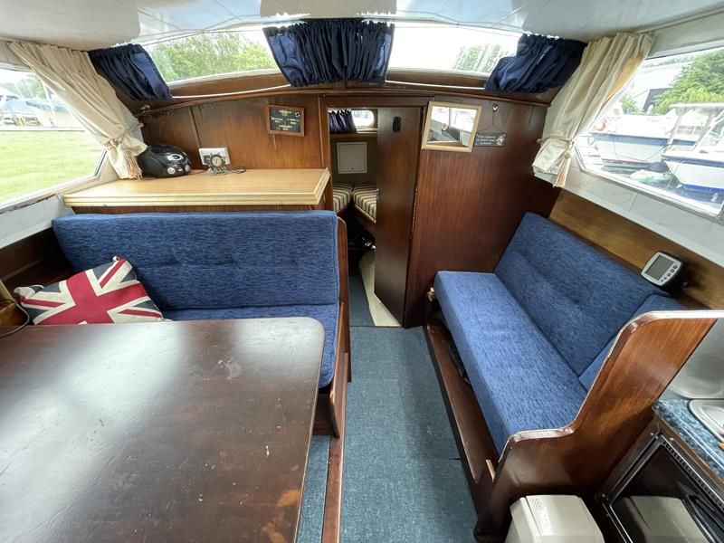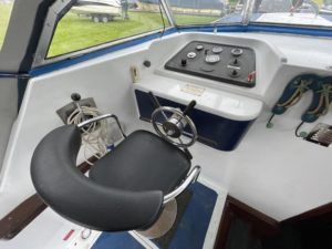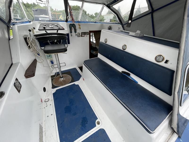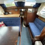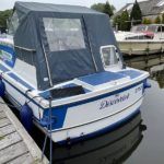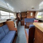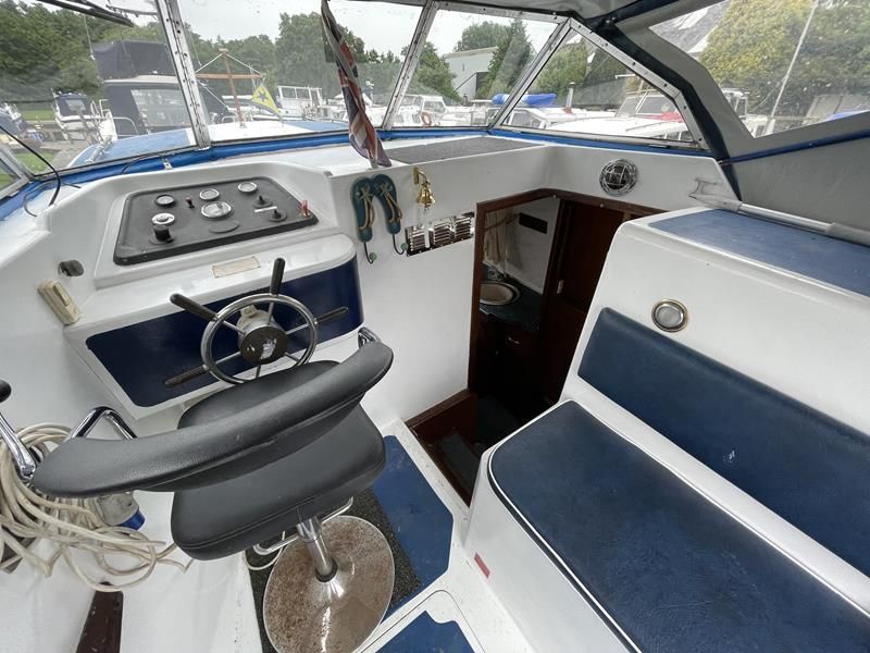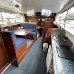 AQUAFIBRE OCEAN 30 – Powered by a single Perkins 4107 diesel through a shaft – 5 berth accommodation one toilet and one shower – Specification to include; Shore power supply, battery charger, 240v sockets, diesel warm air heating, calorifier, immersion, hob, oven and grill. Engine service and antifoul 2021. BSC 07/25. Single diesel economy, shaft set up and low air draft making this cruiser ideal for extended inland cruising!