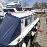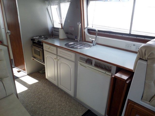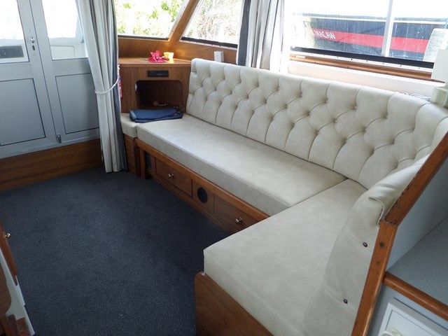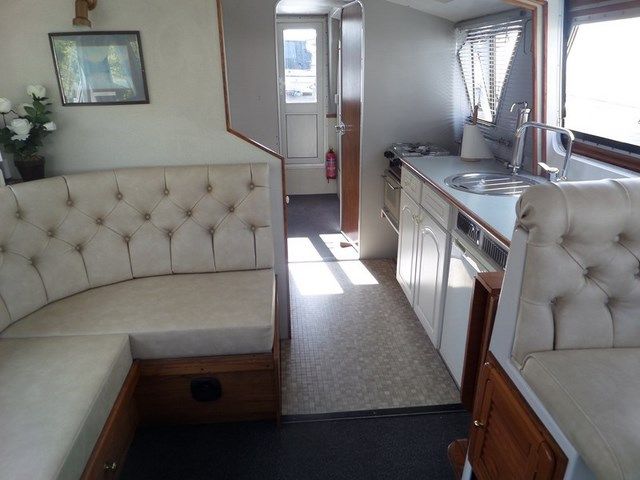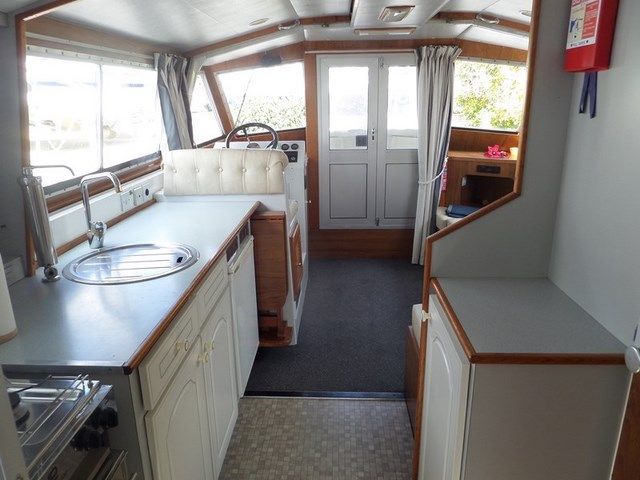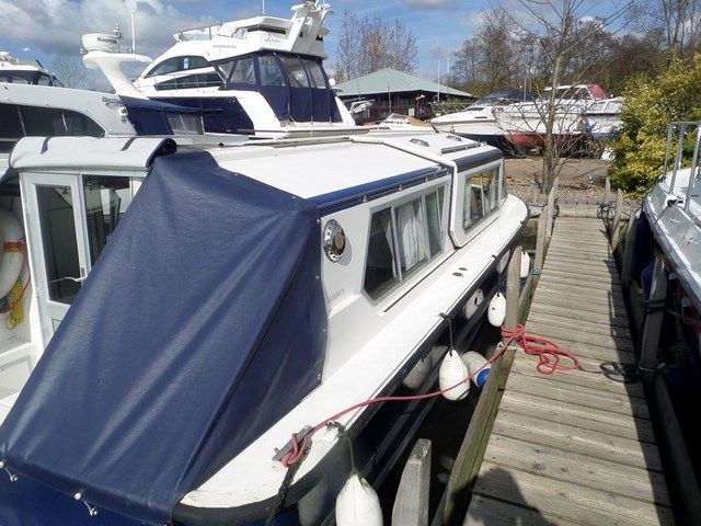 AQUAFIBRE OPAL – Built circa 1991, 4 berths (double in aft cabin and convertible saloon sofa), Nanni diesel, hydraulic drive, bow thruster, warm air heating, boat safety certificate and more. This is a good clean example of these comfortable Broads cruisers. Low airdraft, well equipped, the perfect river boat! NYA STOCK – fully prepared by our Service Centre.
