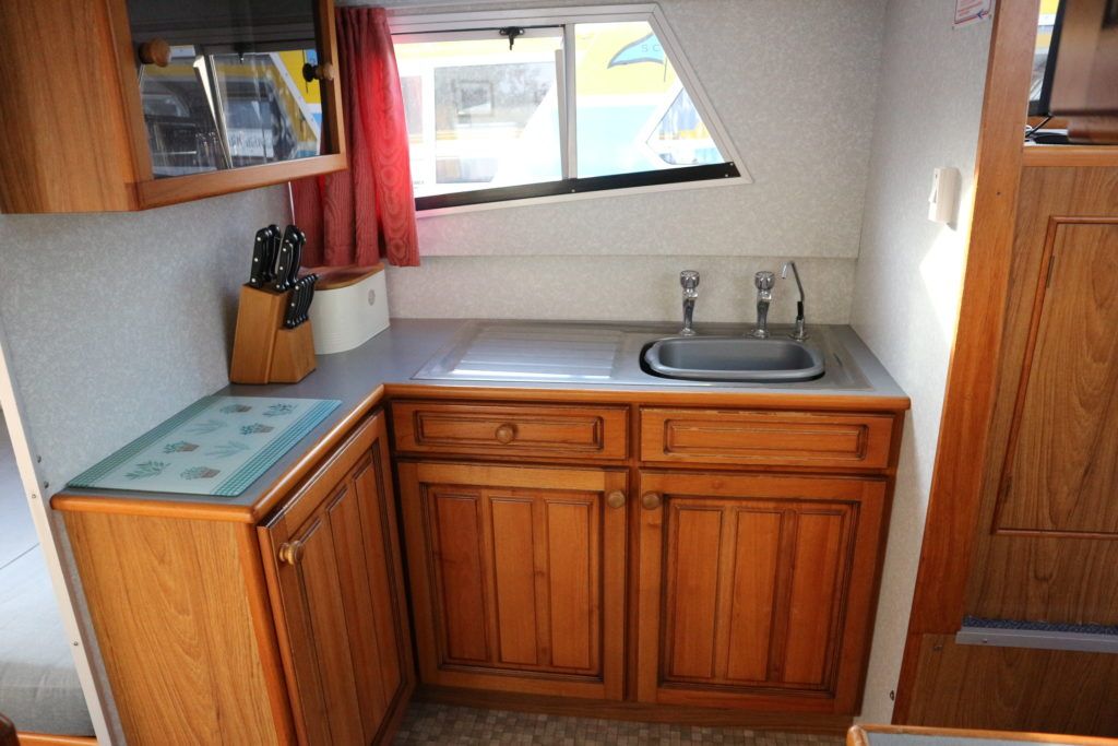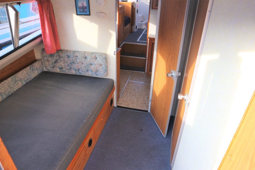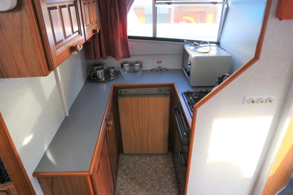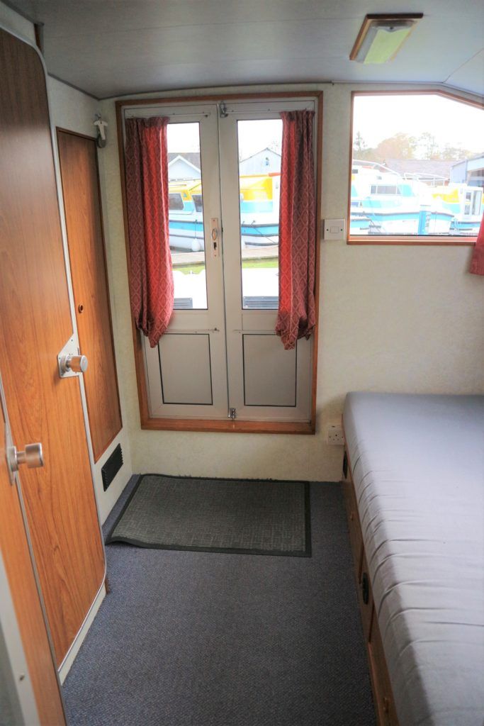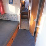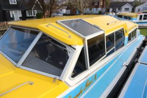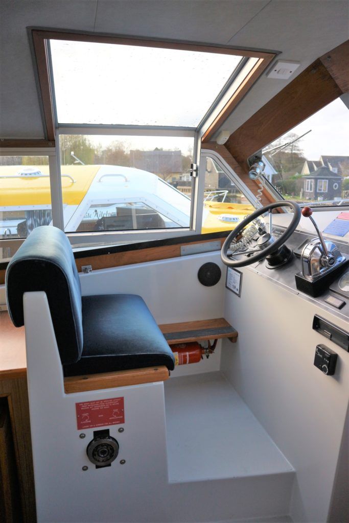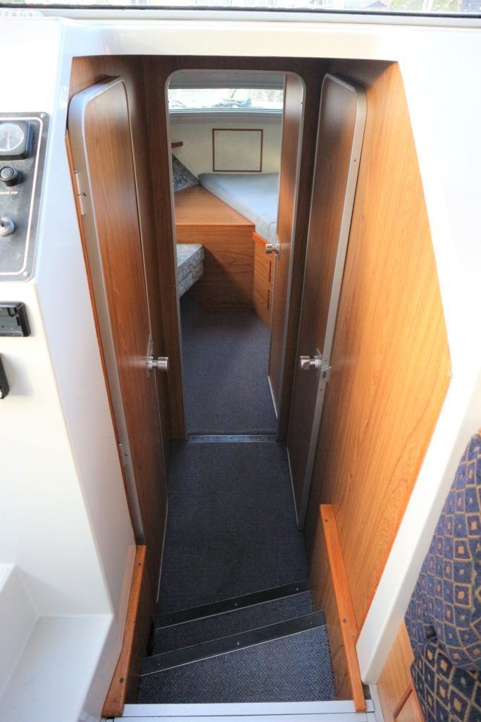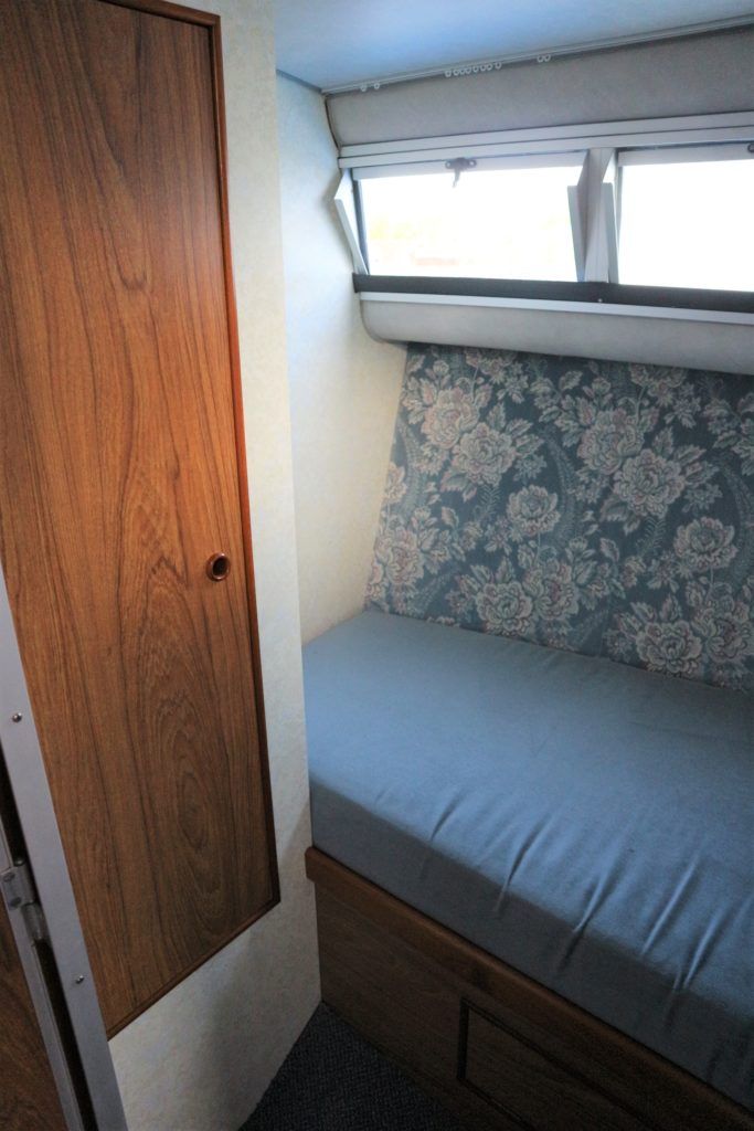 AQUAFIBRE PEARL 38 – 1996 – Powered by a Nanni 6.280HE 59hp diesel engine. Built by Brister craft. 5 berth accommodation over 3 cabins and saloon with 2 x toilet/shower compartments, one being en-suite. Full width fitted galley with 4 burner hob, oven, grill, fridge & microwave. Specification including Bow thruster, shore power, battery charger, inverter, depth log, warm air heating, winch operated sliding canopy with side door, folding screens. A well fitted family cruiser with a spacious raised central saloon and large galley, ideal for extended cruising. A great opportunity to acquire a well cared for ex hire cruiser.