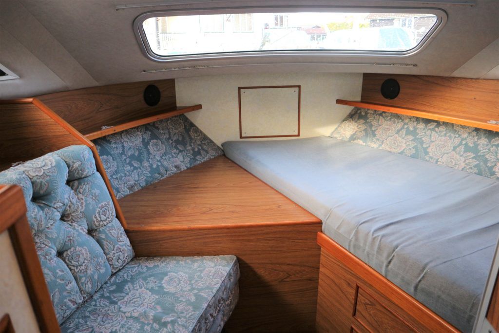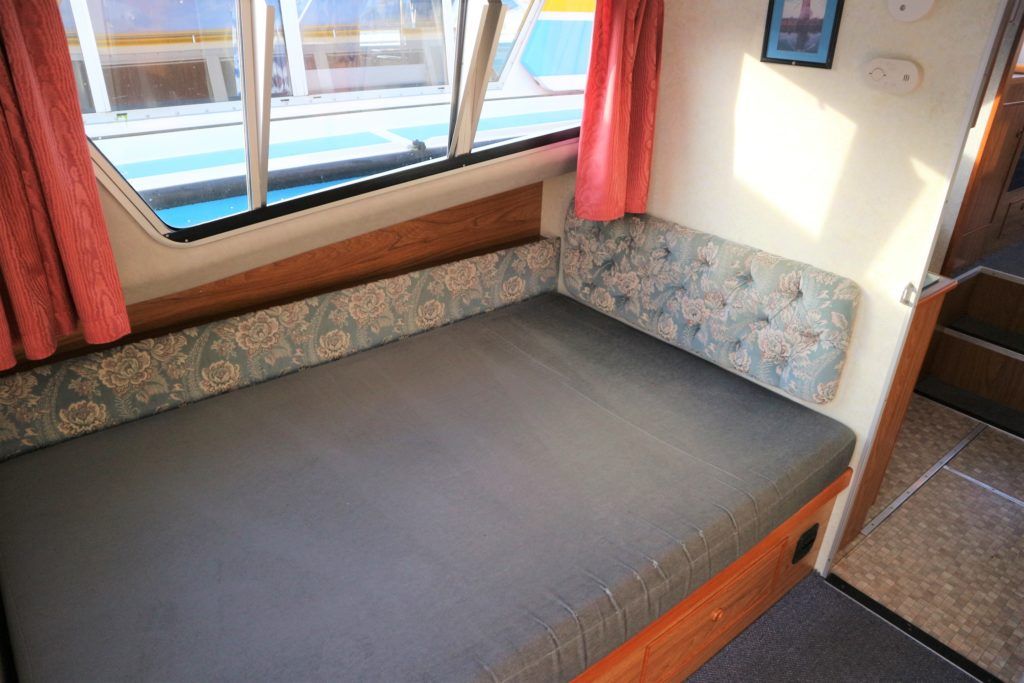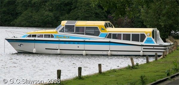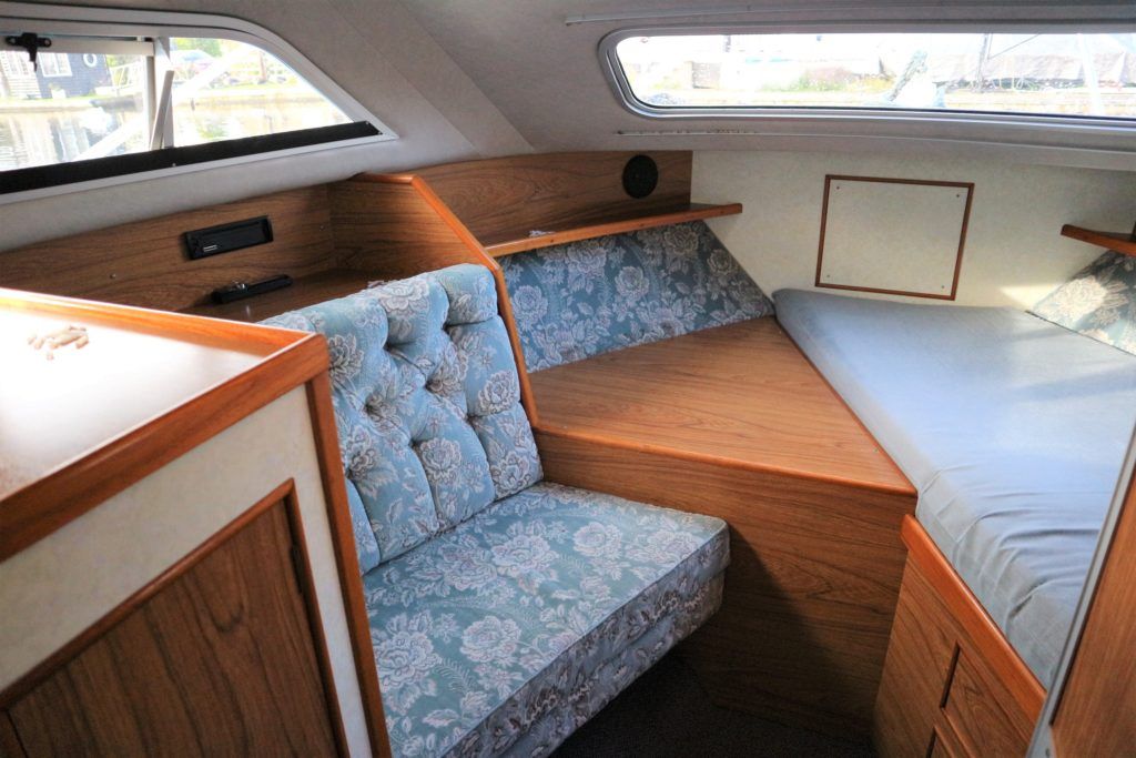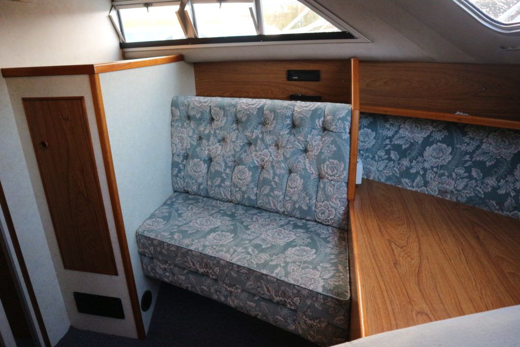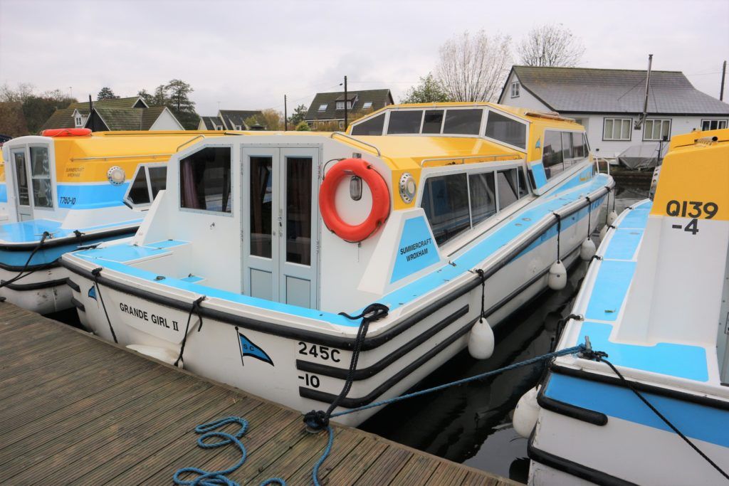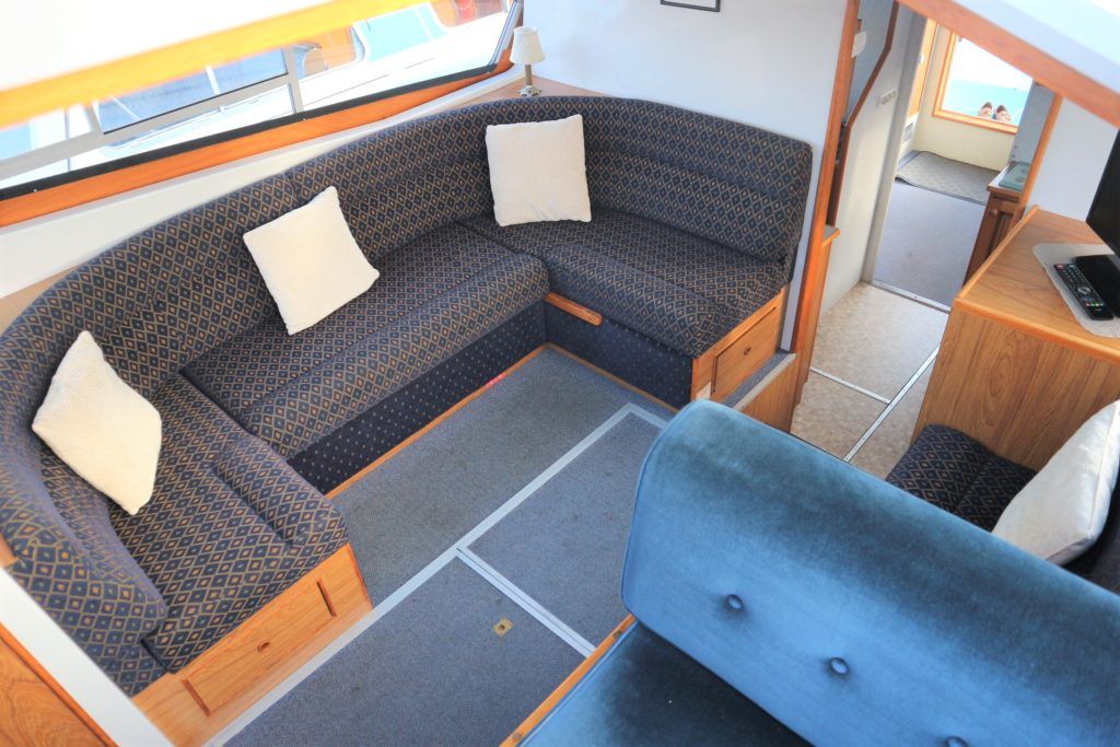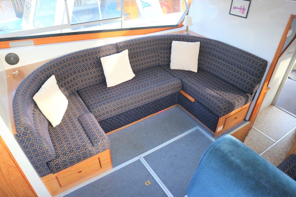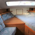 AQUAFIBRE PEARL 38 – 1996 – Powered by a Nanni 6.280HE 59hp diesel engine. Built by Brister craft. 5 berth accommodation over 3 cabins and saloon with 2 x toilet/shower compartments, one being en-suite. Full width fitted galley with 4 burner hob, oven, grill, fridge & microwave. Specification including Bow thruster, shore power, battery charger, inverter, depth log, warm air heating, winch operated sliding canopy with side door, folding screens. A well fitted family cruiser with a spacious raised central saloon and large galley, ideal for extended cruising. A great opportunity to acquire a well cared for ex hire cruiser.