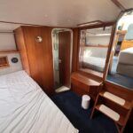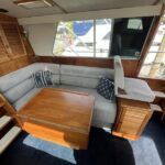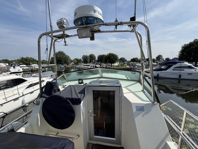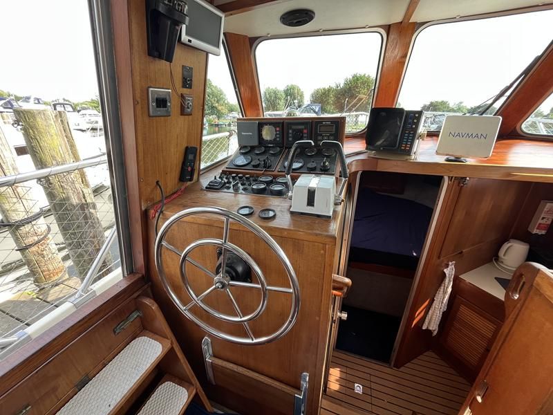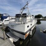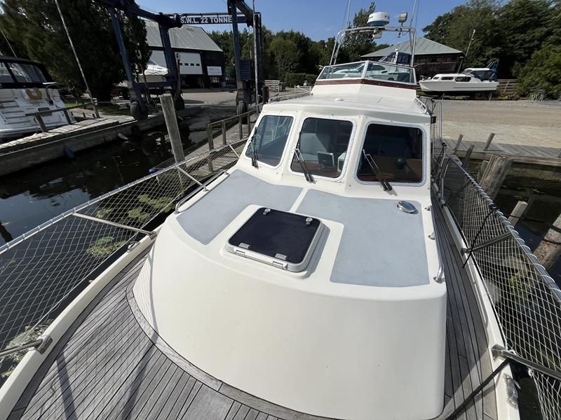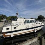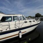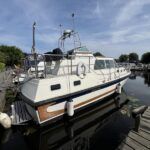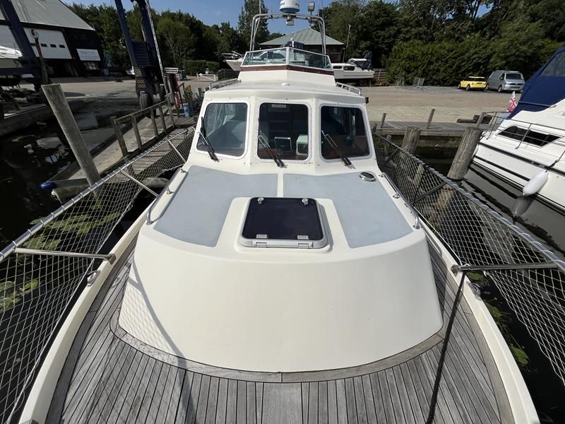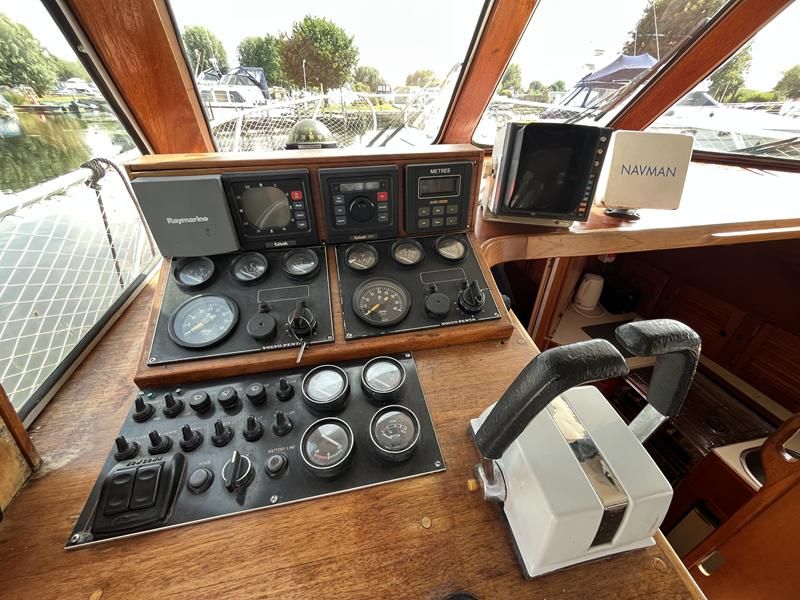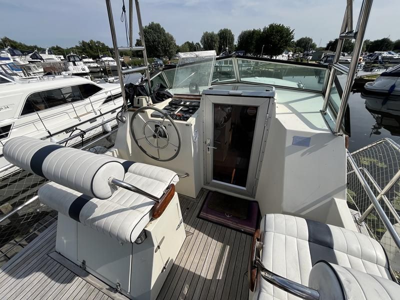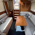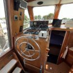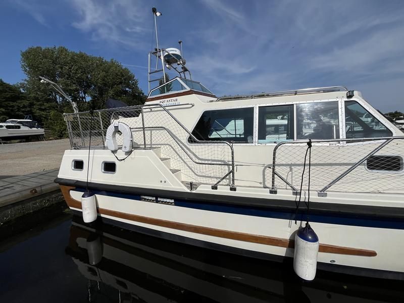 Aquastar Oceanranger 33 Aft Cabin – 1989 – 2x Volvo TAMD41B 200hp diesel engines. Up to 6 berth accommodation with two toilets and showers. Specification to include; Warm air heating, shore power, battery charger, immersion/calorifier, holding tank, trim tabs, windlass, folding arch and more. A solid and sturdy offshore cruiser, offering a generous layout with two spacious cabins and dual helms for comfortable, all weather cruising.