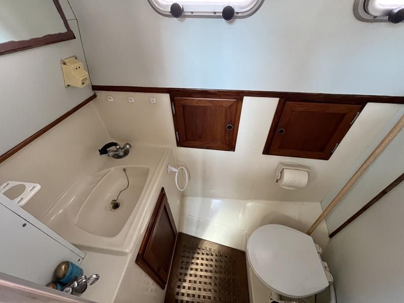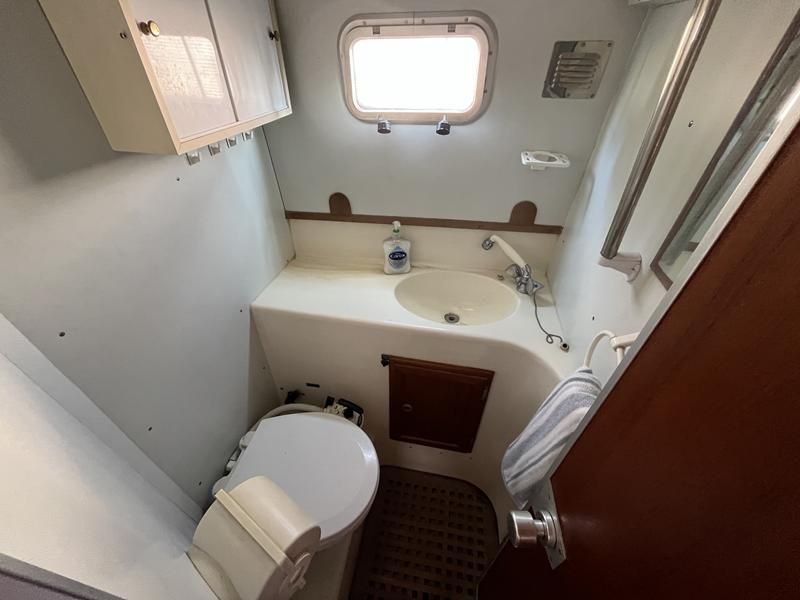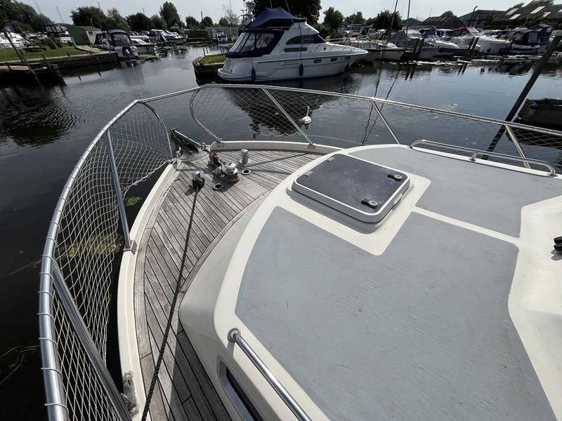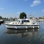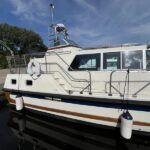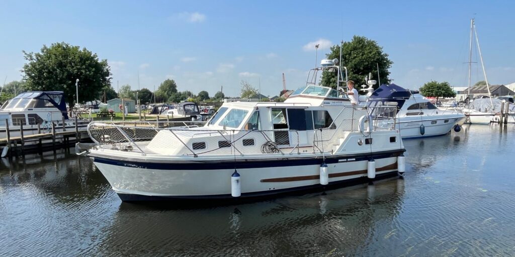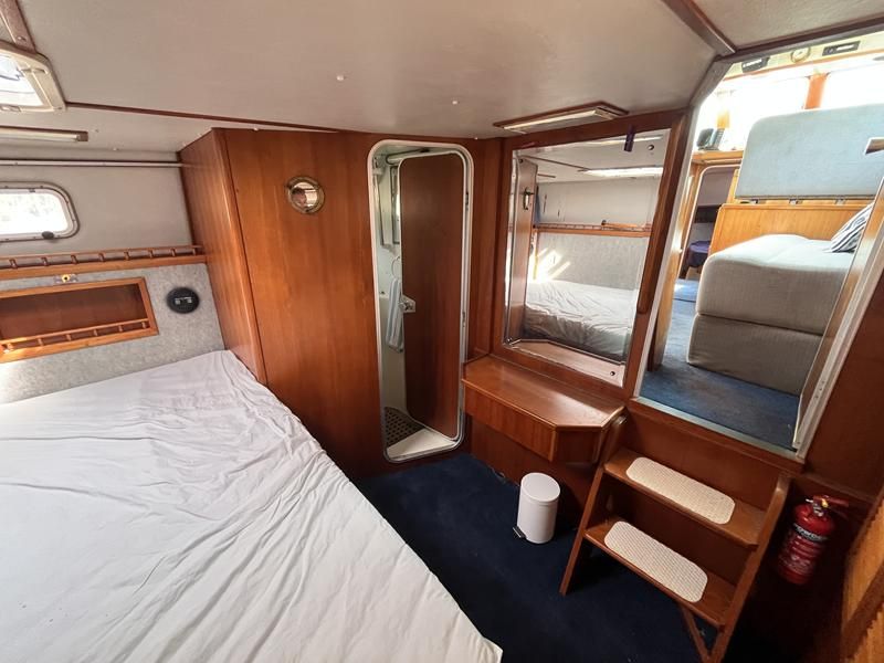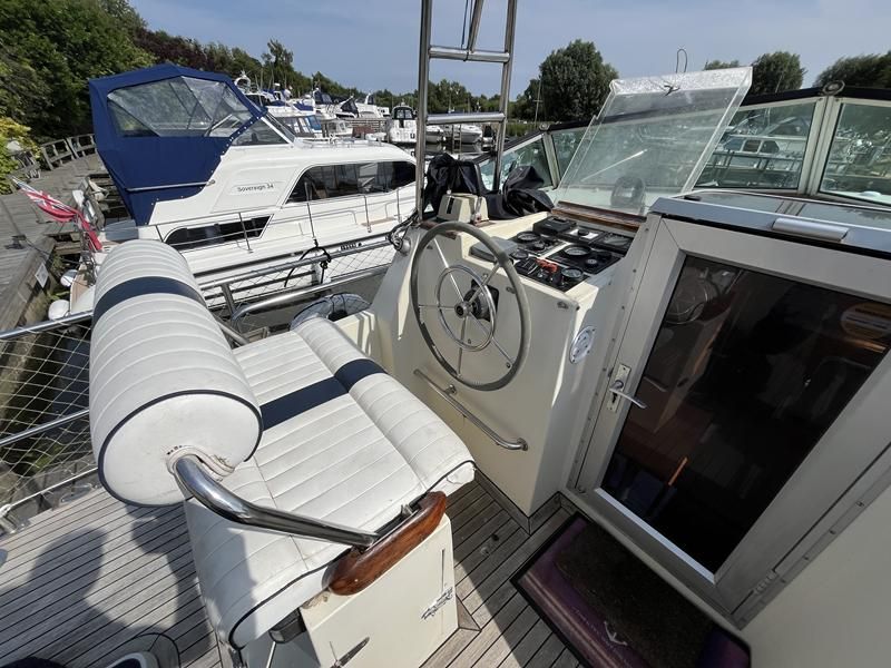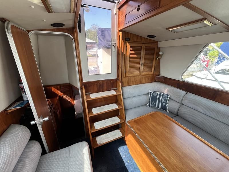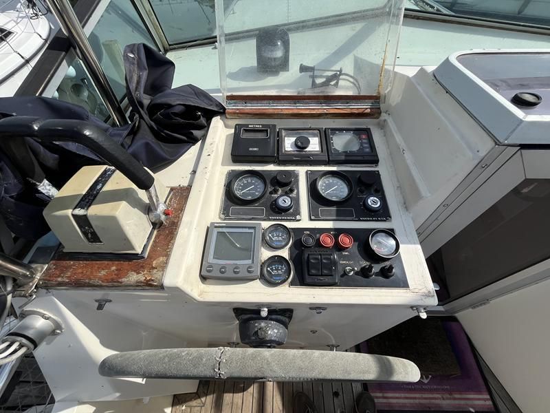 Aquastar Oceanranger 33 Aft Cabin – 1989 – 2x Volvo TAMD41B 200hp diesel engines. Up to 6 berth accommodation with two toilets and showers. Specification to include; Warm air heating, shore power, battery charger, immersion/calorifier, holding tank, trim tabs, windlass, folding arch and more. A solid and sturdy offshore cruiser, offering a generous layout with two spacious cabins and dual helms for comfortable, all weather cruising.
