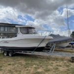 Arvor 210 – 2007 – Powered by a VW 100-5 TDI (100hp) diesel engine through shaft. Auxiliary 5 hp Mariner Four stroke outboard engine. SBS twin axel trailer. Two berth accommodation in wheelhouse with sliding door to large cockpit, helm and co-pilot seating. A Solidly built and capable sports fisher with great performance and ample space for day cruising & fishing with friends and family.