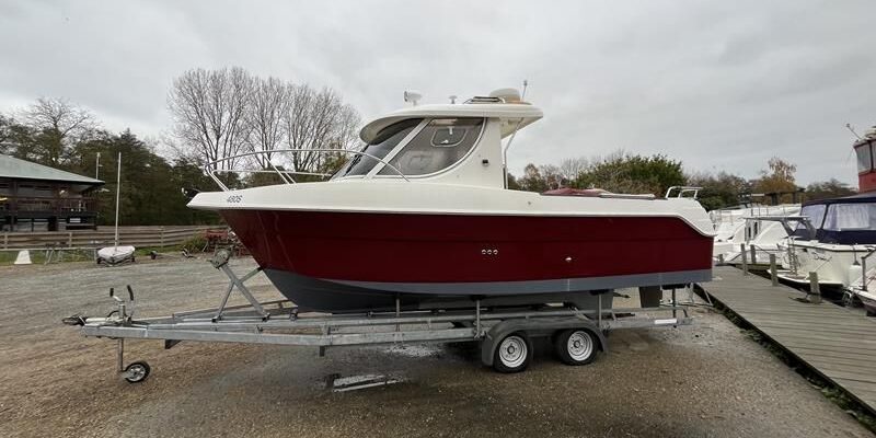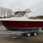 Arvor 230 – 2006 – Powered by a VW 150hp diesel engine through shaft. 2 berth accommodation in cabin with porta loo under berths. Galley area with sink and cold water supply. Spec including Raytheon Radar, Navman Fish 4600, Navman Tracker 5600, VHF, Spot lights, rod holders, 2 x windscreen wipers, large self draining cockpit, bathing platform. Polished and antifouled in 11/24 along with engine service. Only 52 engine hours! NYA Stock – Sold with 3 month engine & gearbox warranty.
