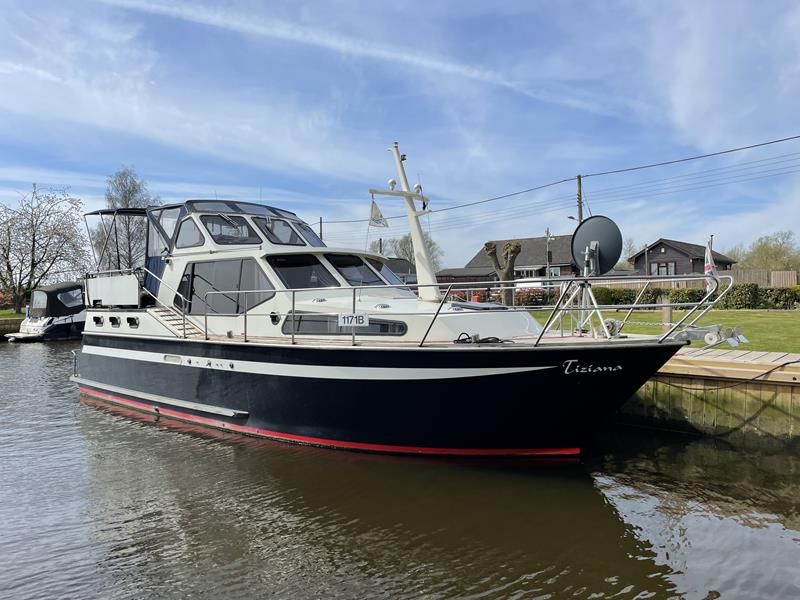 ATICO 38 – 1995 – Powered by a single Cummins 112hp diesel through a shaft – 4 berth accommodation with 2 toilets and shower – Specification to include; Bow and stern thrusters, 2kw generator, warm air heating, shore power supply with immersion, 240v sockets and charger, 1500va inverter, holding tank. Striking blue hull and teak laid cockpit and decks! Used in current ownership to cruise the French canals and later the Broads. A well specified Dutch steel cruising with a well-built, quality feel throughout!