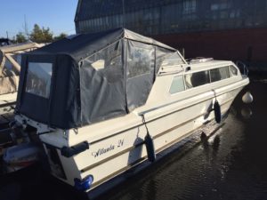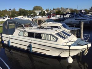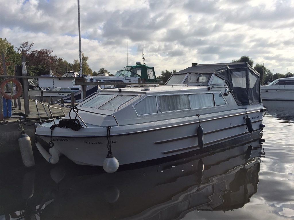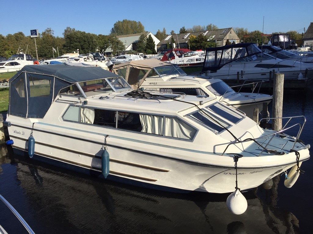 ATLANTA 24 – 1990 – Powered by a single Mariner 25hp outboard. 4 berth accommodation with one toilet and one shower. Specification to include; holding tank, galley facility with hot and cold water supply and shore power with 240v sockets and battery charger. Kept and used on the Southern Broads for 10 years by current owners! and ideal introduction into inland cruising.