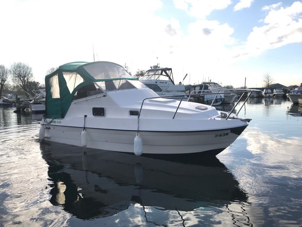 ATLANTIC 242 – Circa. 2008 – Powered by a single Volvo D3 – 4 berth accommodation with w/c – Specification to include holding tank, 2000w inverter, electric windlass, calorifier, 2 burner hob, microwave, refrigerator. Synthetic teak laid cockpit and bathing platform. Air draft under 7ft for increased inland access. Recent full machine compound polish and antifoul by our Service Centre. Presented in very good order throughout! A low maintenance cruiser with sought after diesel economy!