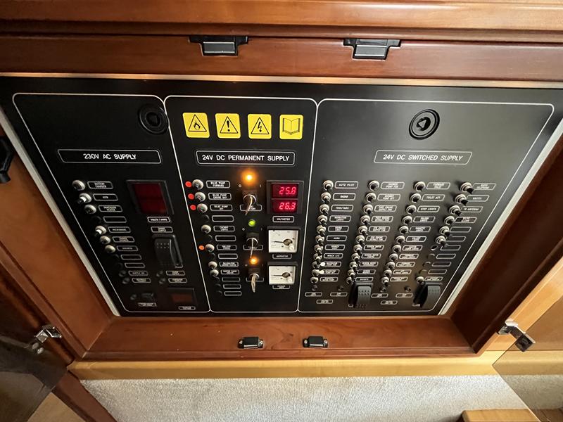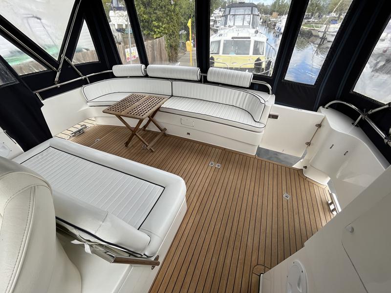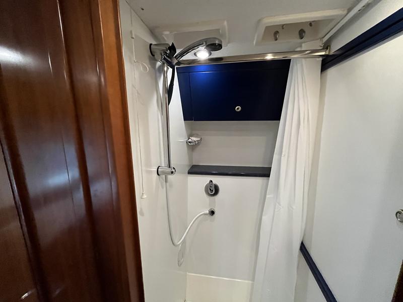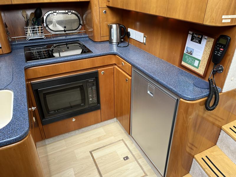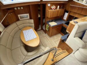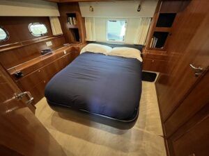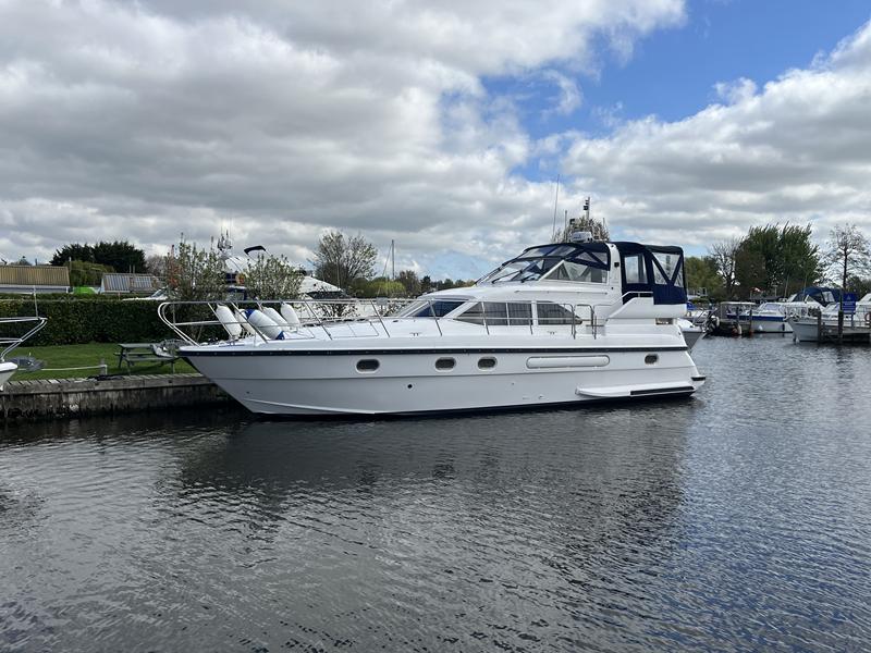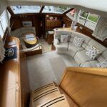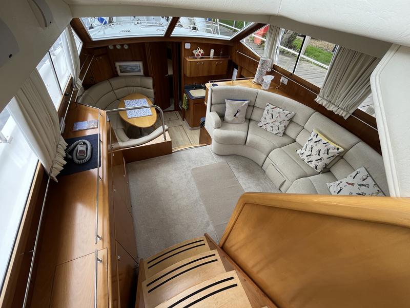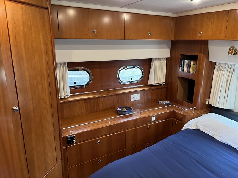 Atlantic 42 – 2001 – 2x Volvo TAMD63P 370 hp diesel engines on shafts. Comfortable 6 berth accommodation with 2 ensuite double cabins with electric WC and showers. Highly specified including; Fischer Panda generator (160 hours), bow & stern thrusters, shore power, battery charger, holding tanks, Garmin plotter/radar, electric windlass, autopilot, teak aft deck and bathing platform, 5kw warm air heating units and more. Engines serviced April 2025. Antifouled 2024. Exceptionally maintained through successive owners, a turnkey example set up for a season’s boating.