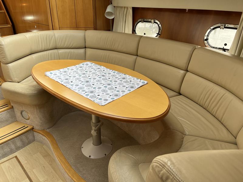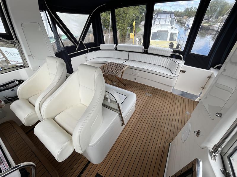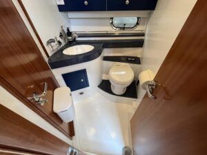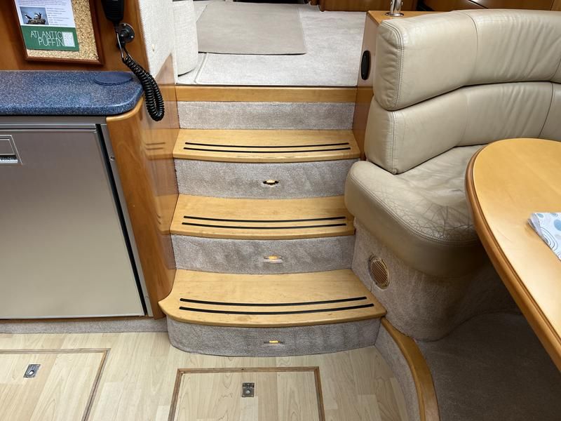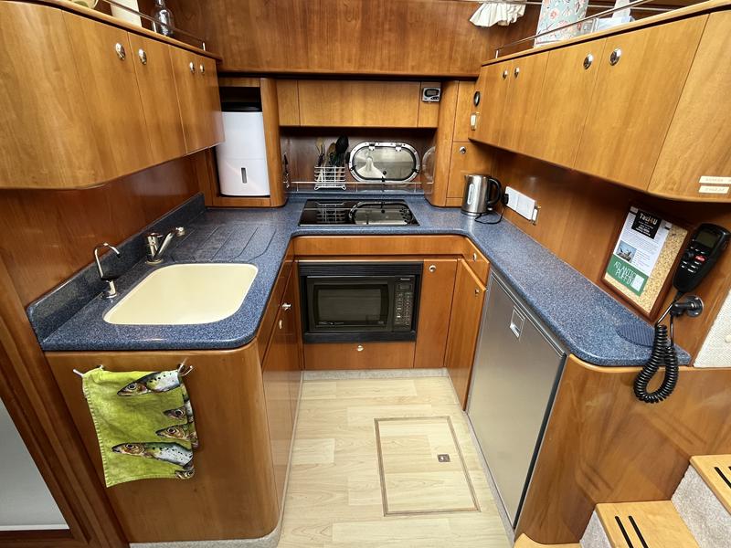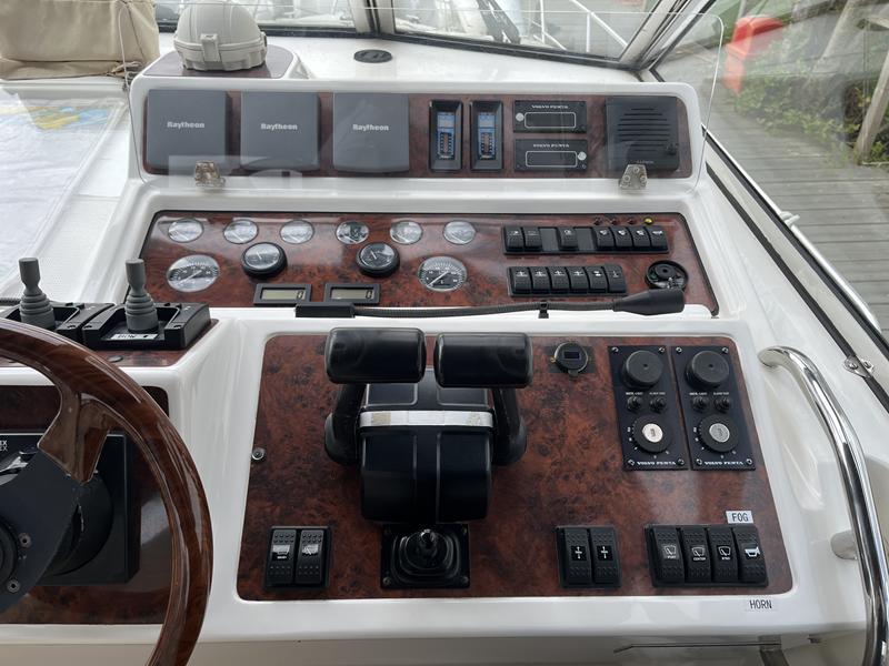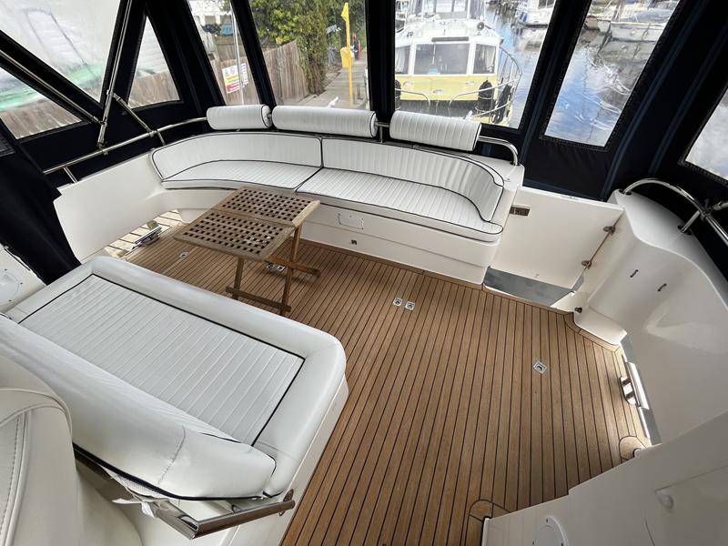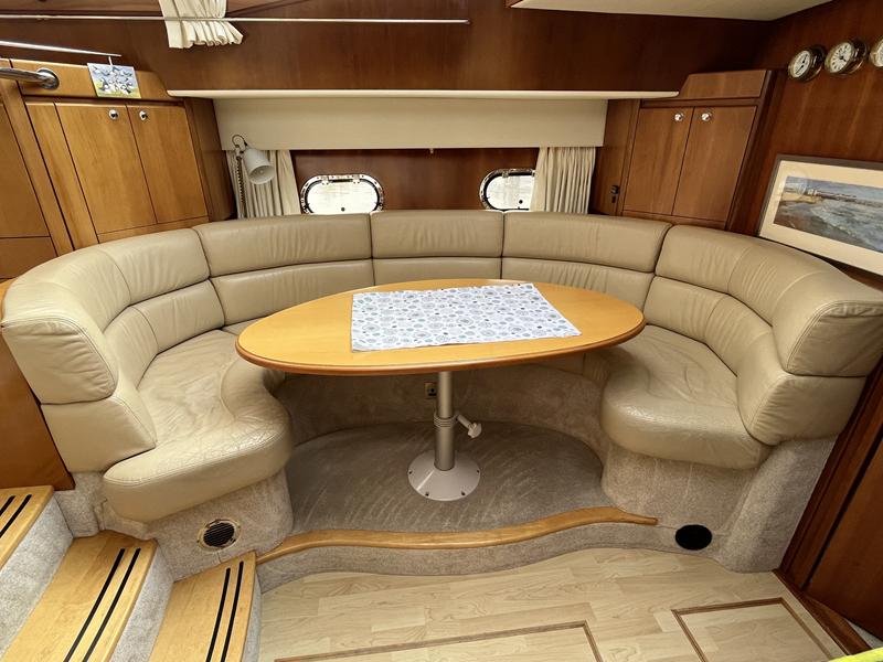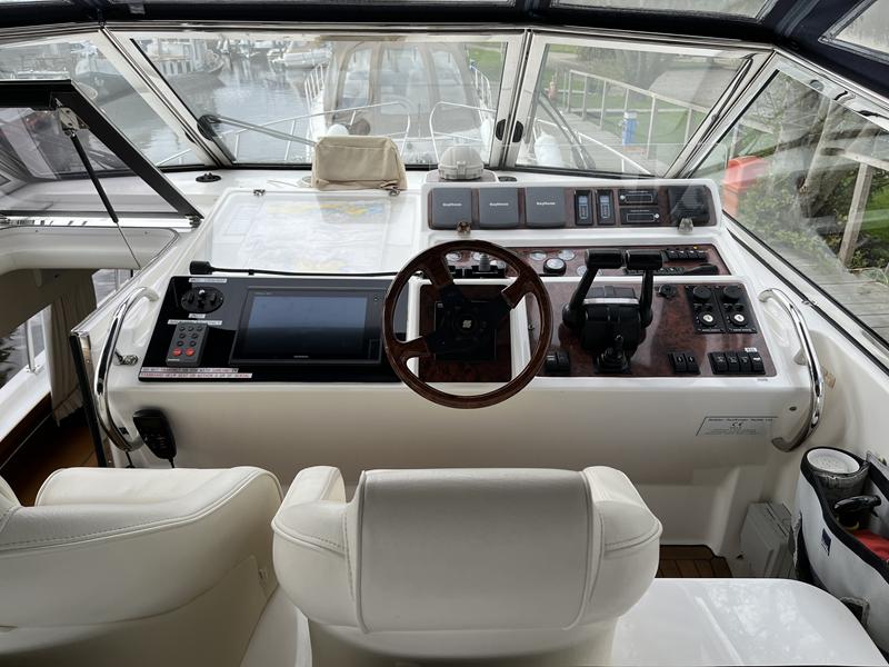 Atlantic 42 – 2001 – 2x Volvo TAMD63P 370 hp diesel engines on shafts. Comfortable 6 berth accommodation with 2 ensuite double cabins with electric WC and showers. Highly specified including; Fischer Panda generator (160 hours), bow & stern thrusters, shore power, battery charger, holding tanks, Garmin plotter/radar, electric windlass, autopilot, teak aft deck and bathing platform, 5kw warm air heating units and more. Engines serviced April 2025. Antifouled 2024. Exceptionally maintained through successive owners, a turnkey example set up for a season’s boating.